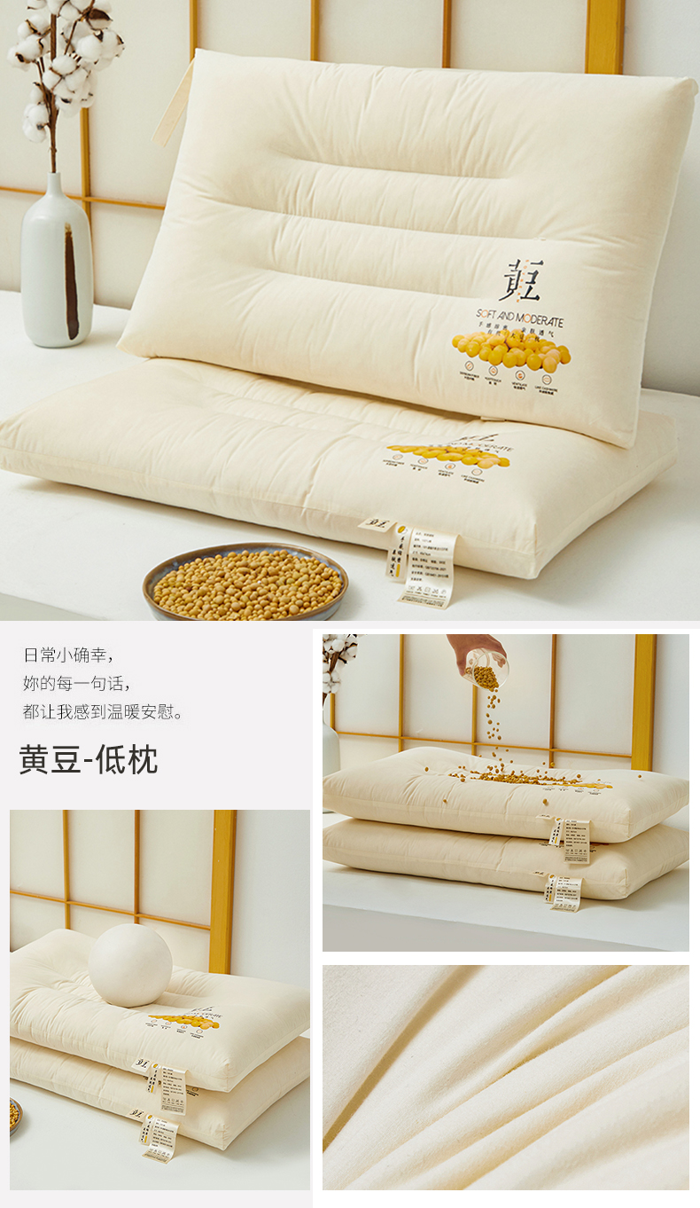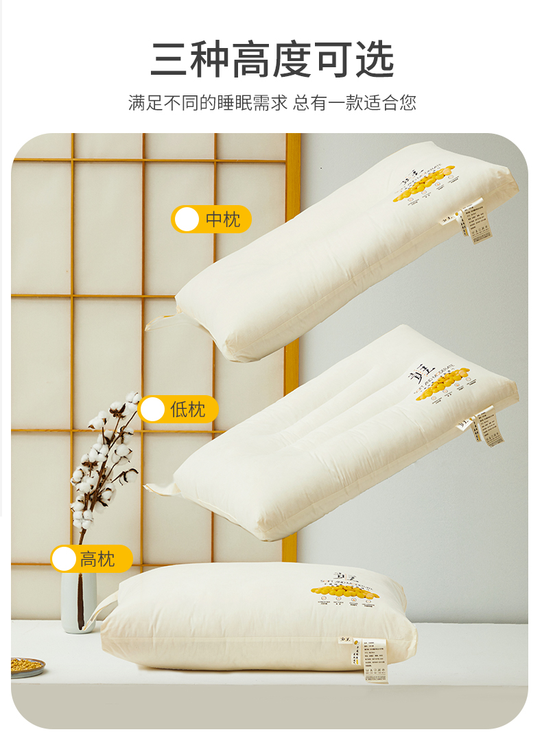 商品名称:(总)昕科 2025新款A类全棉大豆纤维黄豆枕芯-纯棉大豆枕头大豆纤维护颈枕头