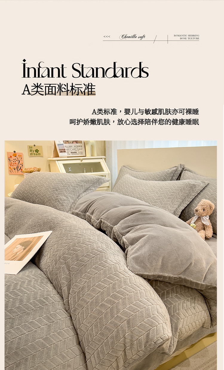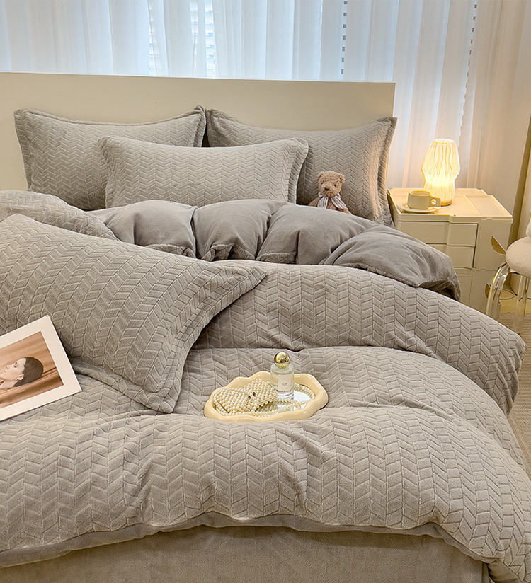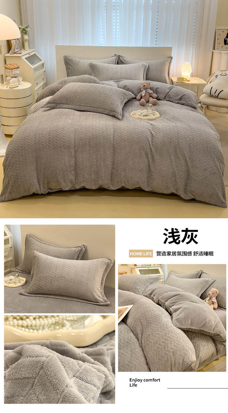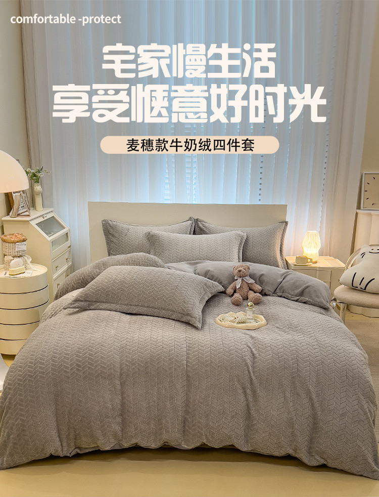 全季 2023新款麦穗纹高克重牛奶绒色织提花四件套 浅灰