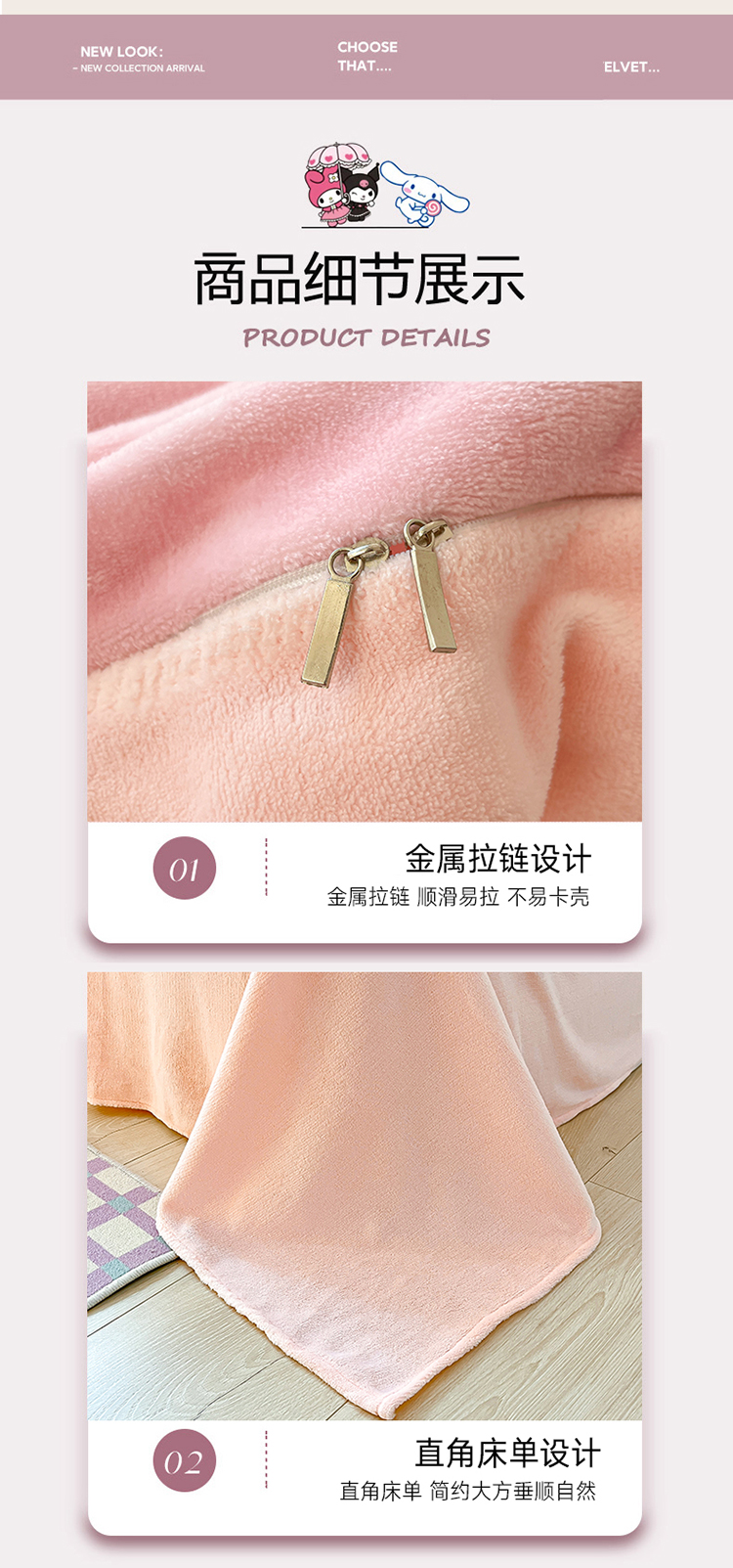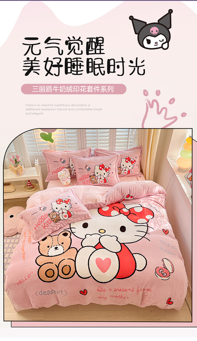 商品名称:星座 2025三丽鸥牛奶绒四件套 经典KT
