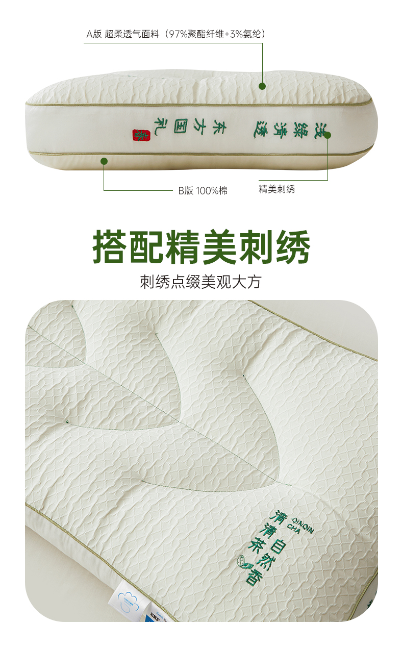 当前位置: 91家纺网 > 商品网购 > 枕头/枕芯/保健枕/颈椎枕 > 普通枕芯 > (总)昕科 2025新款植萃清香茶叶枕-全棉绣花枕头茶叶包直播爆款枕芯