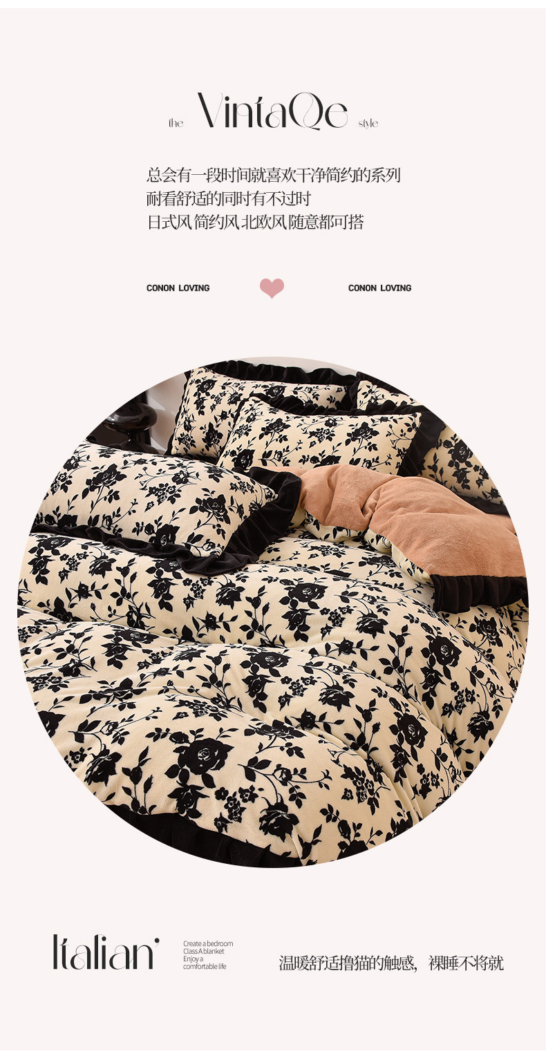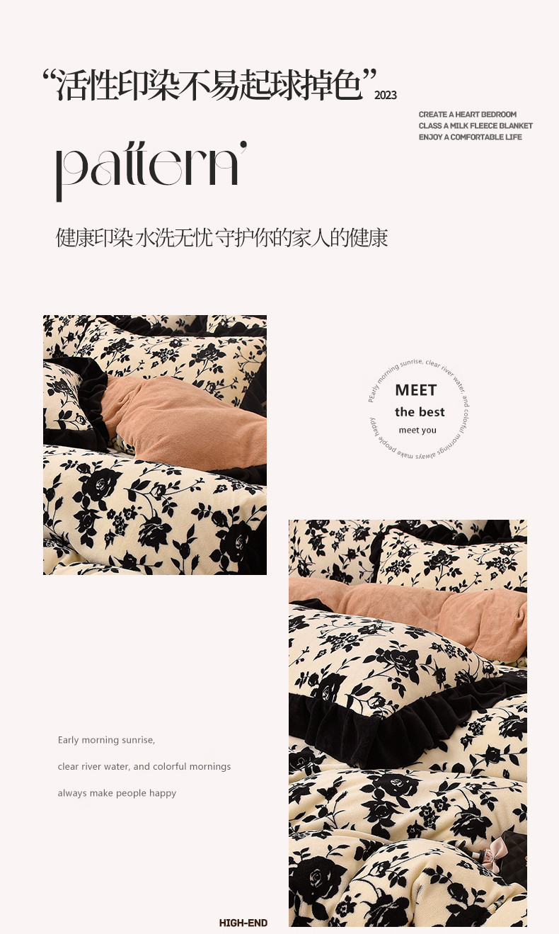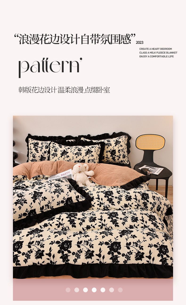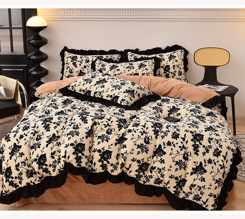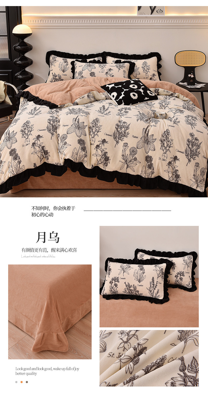 (总)迪梦姿 2025新款牛奶绒印花黑花边款四件套