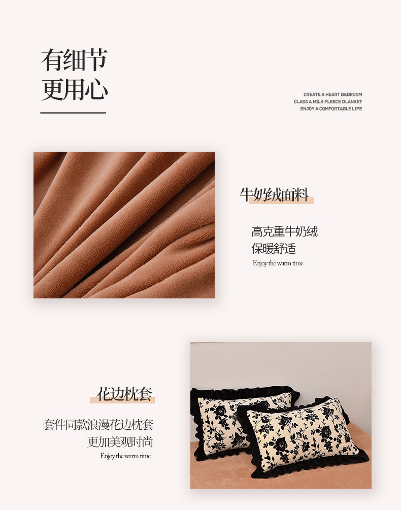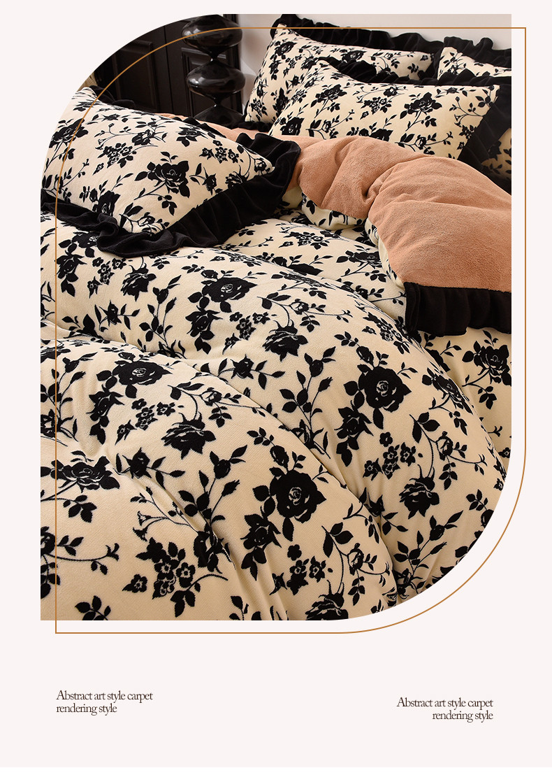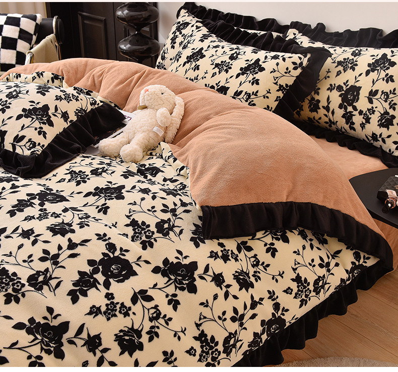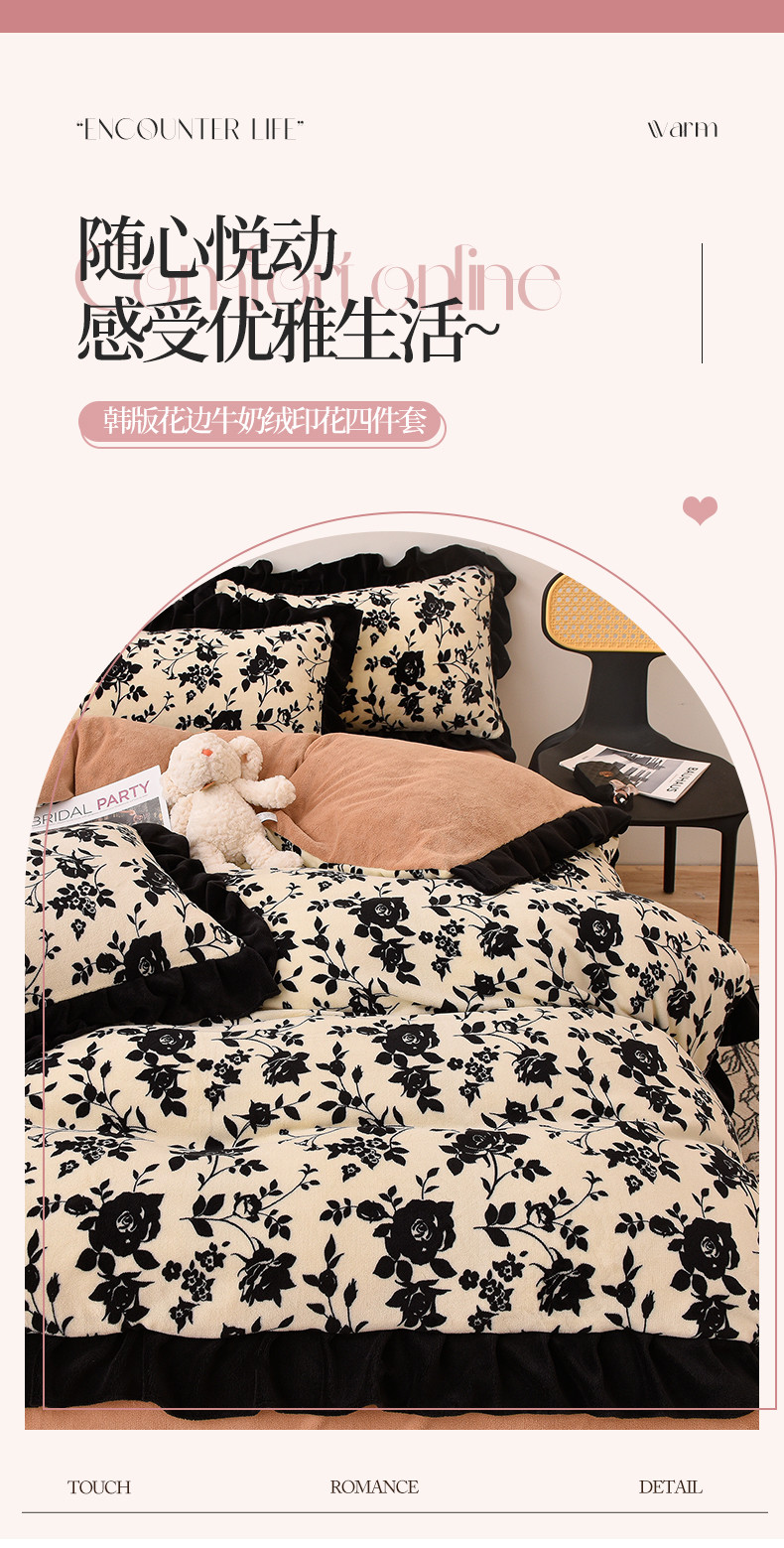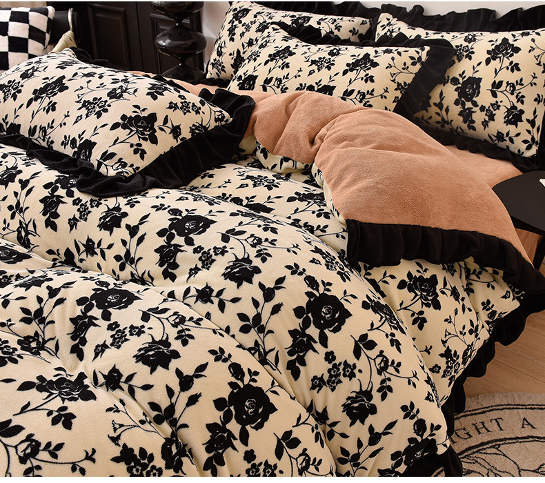 (总)迪梦姿 2025新款牛奶绒印花黑花边款四件套