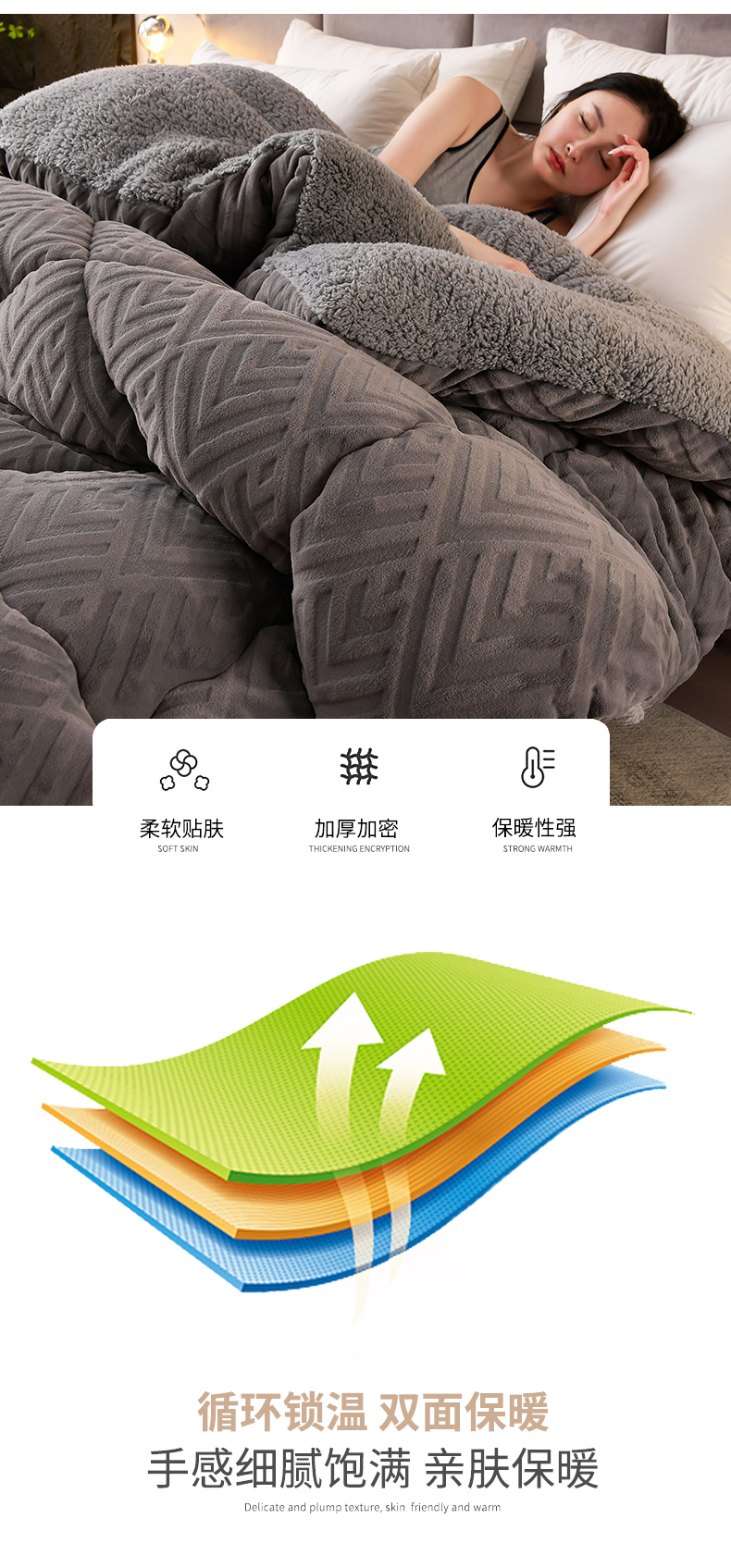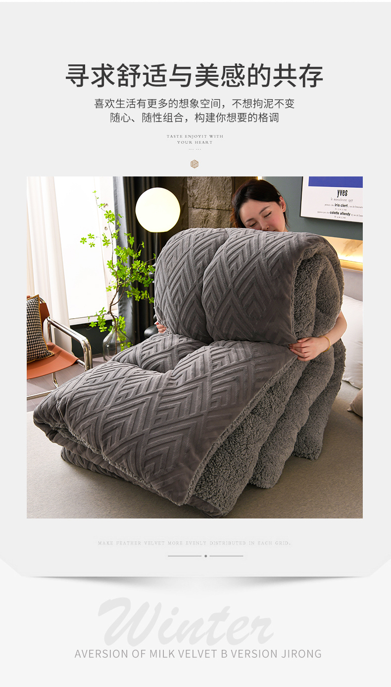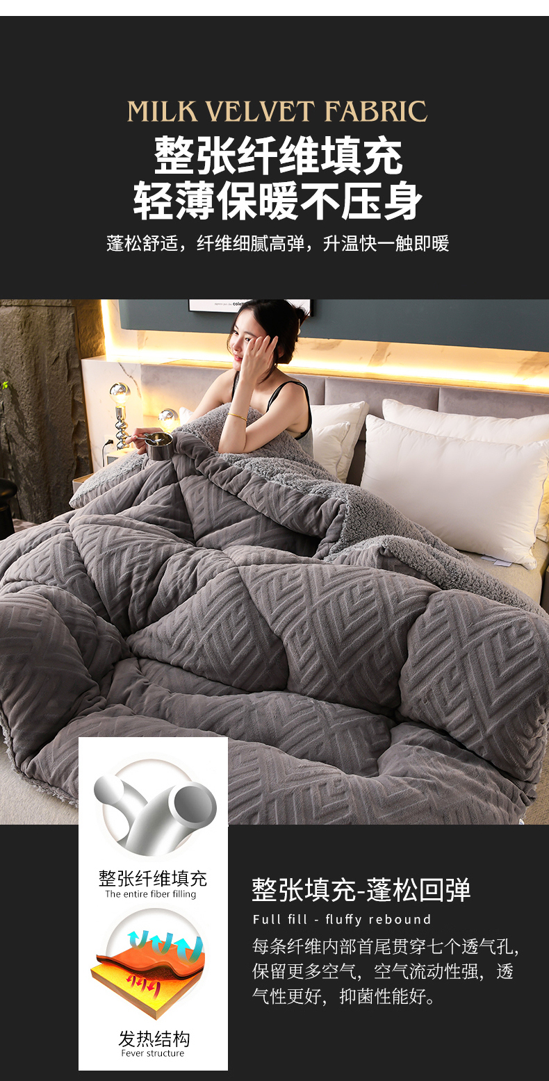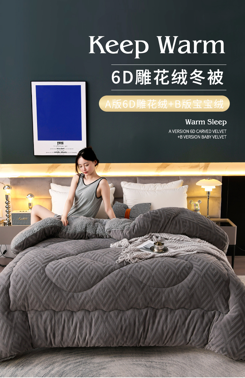 • 91家纺网 家纺一手货源 找家纺 金灵居 2025新款6D雕花绒冬被纯色牛奶绒宝宝绒被子被芯春秋被 绅士灰