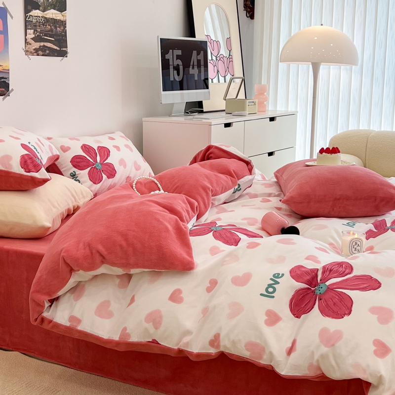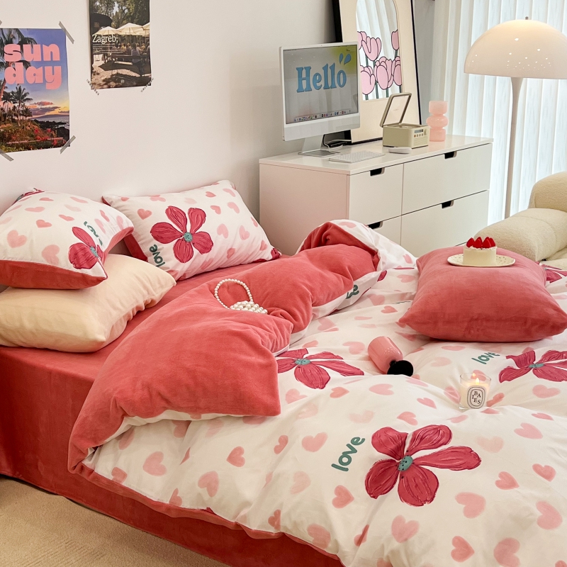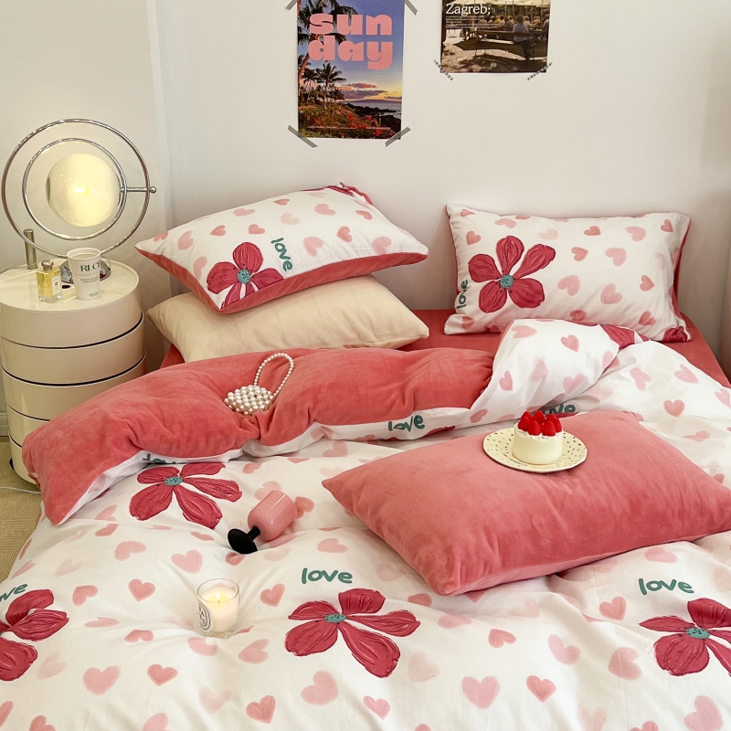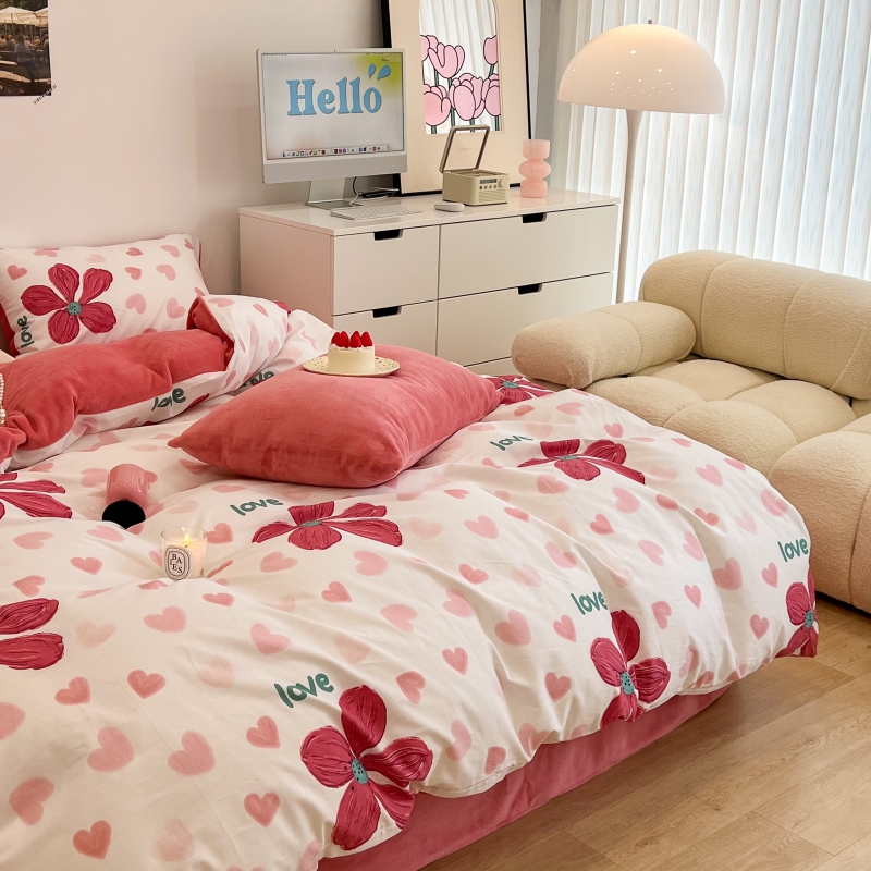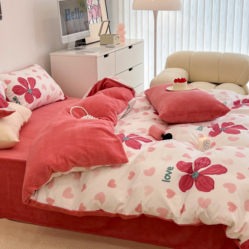 昔可家纺 2023新款y2k卡通印花系列棉加绒四件套 花枝俏漫