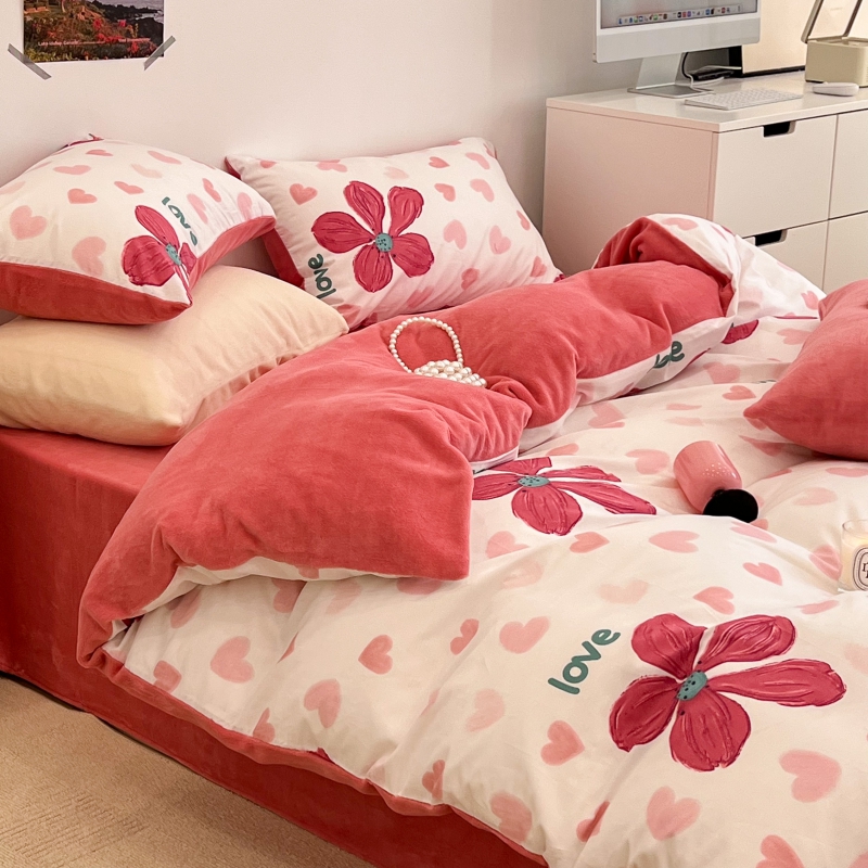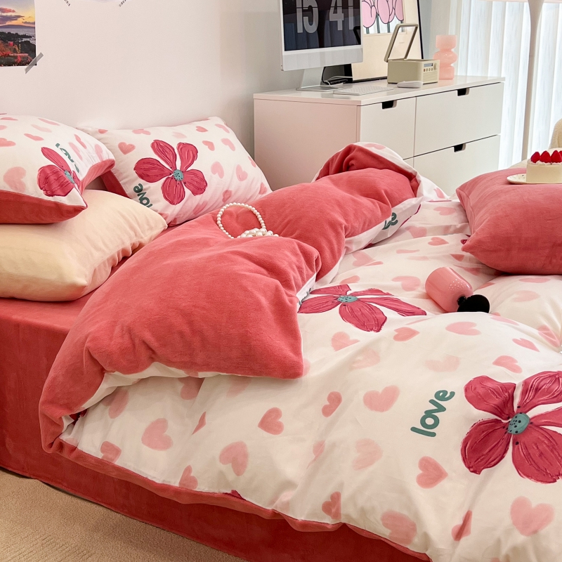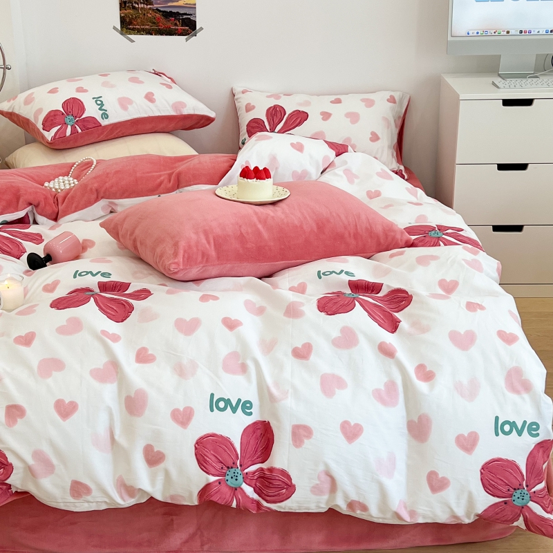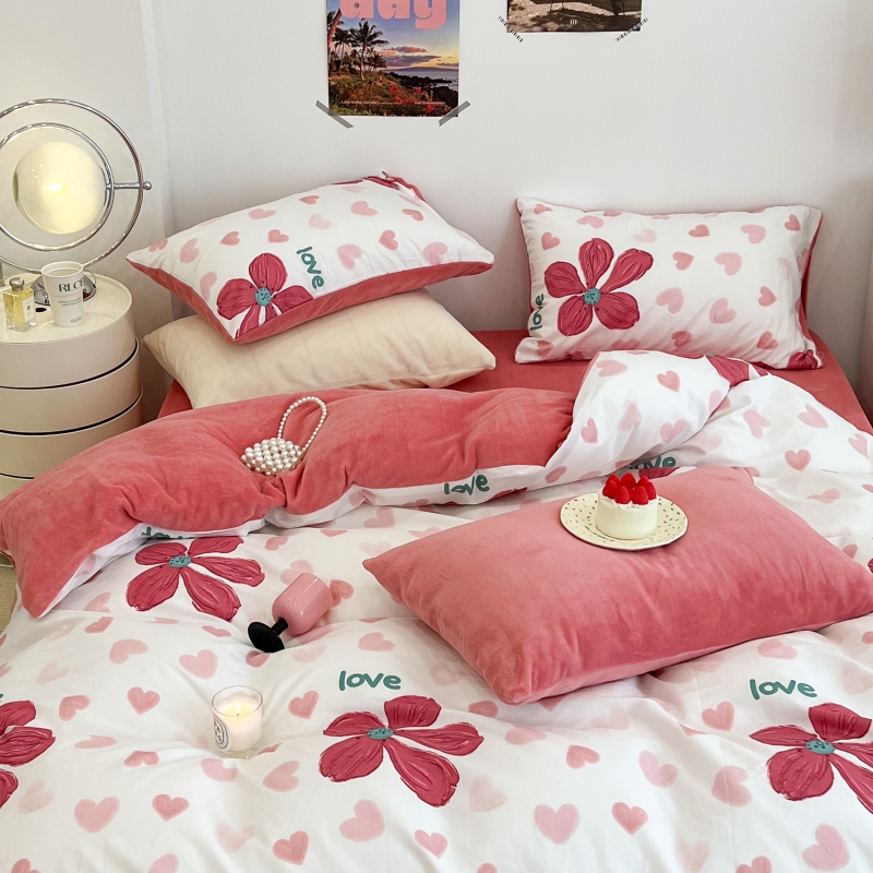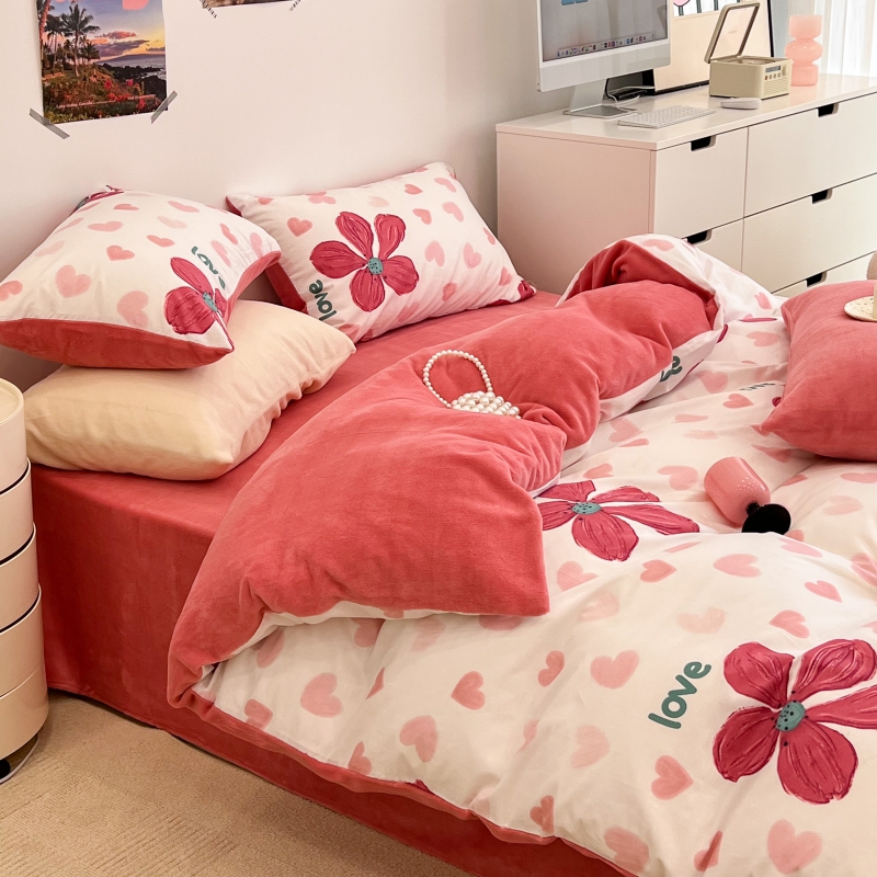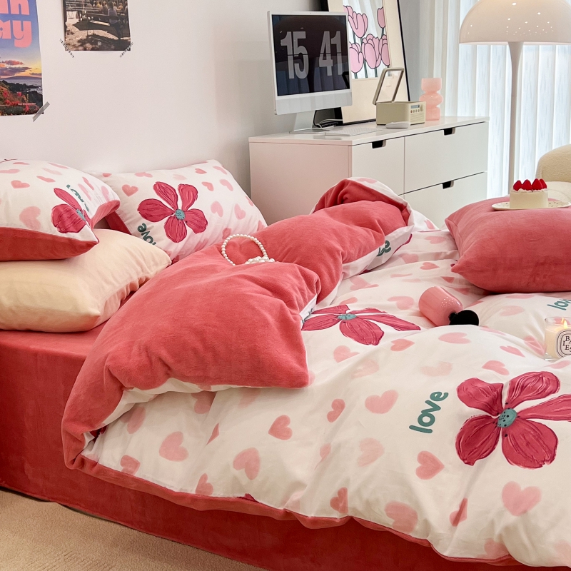 昔可家纺 2023新款y2k卡通印花系列棉加绒四件套 花枝俏漫