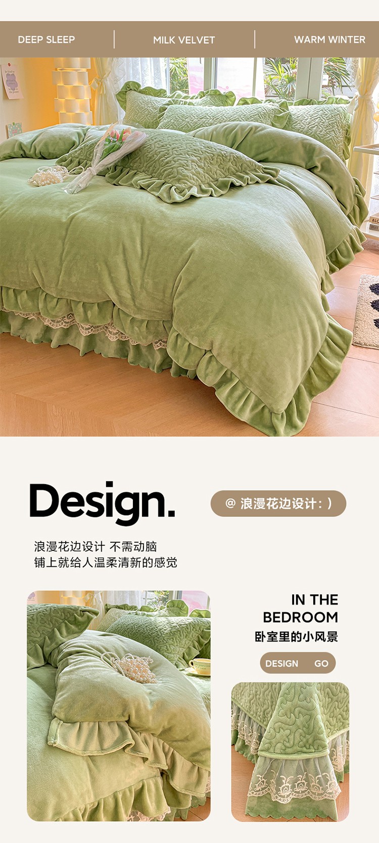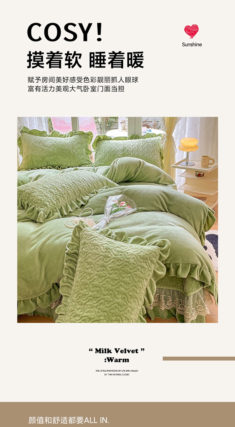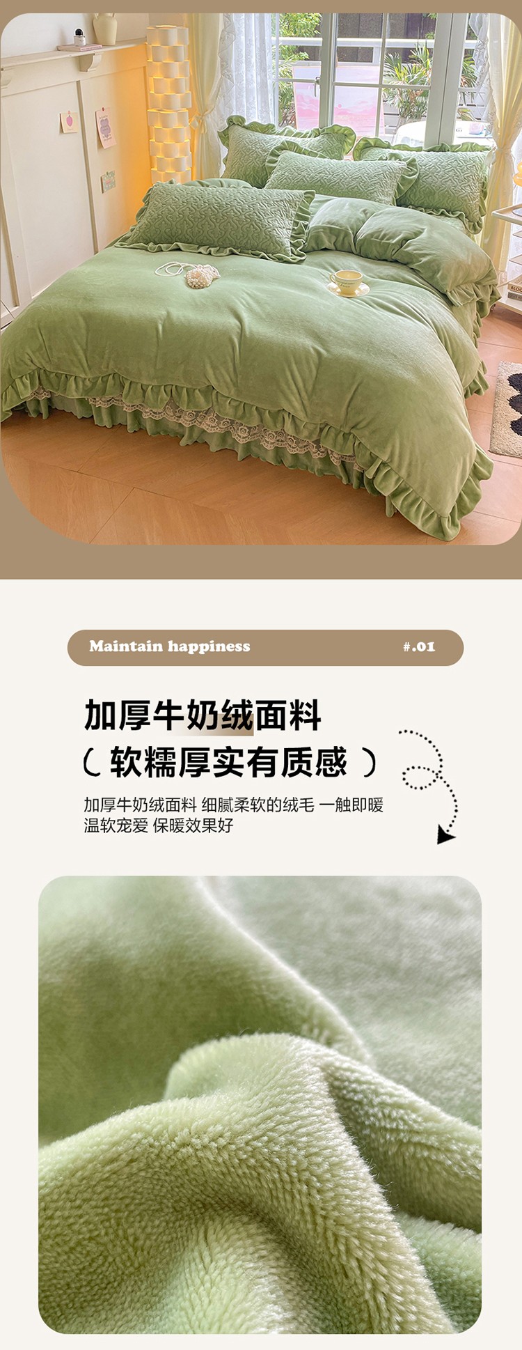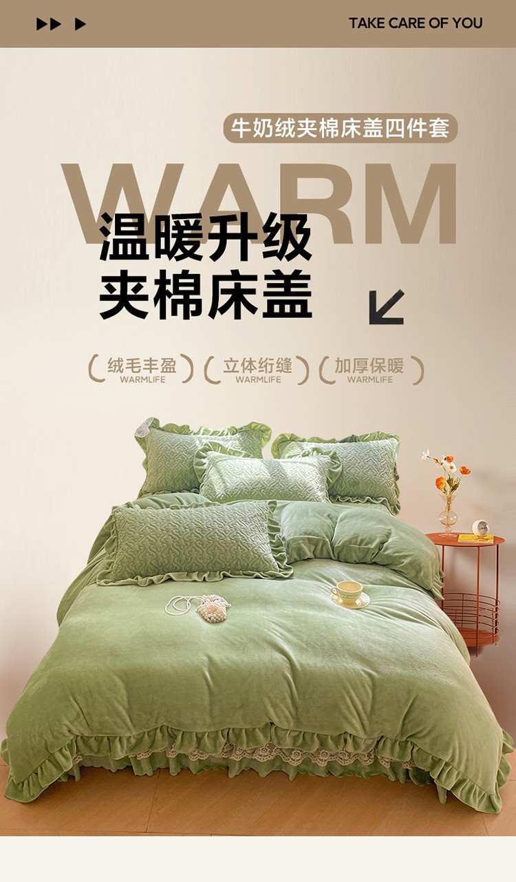 当前位置: 91家纺网 > 商品网购 > 床品套件 > 四件套 > 牛奶绒四件套 > 2024新款牛奶绒夹棉床盖四件套 草绿