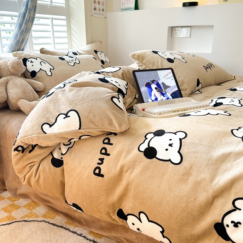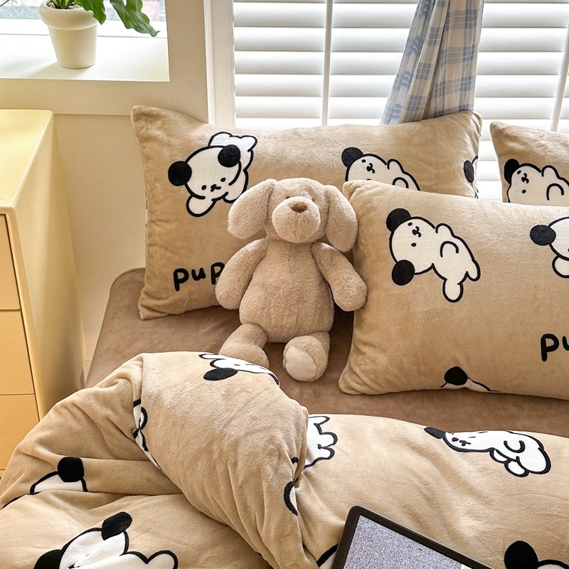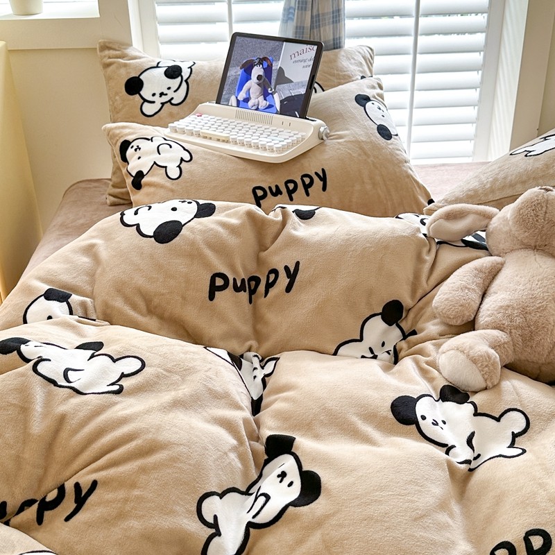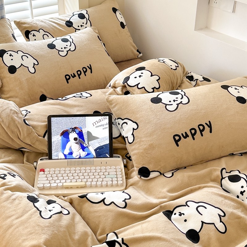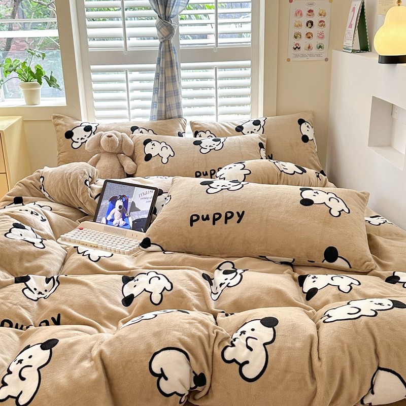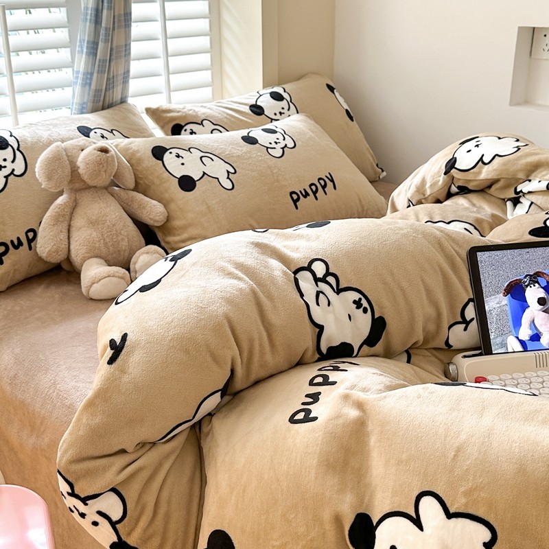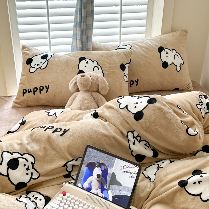 2023秋冬新款220克高克重牛奶绒印花四件套 萌萌狗