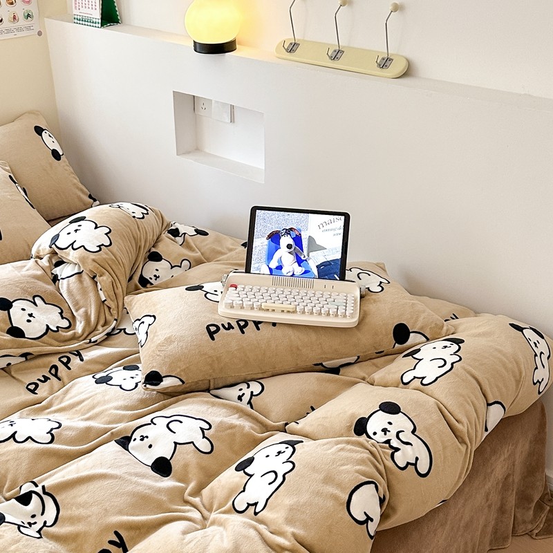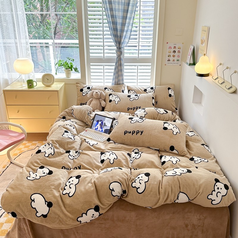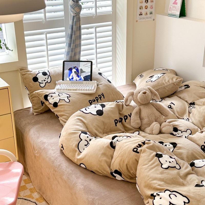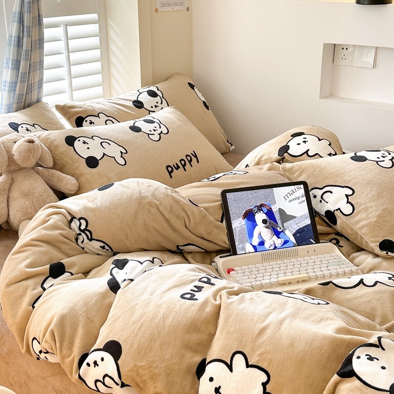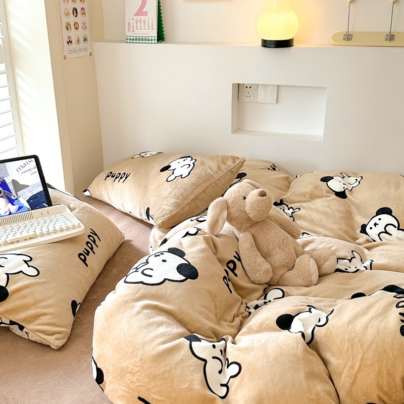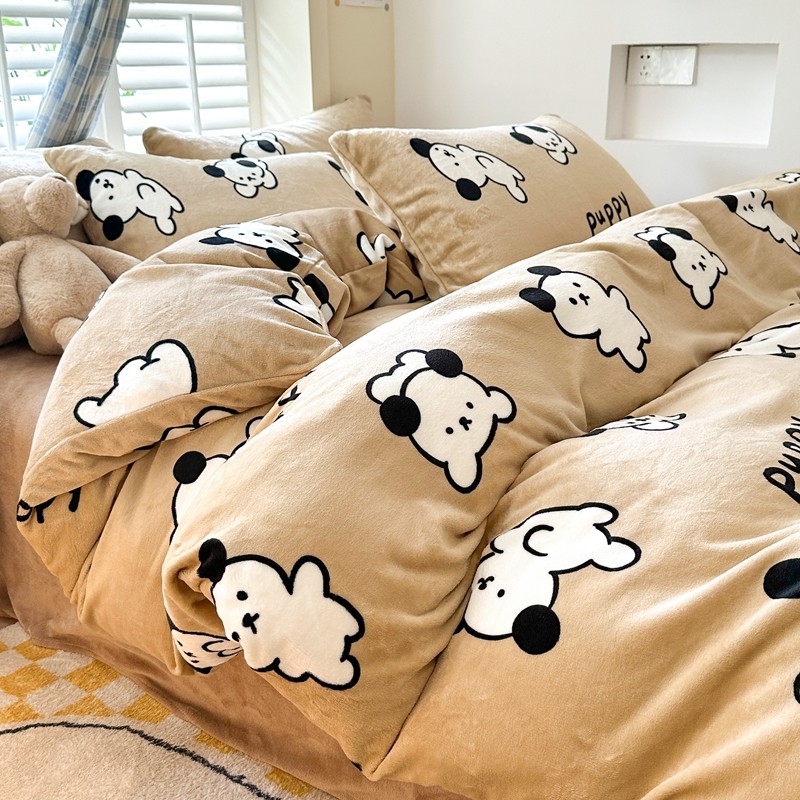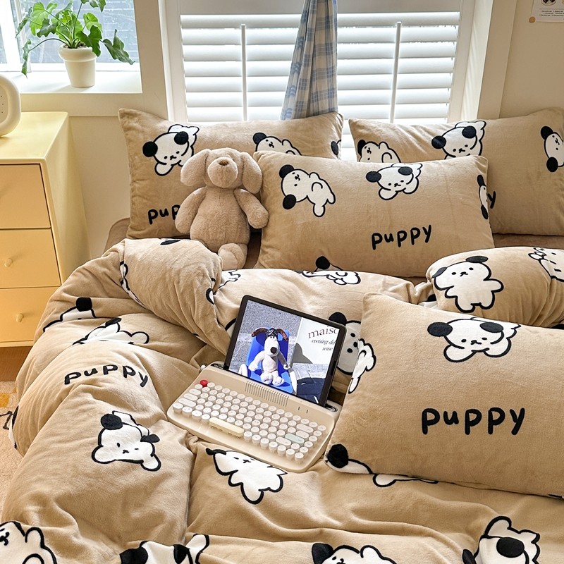 2023秋冬新款220克高克重牛奶绒印花四件套 萌萌狗