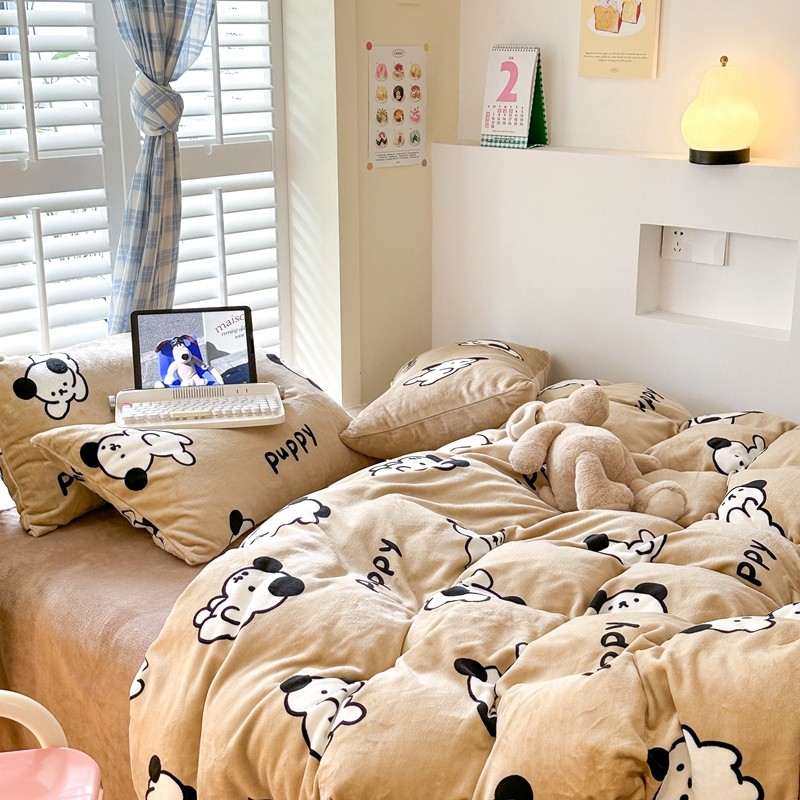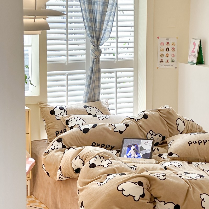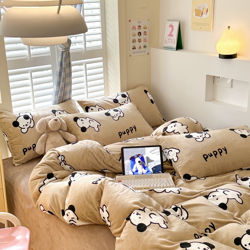 商品名称:2023秋冬新款220克高克重牛奶绒印花四件套 萌萌狗