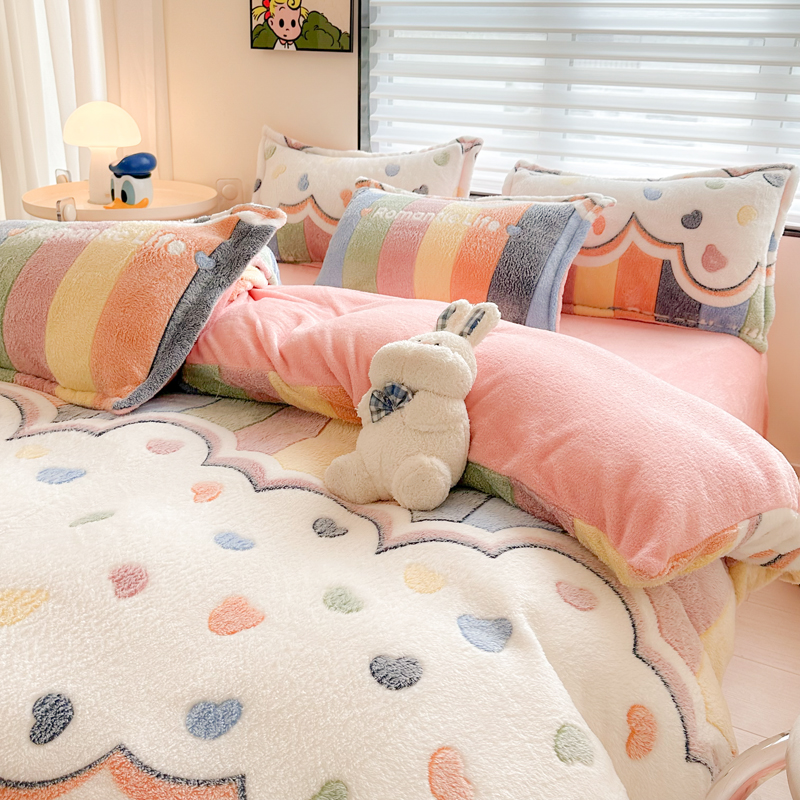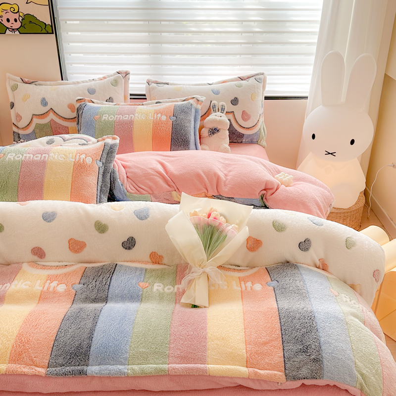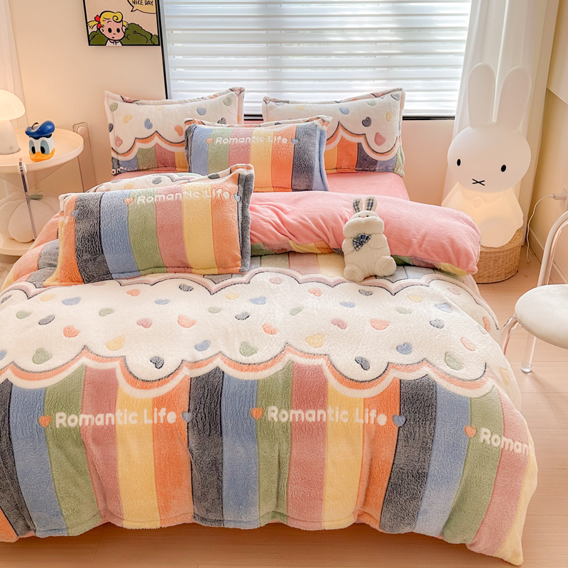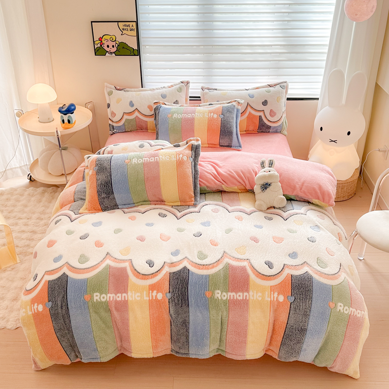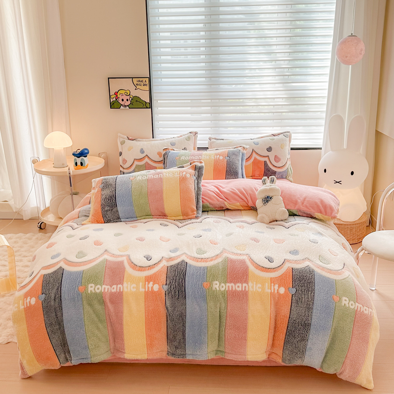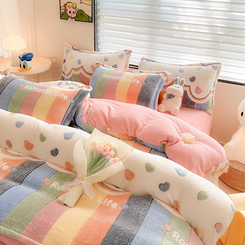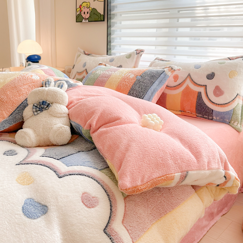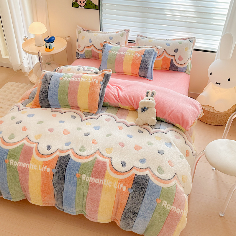 美莱 2023爆款雪花绒四件套法莱绒牛奶绒被套量大价格优惠 彩虹