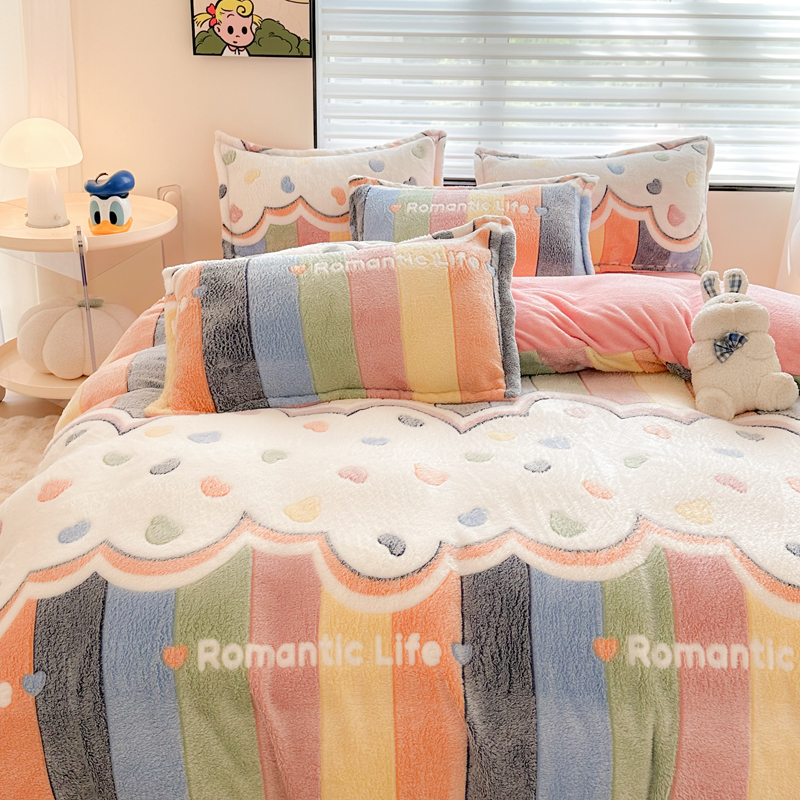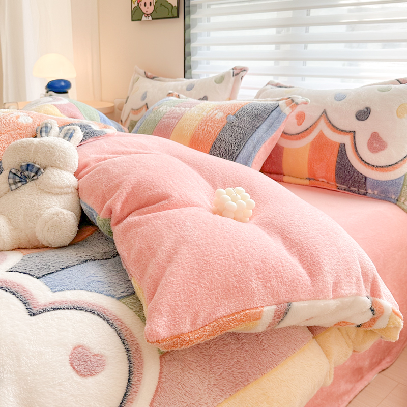 商品名称:美莱 2023爆款雪花绒四件套法莱绒牛奶绒被套量大价格优惠 彩虹