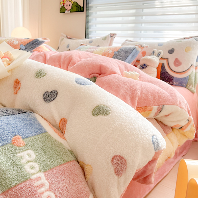 (总)美莱 2023爆款雪花绒四件套法莱绒牛奶绒被套量大价格优惠,爱心兔,啵啵熊,布朗熊,彩虹,草莓熊,快乐女孩,蓝兔兔,皮皮狗,太空熊,维尼熊