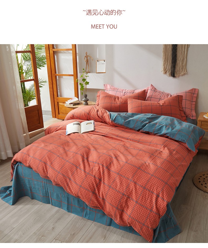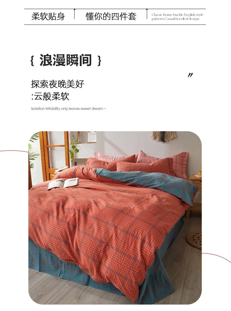 当前位置: 91家纺网 > 商品网购 > 床品套件 > 四件套 > 全棉普通四件套 > 价格下调 三沁纯棉全棉色织水洗棉简约格子式四件套床单圆角荷叶边偶遇兰橘