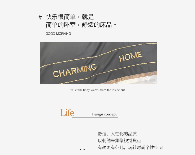 商品名称:千希家纺 2023新款亲肤磨毛提花刺绣四件套 曼卡·高级灰