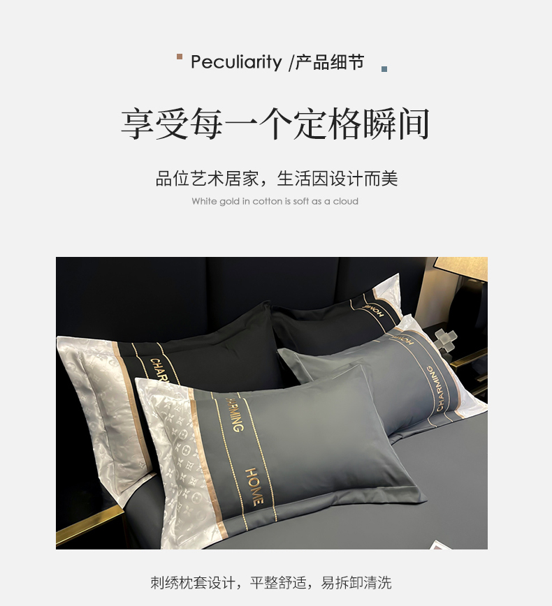 (总)千希家纺 2025新款轻奢简约亲肤棉绣花刺绣四件套-赛尔系列,赛尔-星耀黑,赛尔-蜜桃粉,赛尔-莫尼灰,赛尔-雾霾蓝