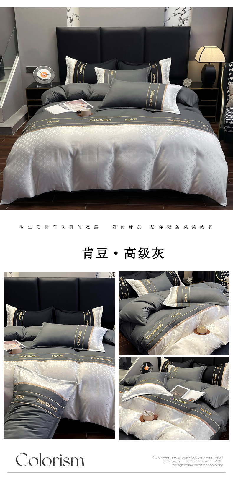 千希家纺 2023新款亲肤磨毛提花刺绣四件套 曼卡·高级灰