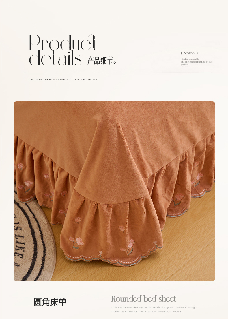 (总)恒爱 2022秋冬水晶绒翩翩花舞夹棉单床裙,大红色,豆沙红,橄榄绿,公主粉,桔色,咖啡色,孔雀绿,拉菲红,罗兰紫,玫红色,美人玉,米白色,米驼色,抹茶绿,浅灰色,紫色