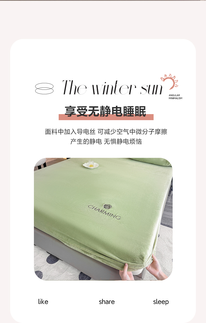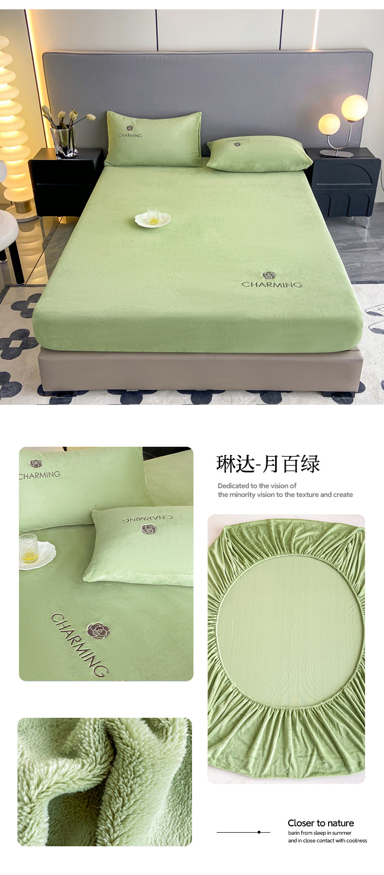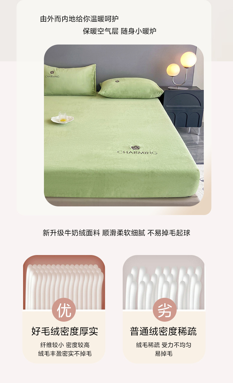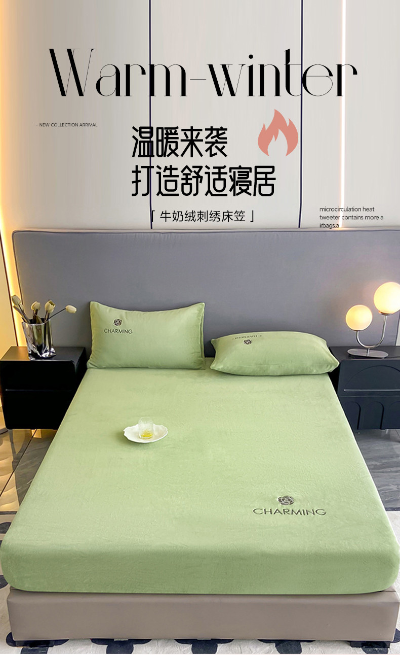 • 91家纺网 家纺一手货源 找家纺 古吉梦 2023新款牛奶绒刺绣床笠-琳达 琳达-月百绿