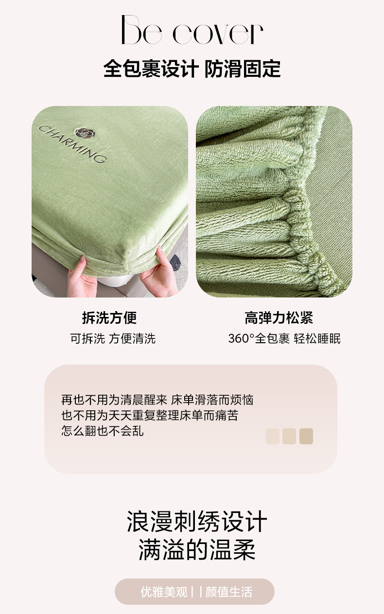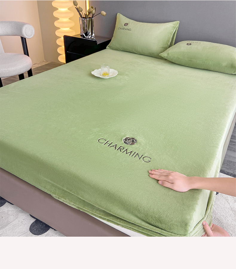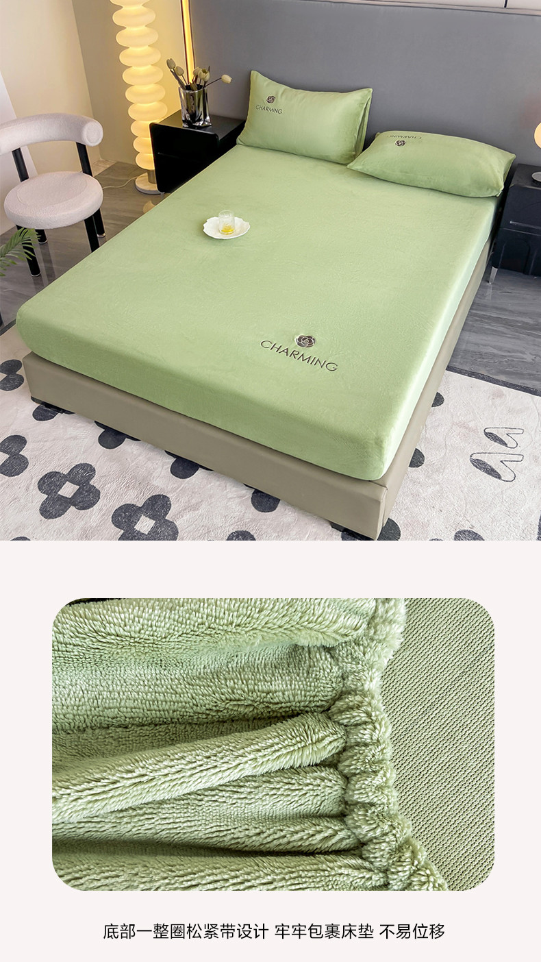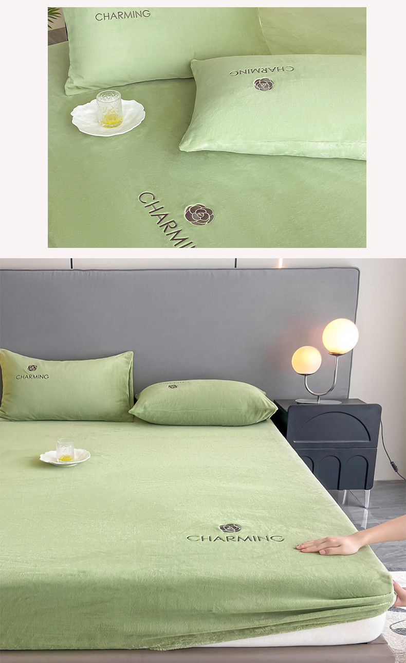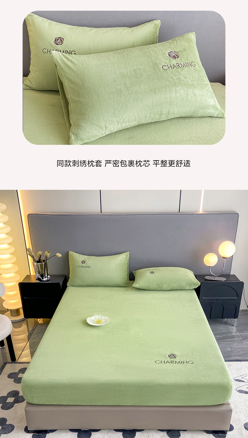 古吉梦 2023新款牛奶绒刺绣床笠-琳达 琳达-月百绿