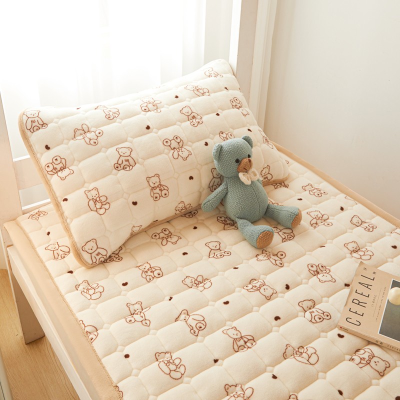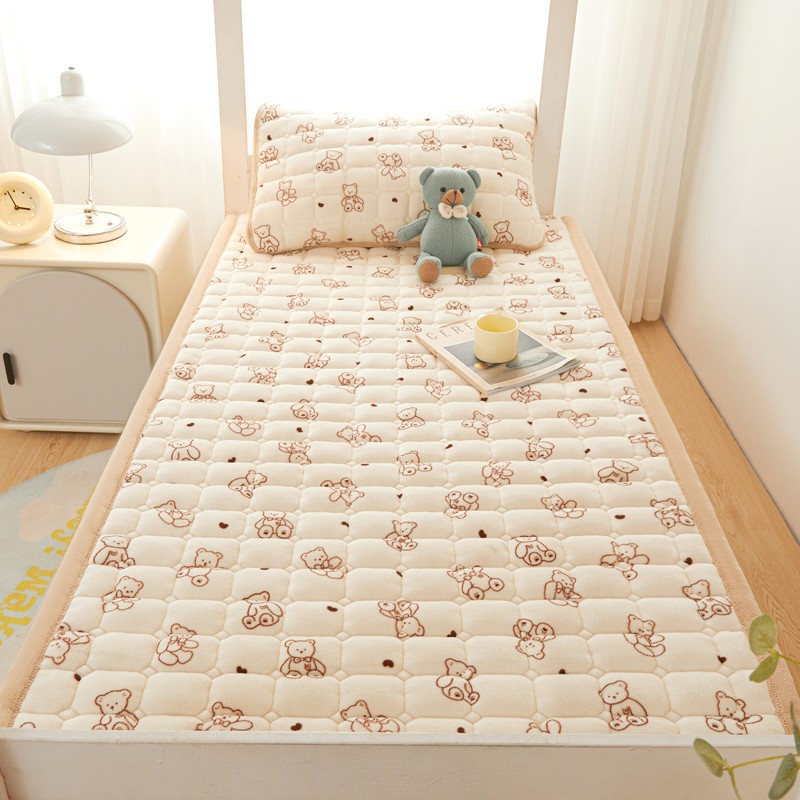 商品名称:梵朴 2023新款牛奶绒夹棉学生床褥床垫-印花系列 爱心熊