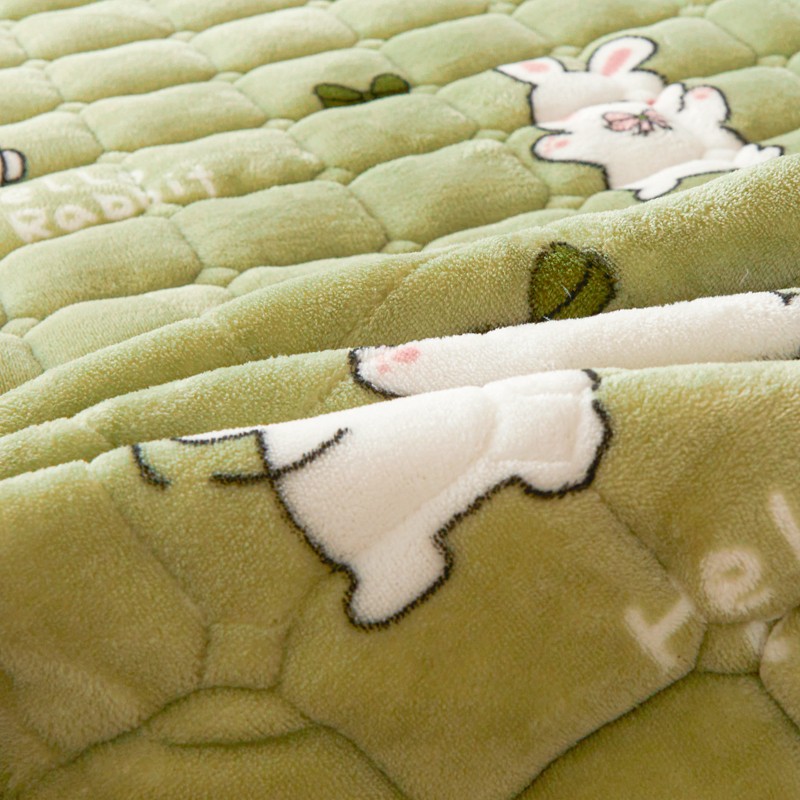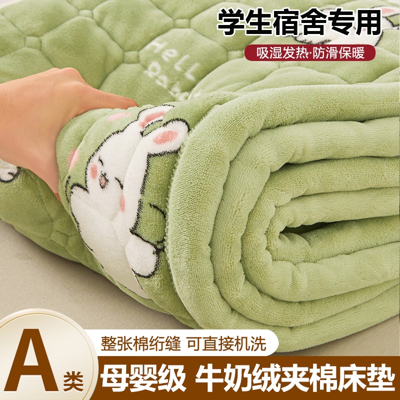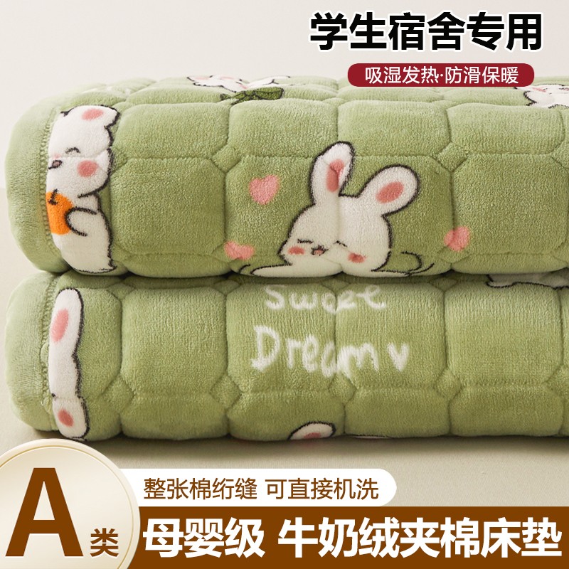 商品名称:梵朴 2023新款牛奶绒夹棉学生床褥床垫-印花系列 幸福兔