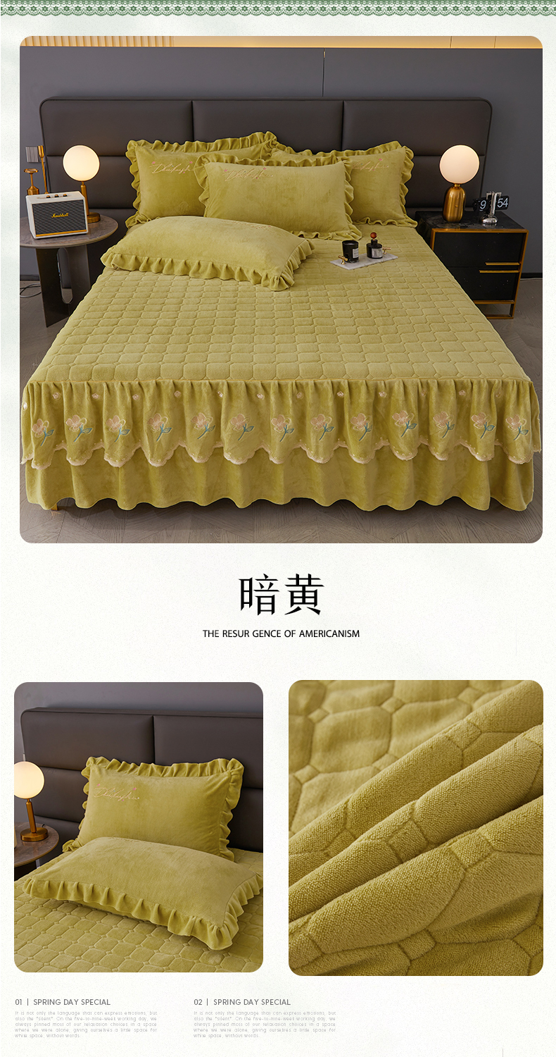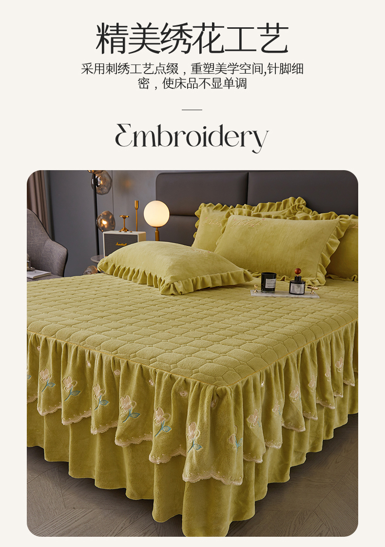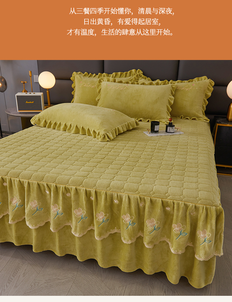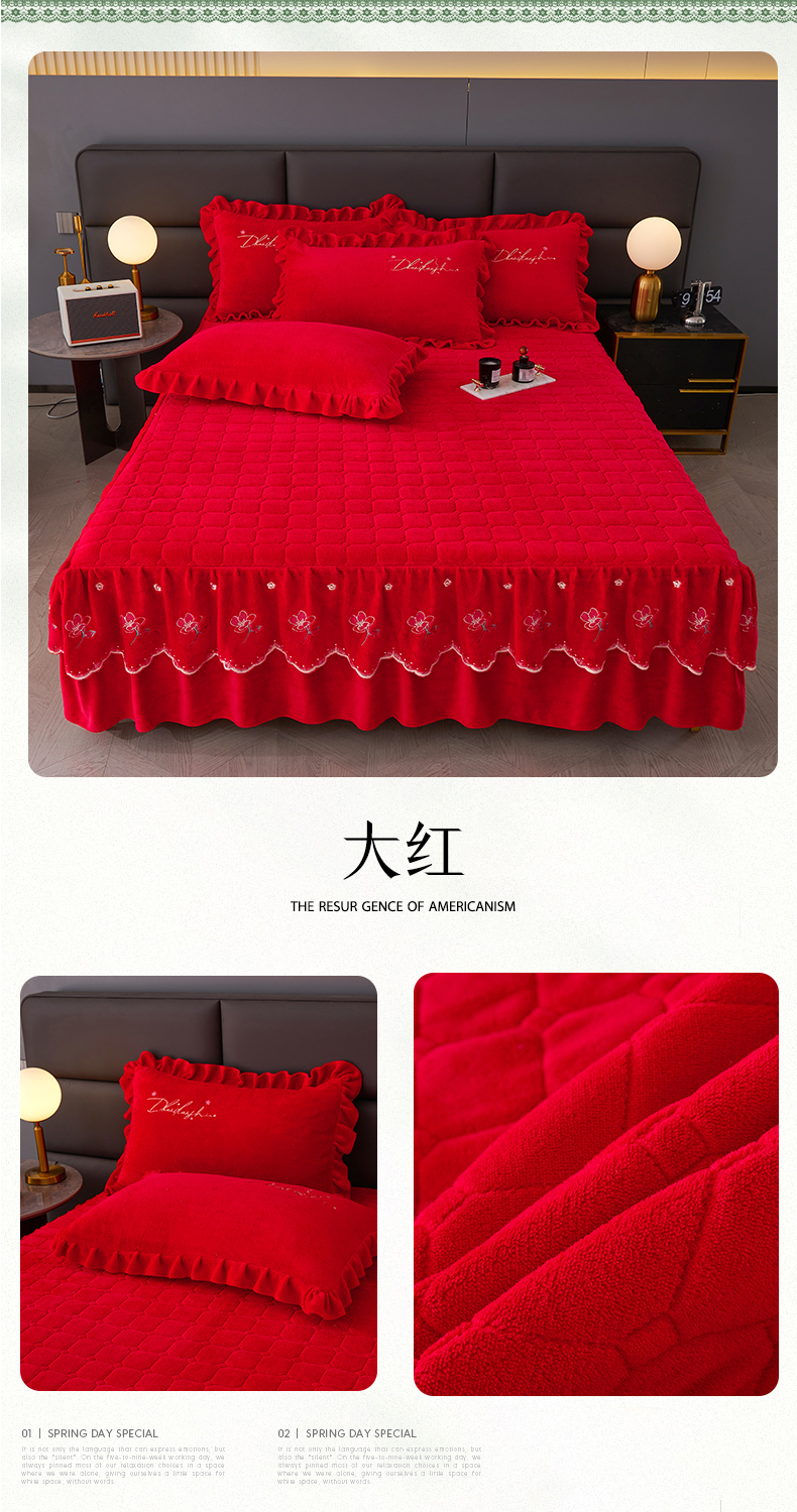 (总)恒爱 2022秋冬水晶绒翩翩花舞夹棉床裙四件套,大红色,豆沙红,橄榄绿,公主粉,桔色,咖啡色,孔雀绿,拉菲红,罗兰紫,玫红色,美人玉,米白色,米驼色,抹茶绿,浅灰色,紫色