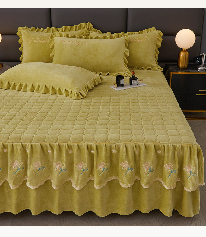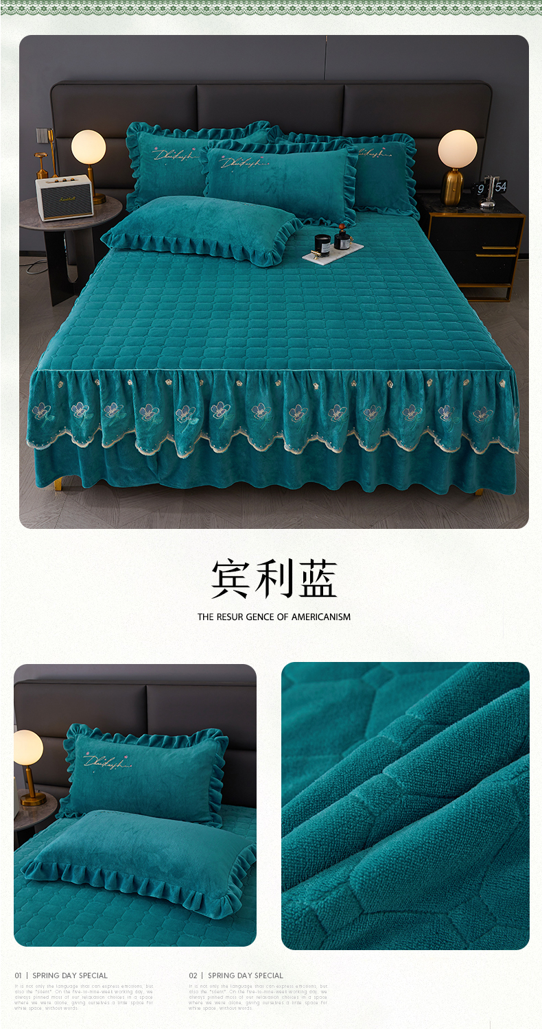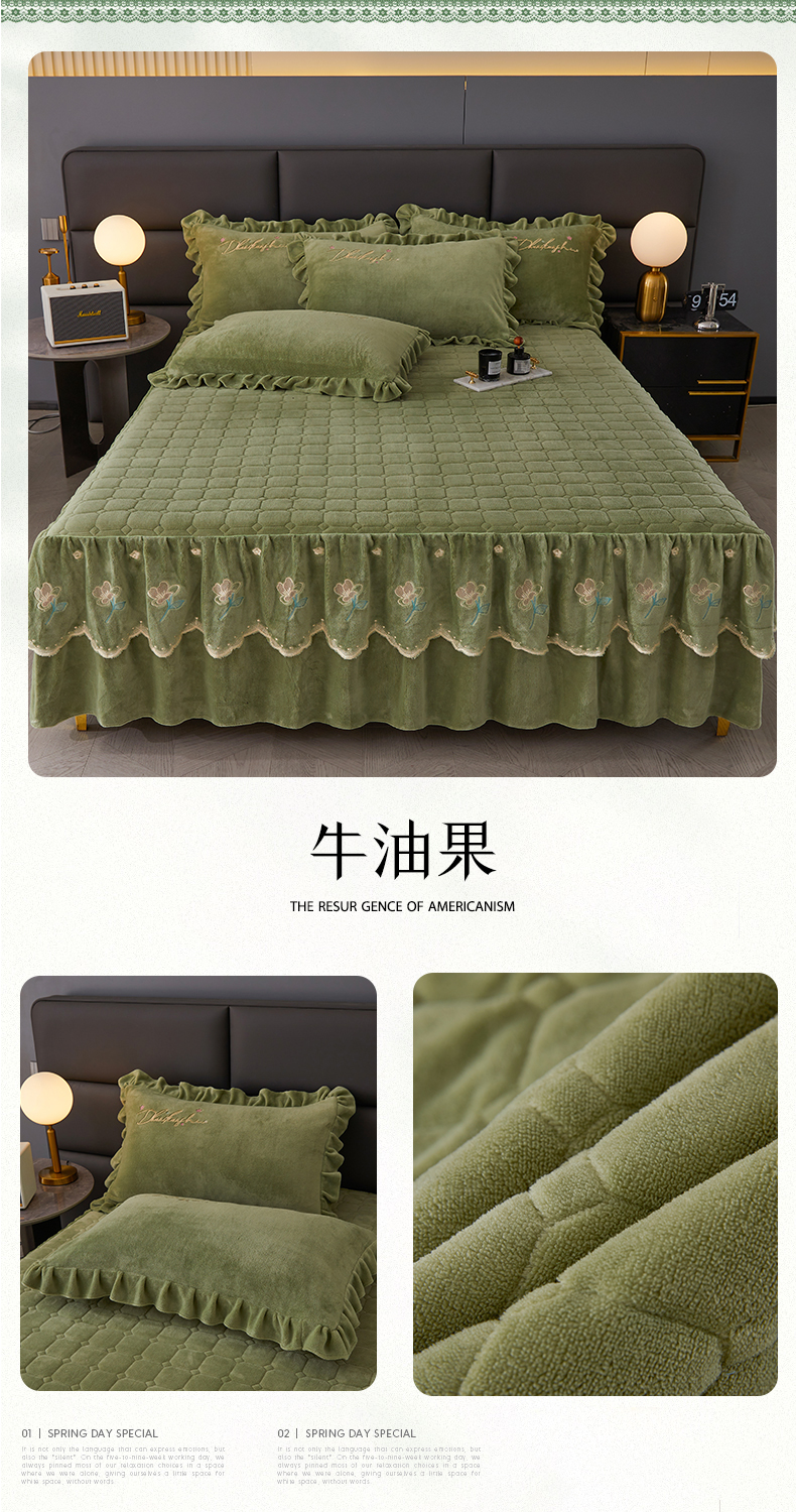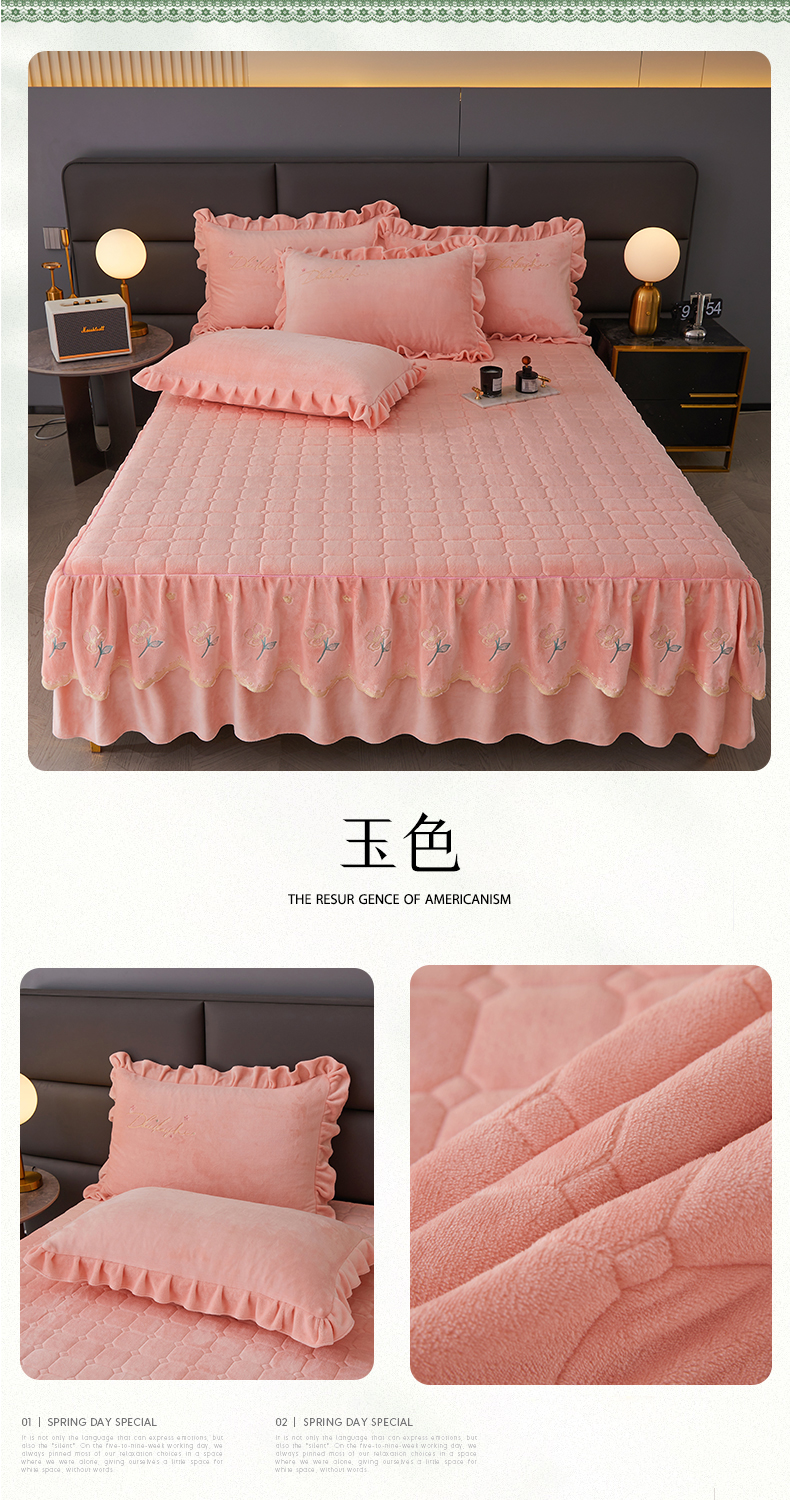 (总)恒爱 2022秋冬水晶绒翩翩花舞夹棉床裙四件套,大红色,豆沙红,橄榄绿,公主粉,桔色,咖啡色,孔雀绿,拉菲红,罗兰紫,玫红色,美人玉,米白色,米驼色,抹茶绿,浅灰色,紫色