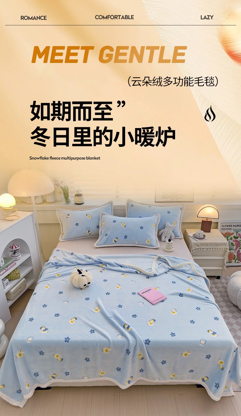 当前位置: 91家纺网 > 商品网购 > 毛毯休闲毯绒毯 > 毛毯 > 锦威郎 2023新款毛毯床单保暖加厚珊瑚绒双面午睡毯云朵绒多功能毛毯 鸭子蓝