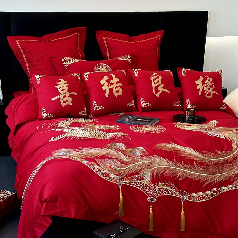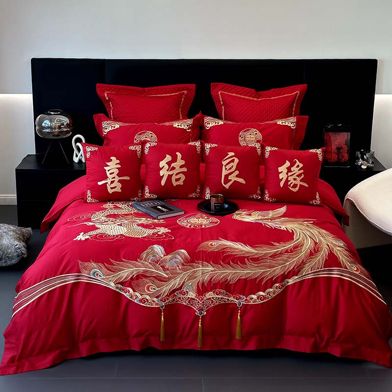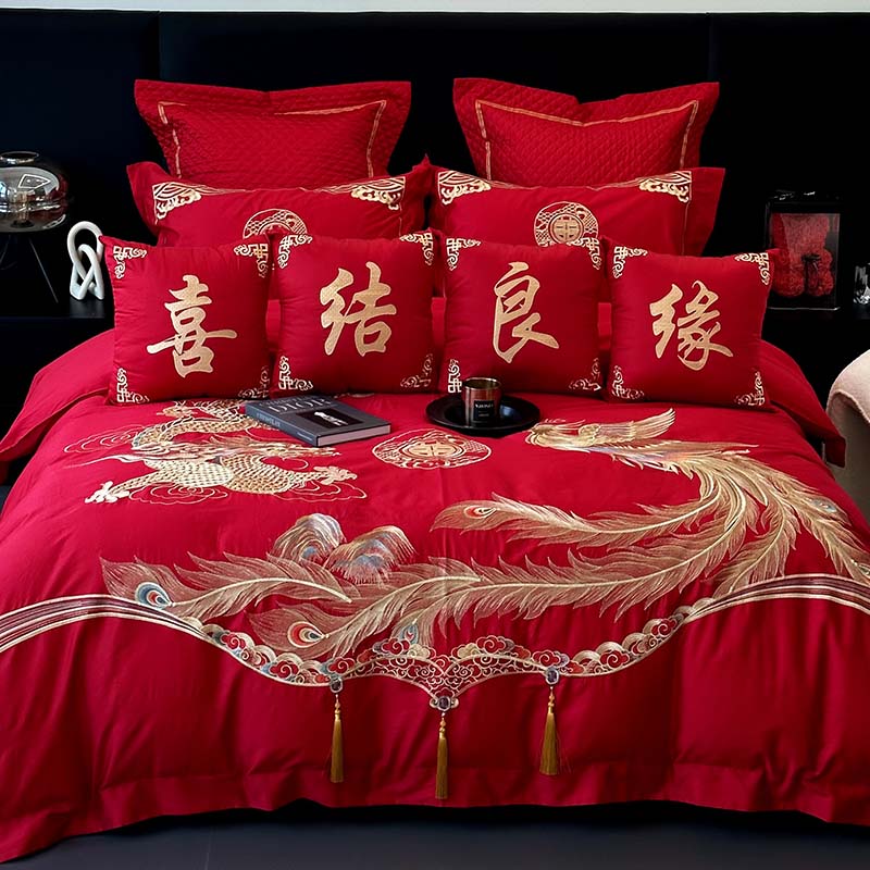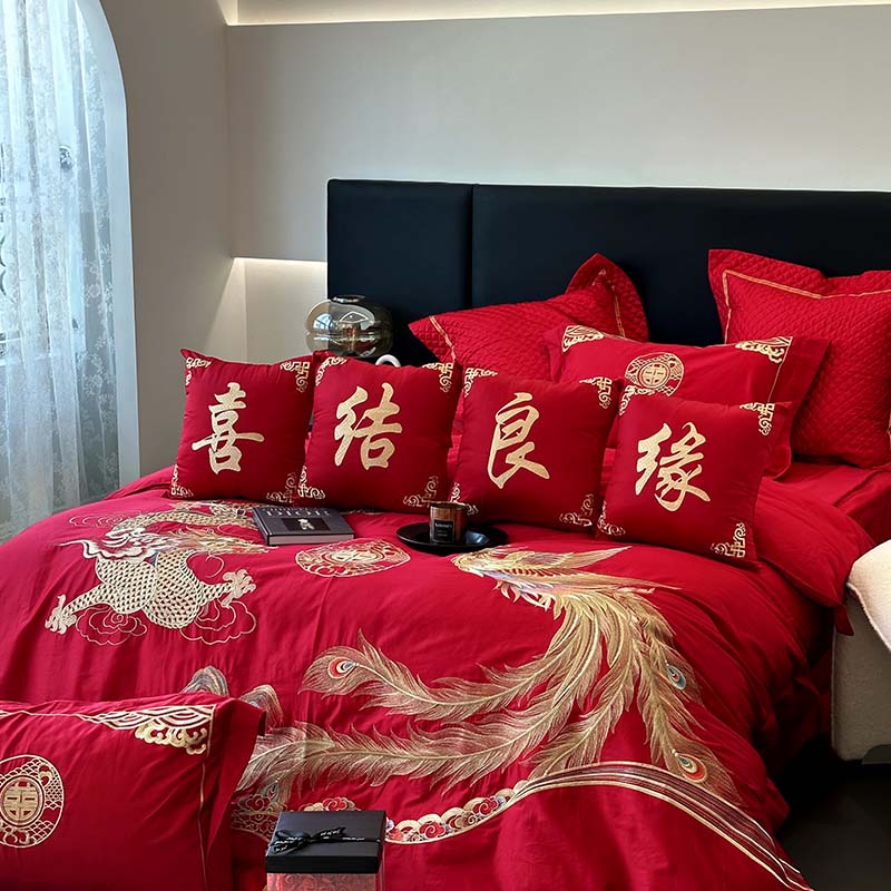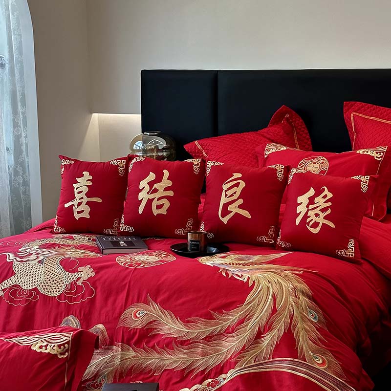 当前位置: 91家纺网 > 商品网购 > 床品套件 > 四件套 > 婚庆四件套 > JUICY 橘滋家纺 2023新款轻奢高端进口长绒棉刺绣婚庆四件套 龙凤喜悦