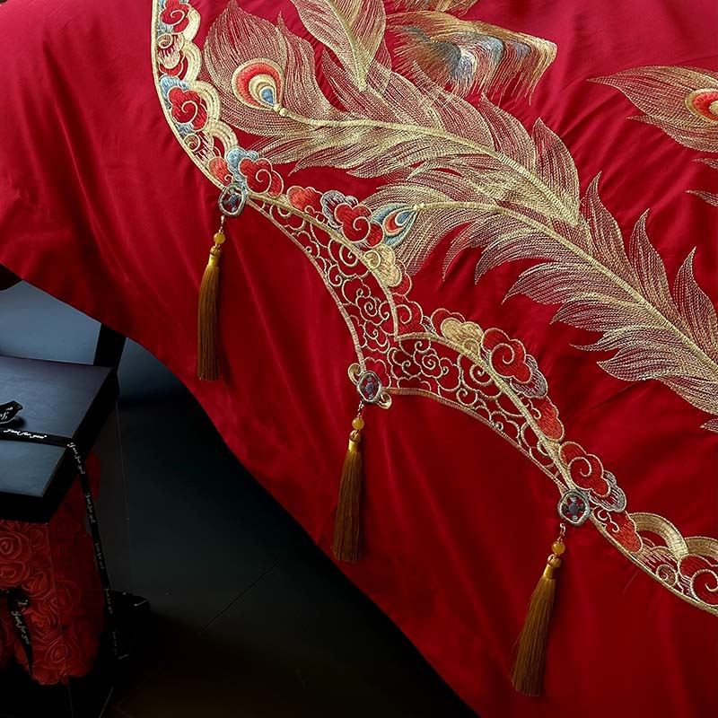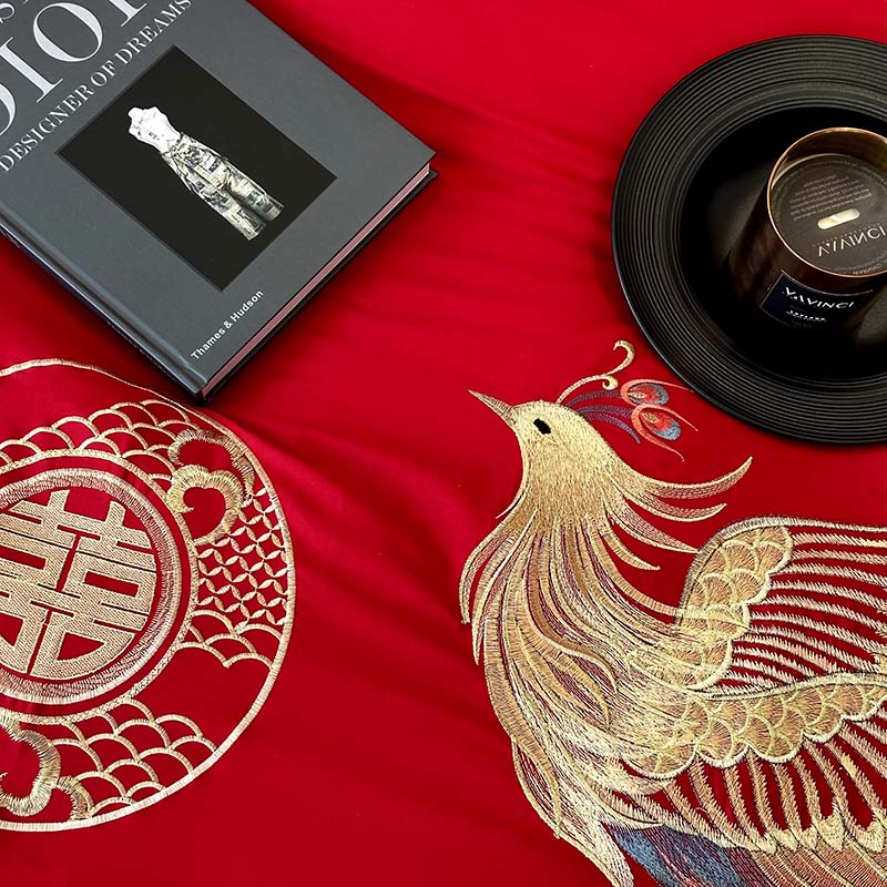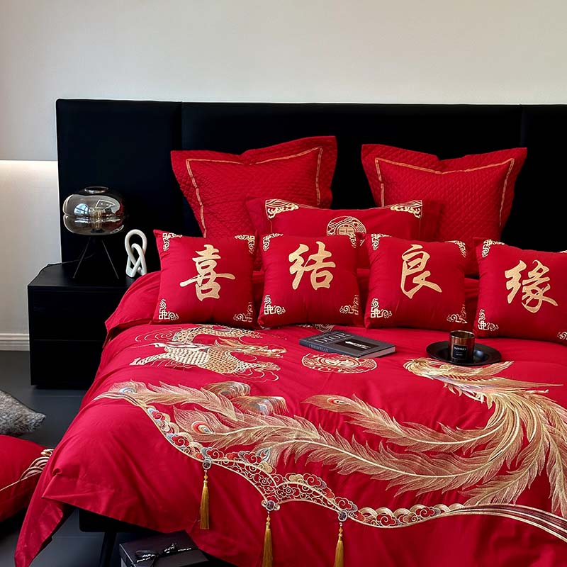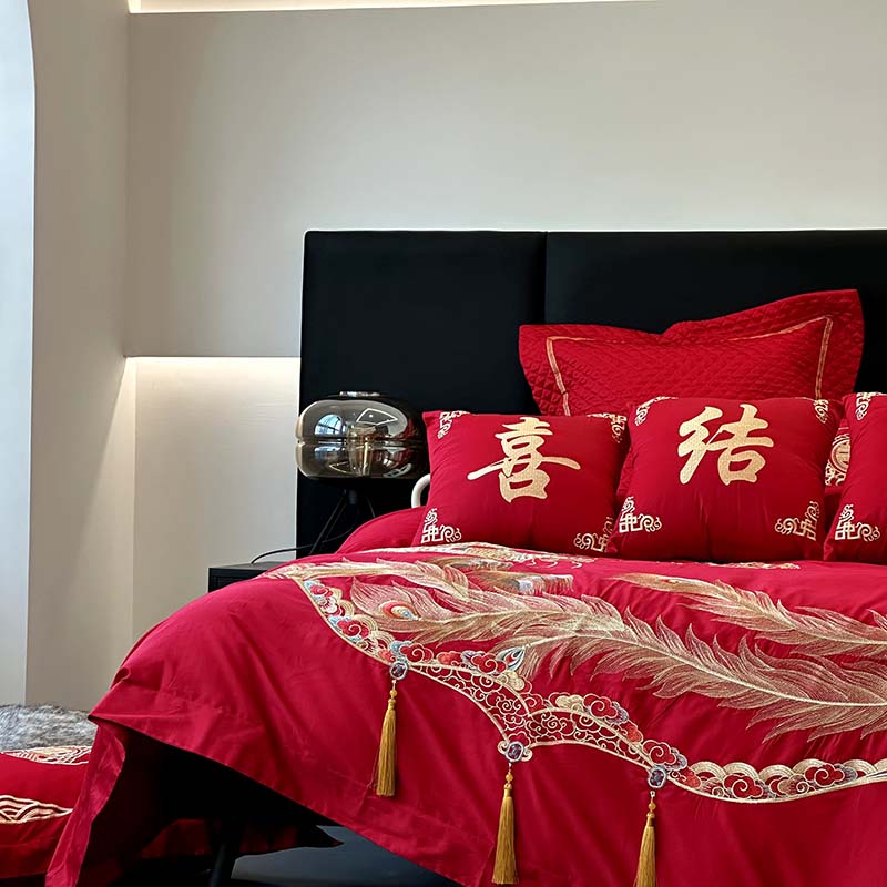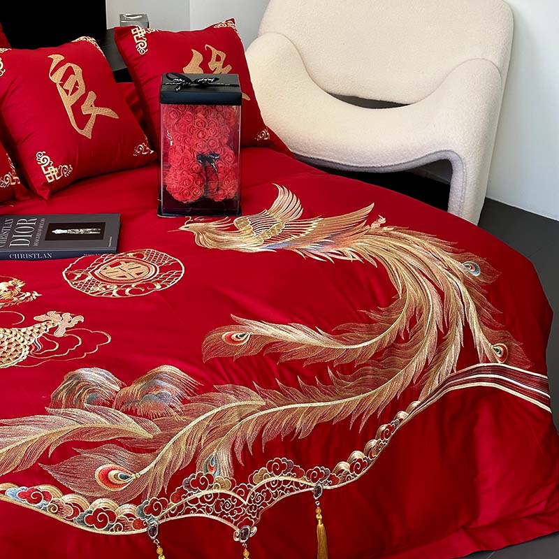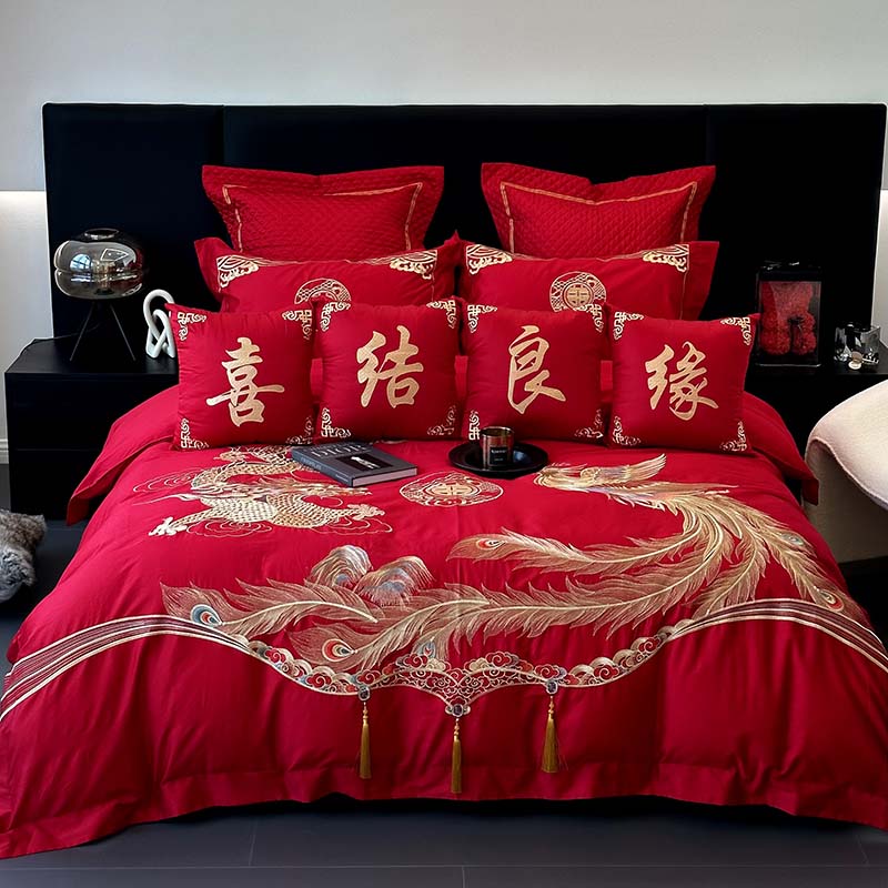 当前位置: 91家纺网 > 商品网购 > 床品套件 > 四件套 > 婚庆四件套 > JUICY 橘滋家纺 2023新款轻奢高端进口长绒棉刺绣婚庆四件套 龙凤喜悦
