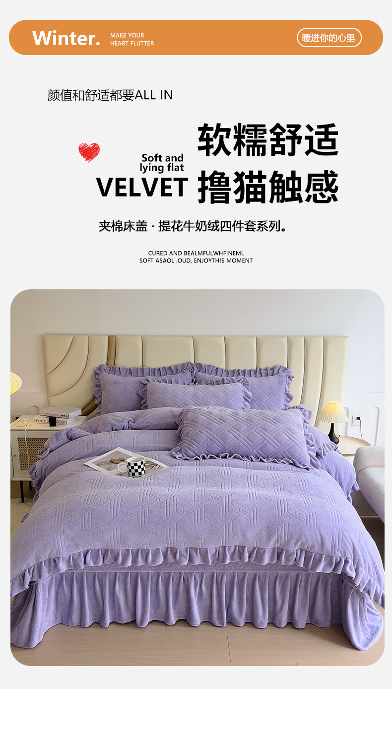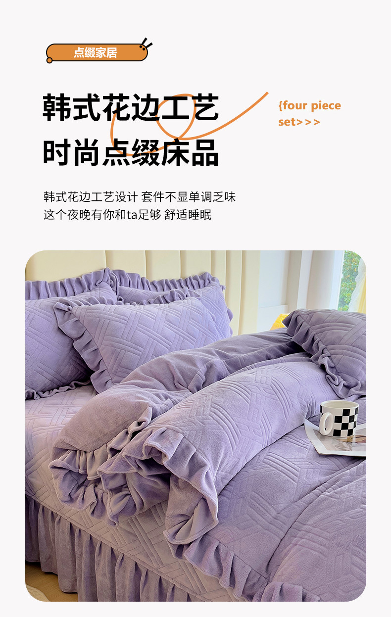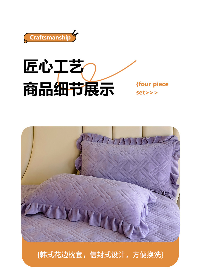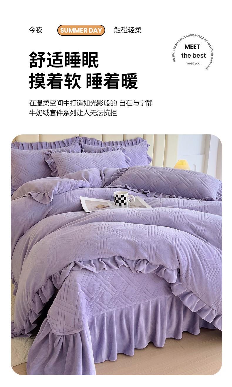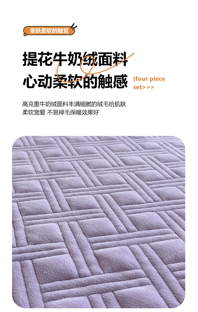 当前位置: 91家纺网 > 商品网购 > 床品套件 > 四件套 > 牛奶绒四件套 > 十个点家纺 2024新款牛奶绒欣雅床盖四件套 欣雅-香芋紫