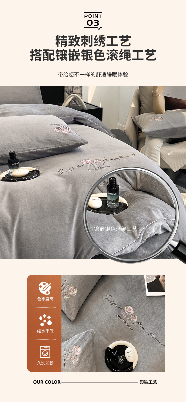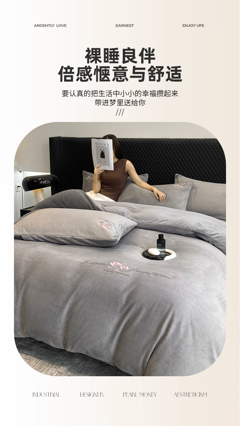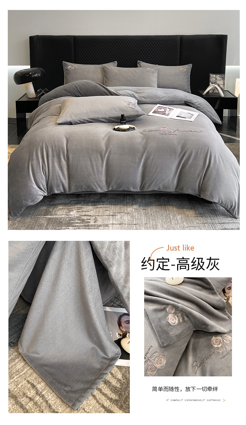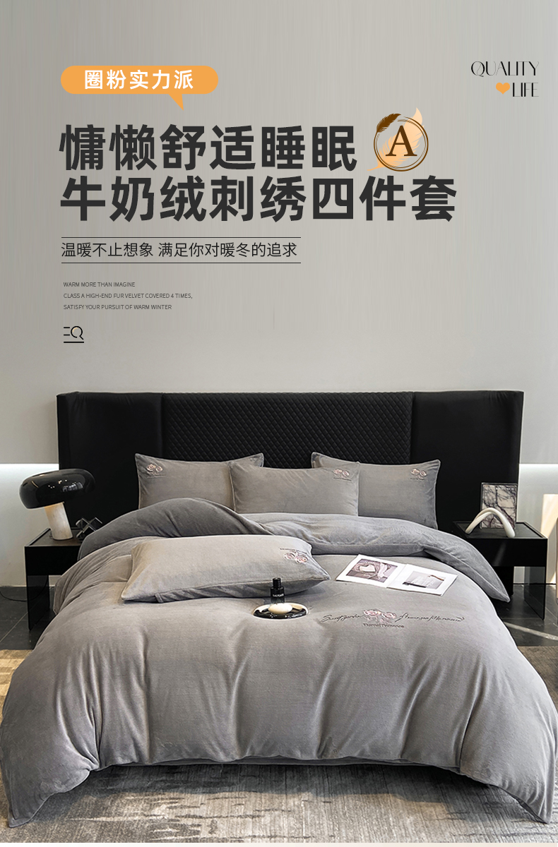 商品名称:家居1号家纺 2024新款230克全工艺牛奶绒四件套 约定 约定-高级灰