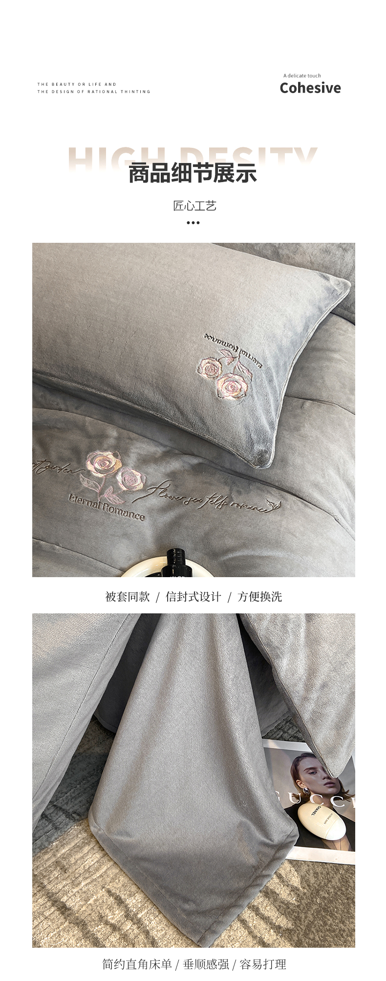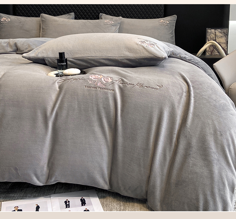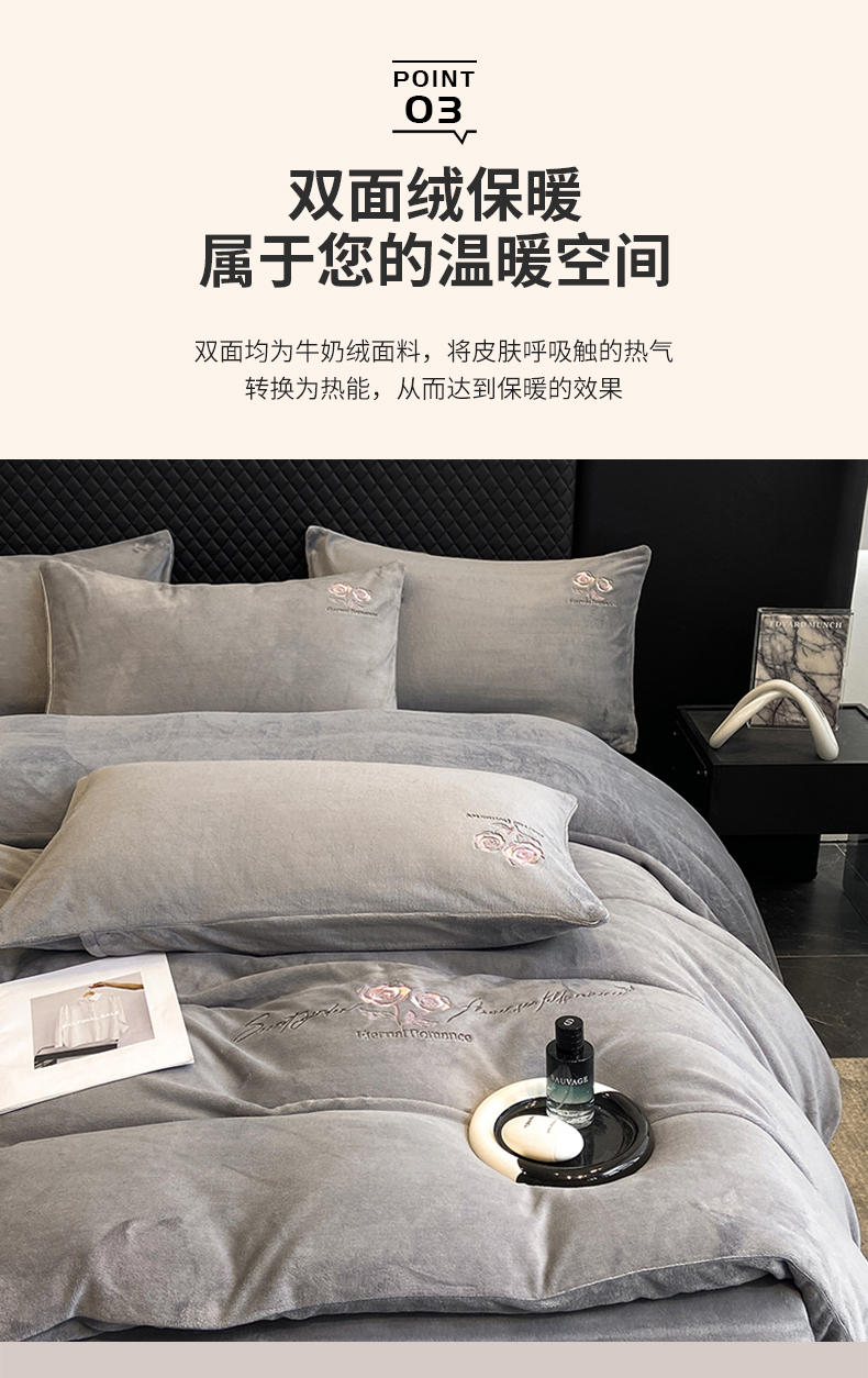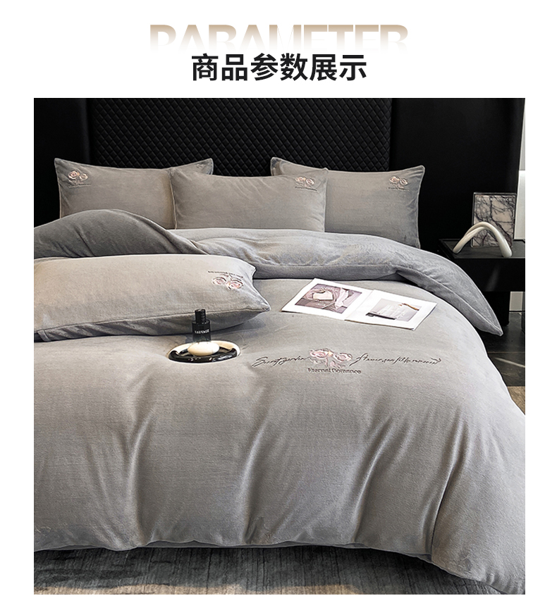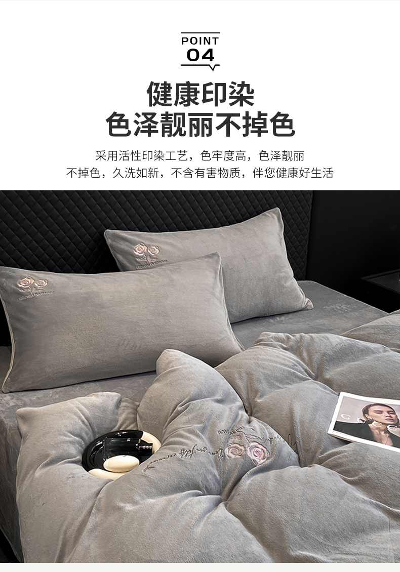 商品名称:家居1号家纺 2024新款230克全工艺牛奶绒四件套 约定 约定-高级灰