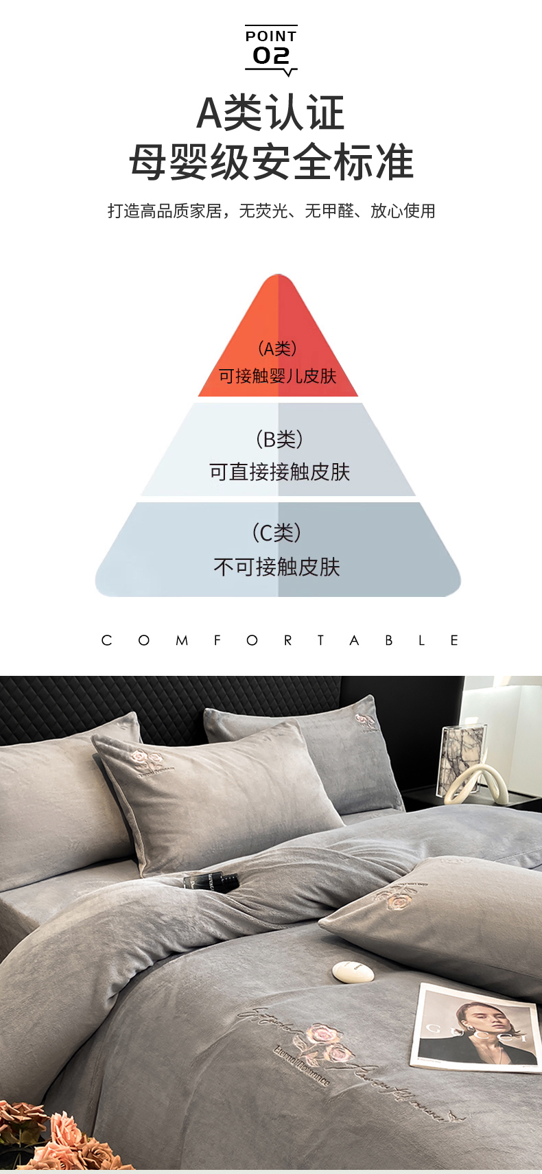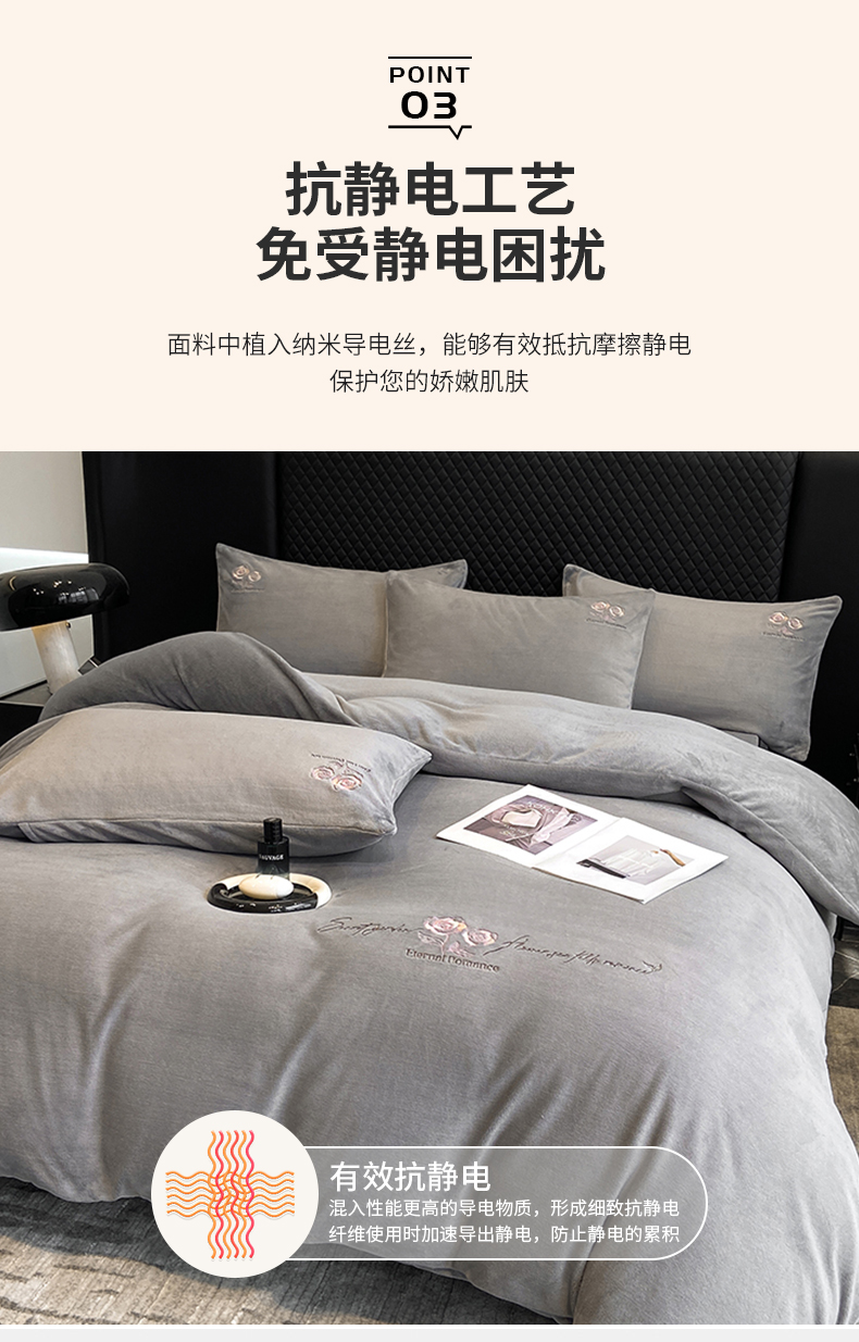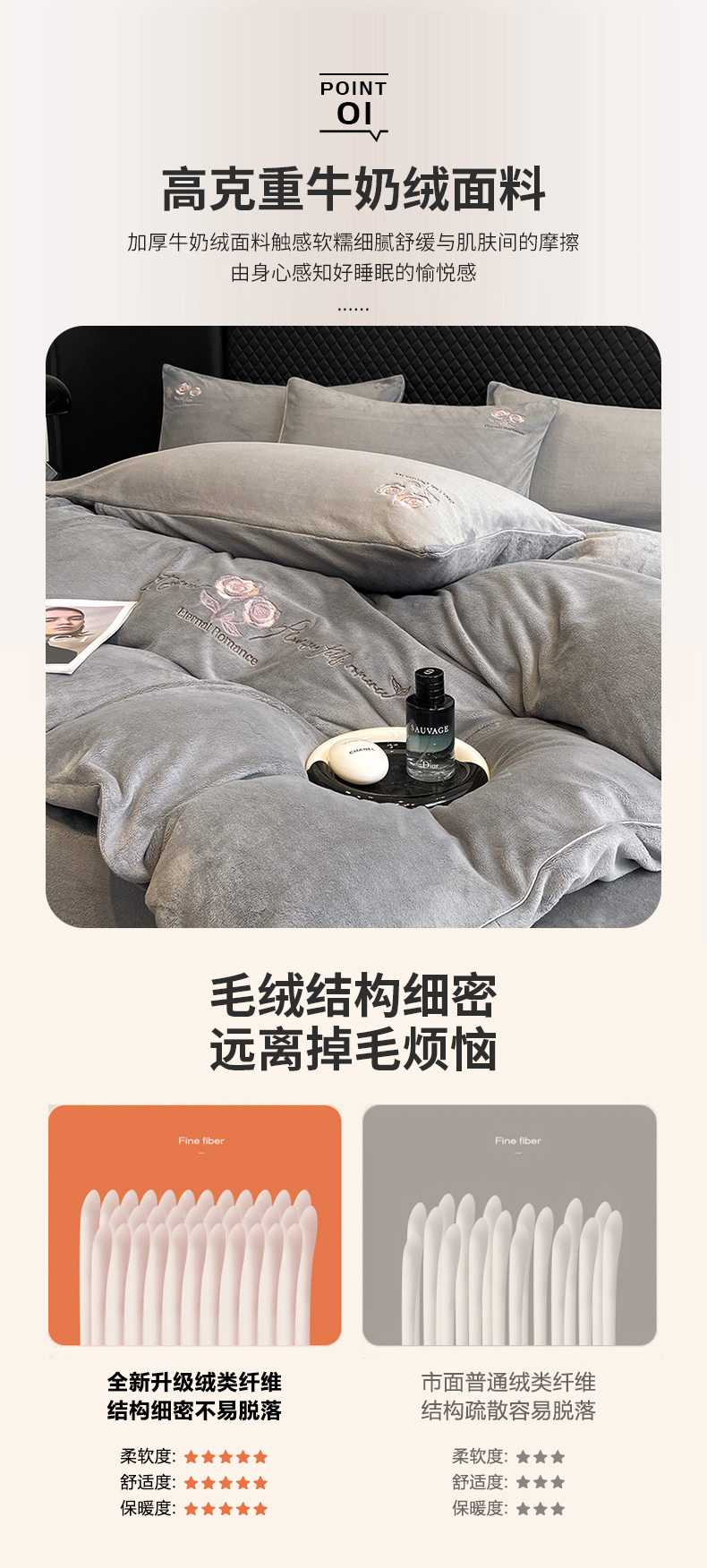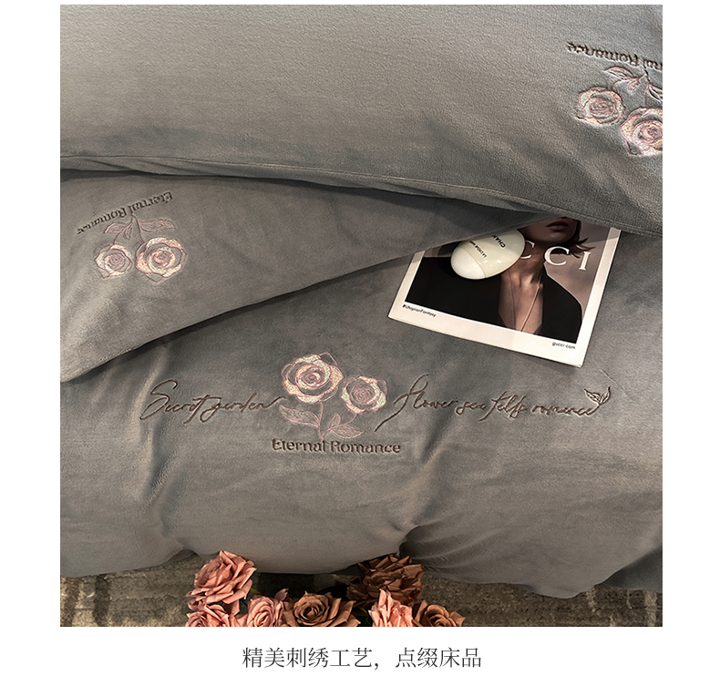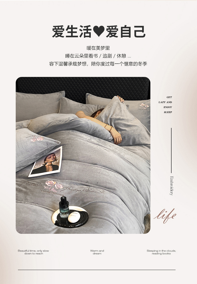 商品名称:家居1号家纺 2024新款230克全工艺牛奶绒四件套 约定 约定-高级灰
