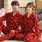洛兰沙家居馆【只代发】【只代发】 2023新款结婚喜庆情侣睡袍纯棉长袖春秋本命年新娘睡衣红色男女士家居服 红色男52014