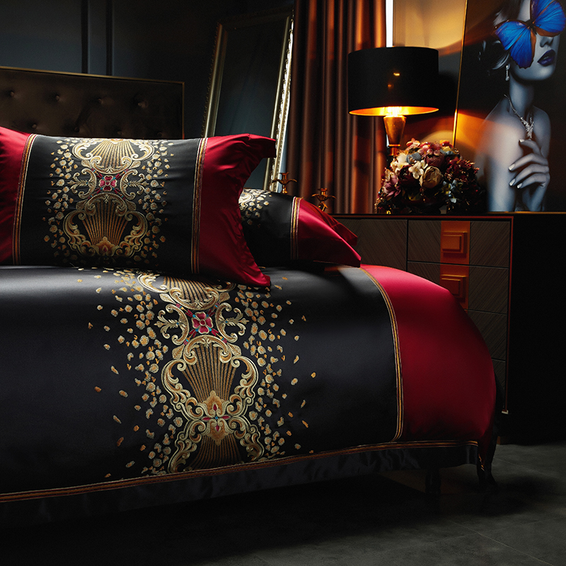 当前位置: 91家纺网 > 商品网购 > 床品套件 > 四件套 > 长绒棉四件套 > 缔缦 2023新款A版真丝棉B版60s长绒棉高端蕾丝四件套系列-伊莲娜 酒红