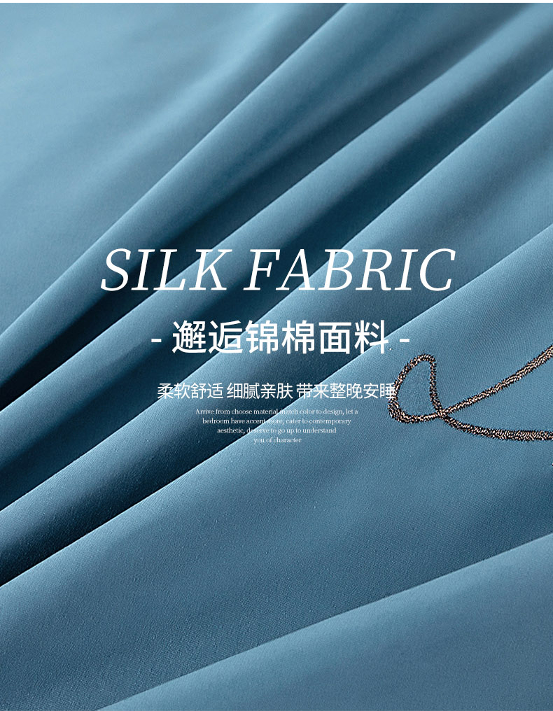 伊而梦 2023新款锦棉宽边绣花四件套--倚栏听风 倚栏听风-湖蓝