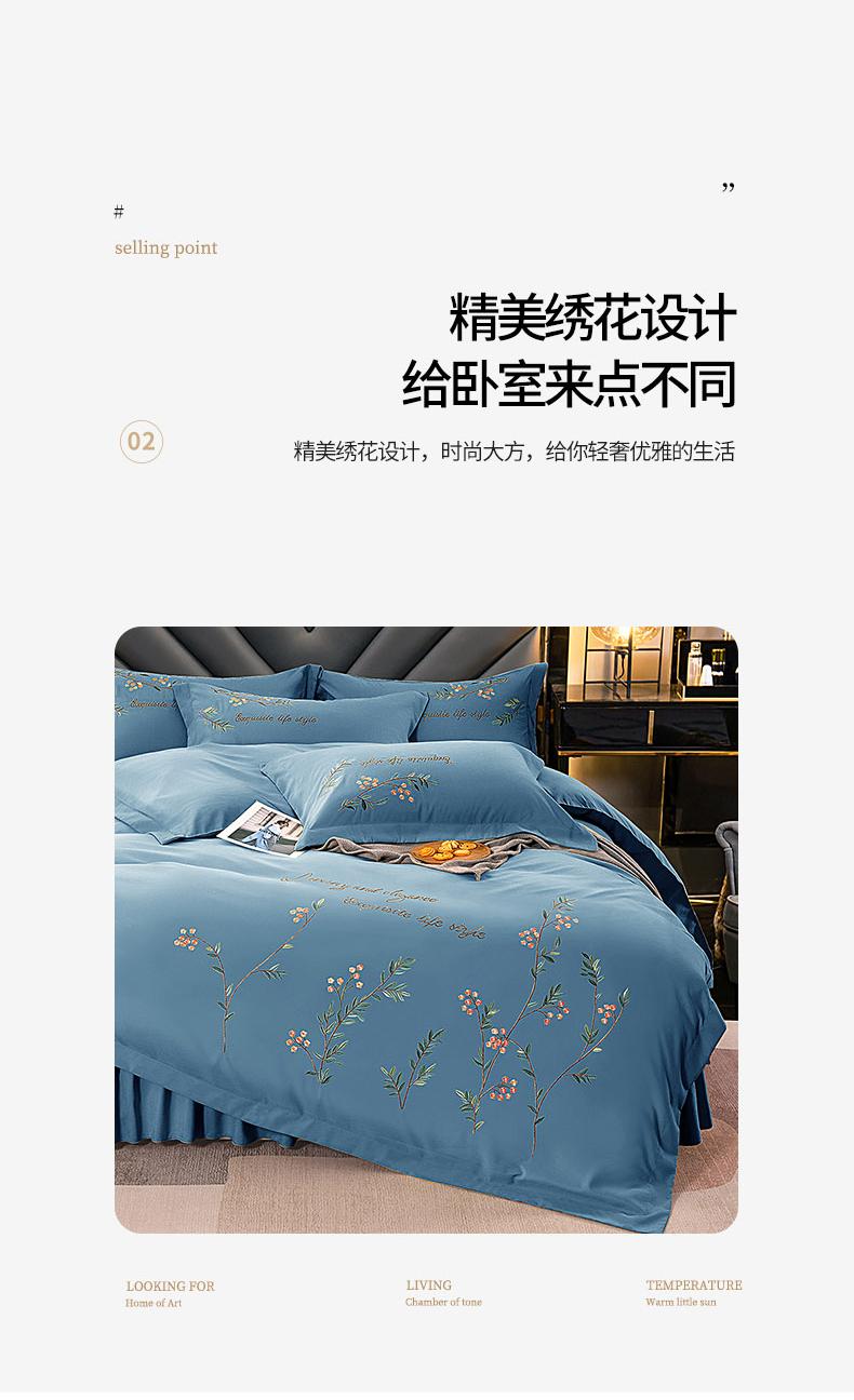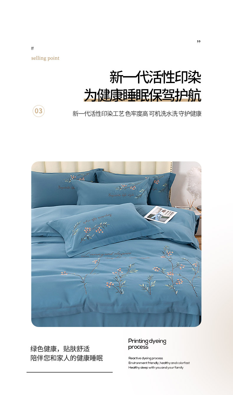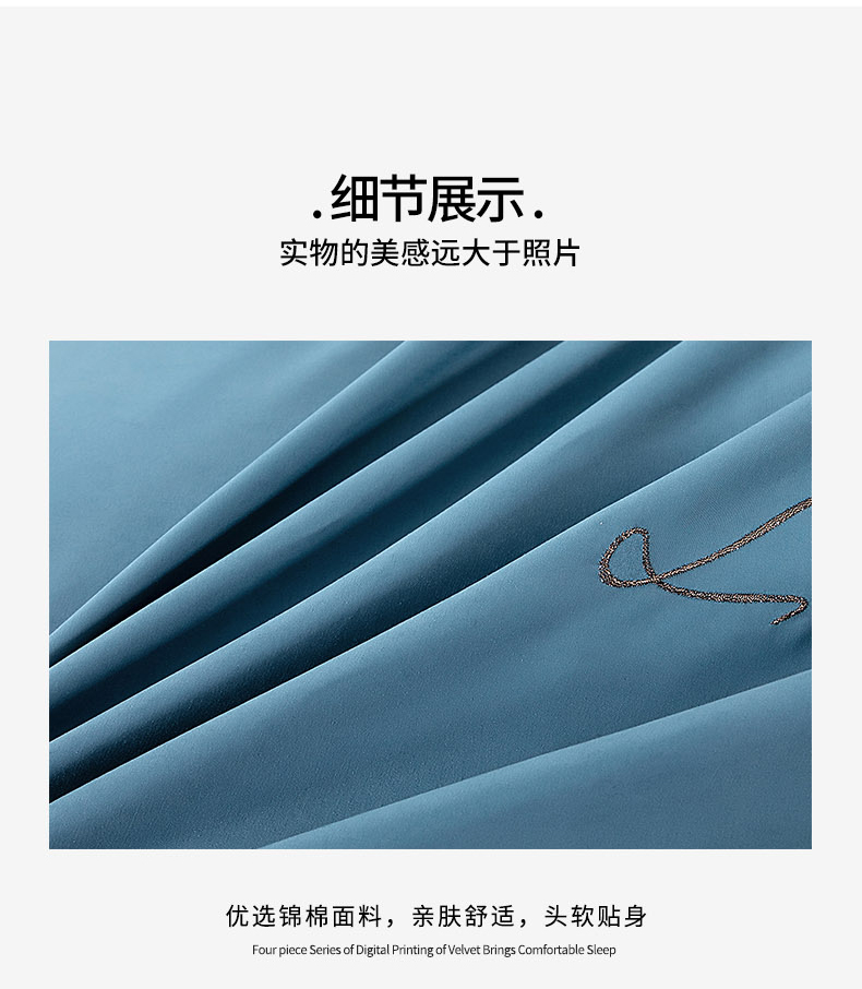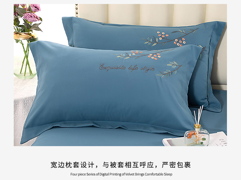 商品名称:伊而梦 2023新款锦棉宽边绣花四件套--倚栏听风 倚栏听风-湖蓝