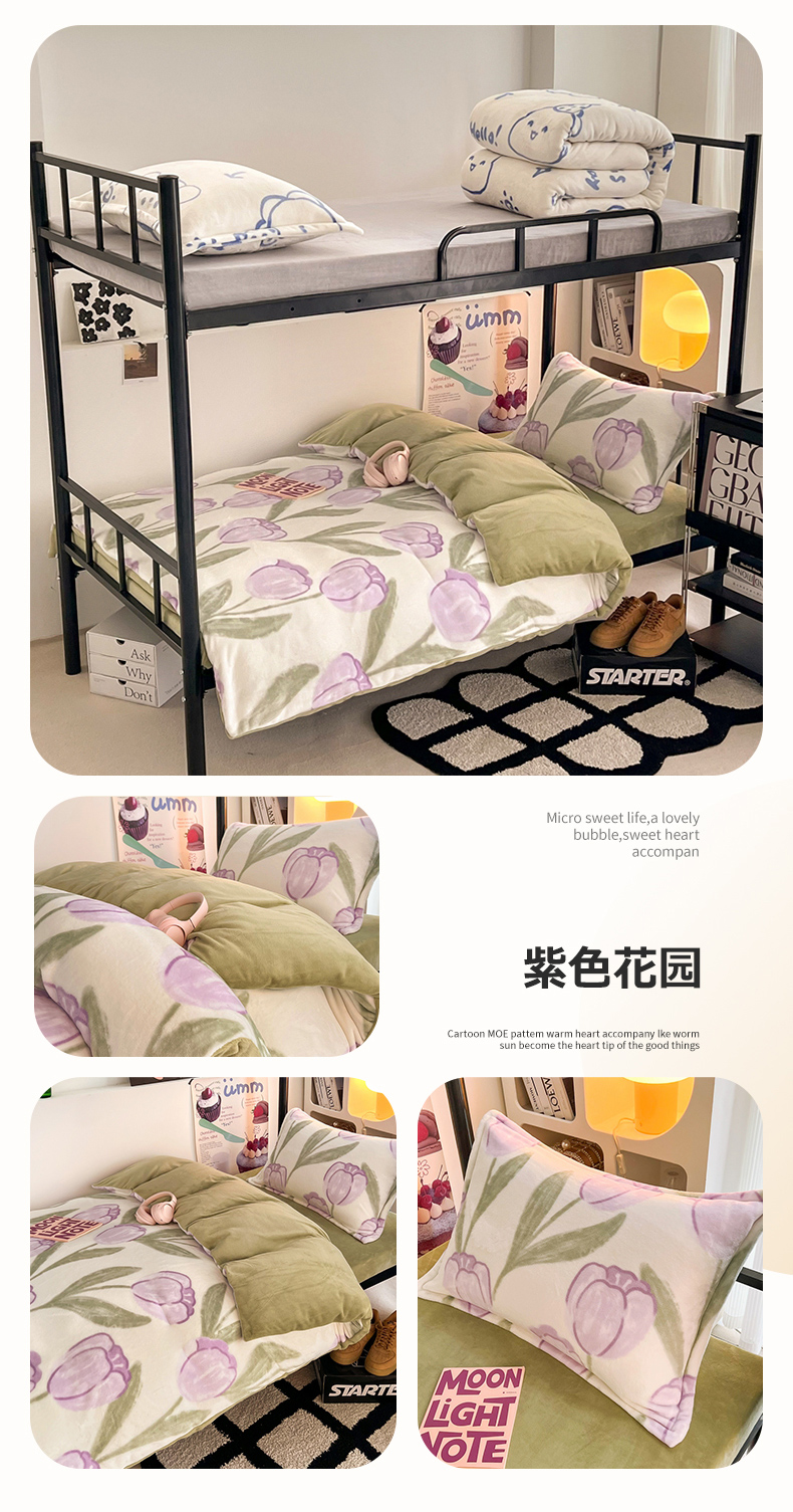 (总)川悦生活 2023新款高克重宿舍牛奶绒三件套四件套