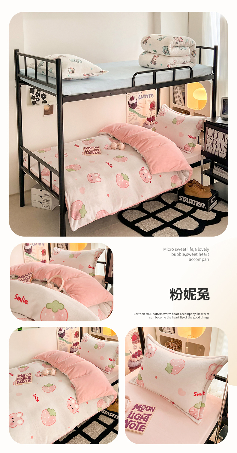 (总)川悦生活 2025新款立体雪花绒印花四件套学生床系列一场景一,ins樱桃,爱米兔,冰激凌小熊,波波熊,啵啵草莓,彩虹爱心粉,彩虹爱心蓝,彩虹爱语粉,彩虹爱语蓝,哒哒鸭丫,嘎嘎小熊,橘兔,可爱熊,可可小狗,快乐鸭鸭,蜜语奶兔,奶芙小花,奶咖小熊,奶味云朵,妮娜兔,巧克力熊,桃心爱语,甜蜜日常粉,甜系粉熊,甜系龙龙,小熊花园,幸福甜兔,熊小巴,郁金奶兔