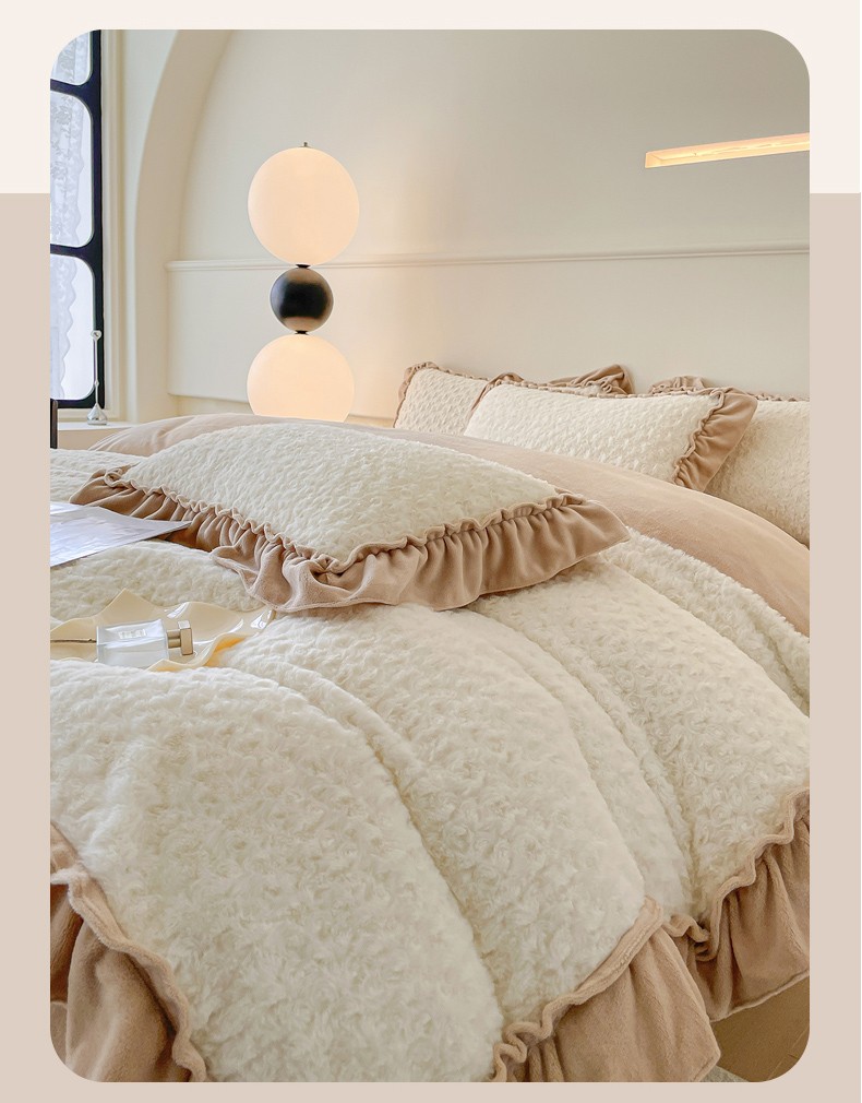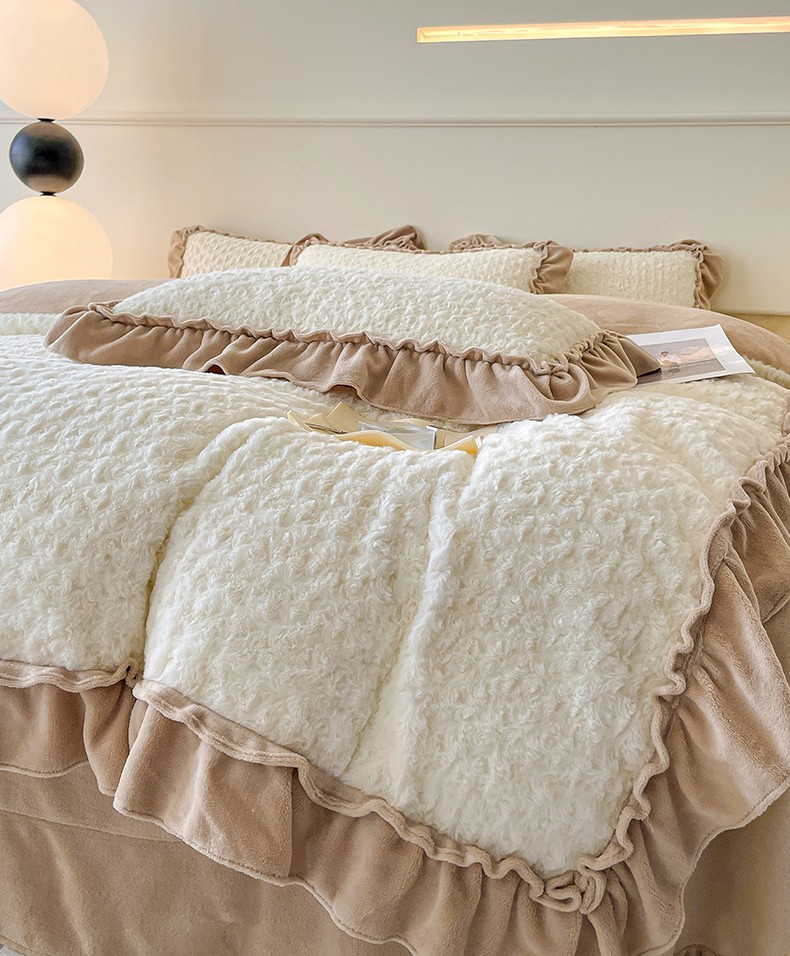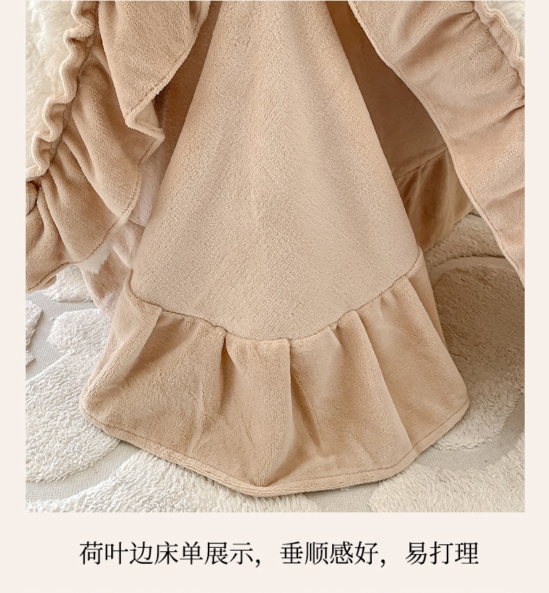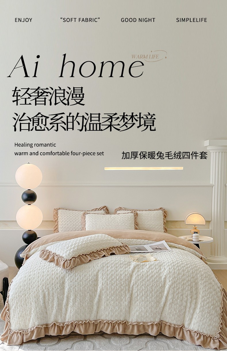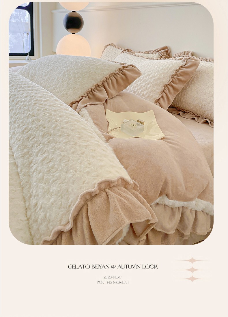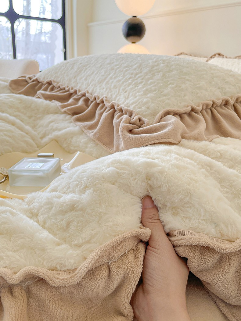 小主驾到 2023新款白桃乌龙兔兔绒牛奶绒花边款四件套白桃乌龙