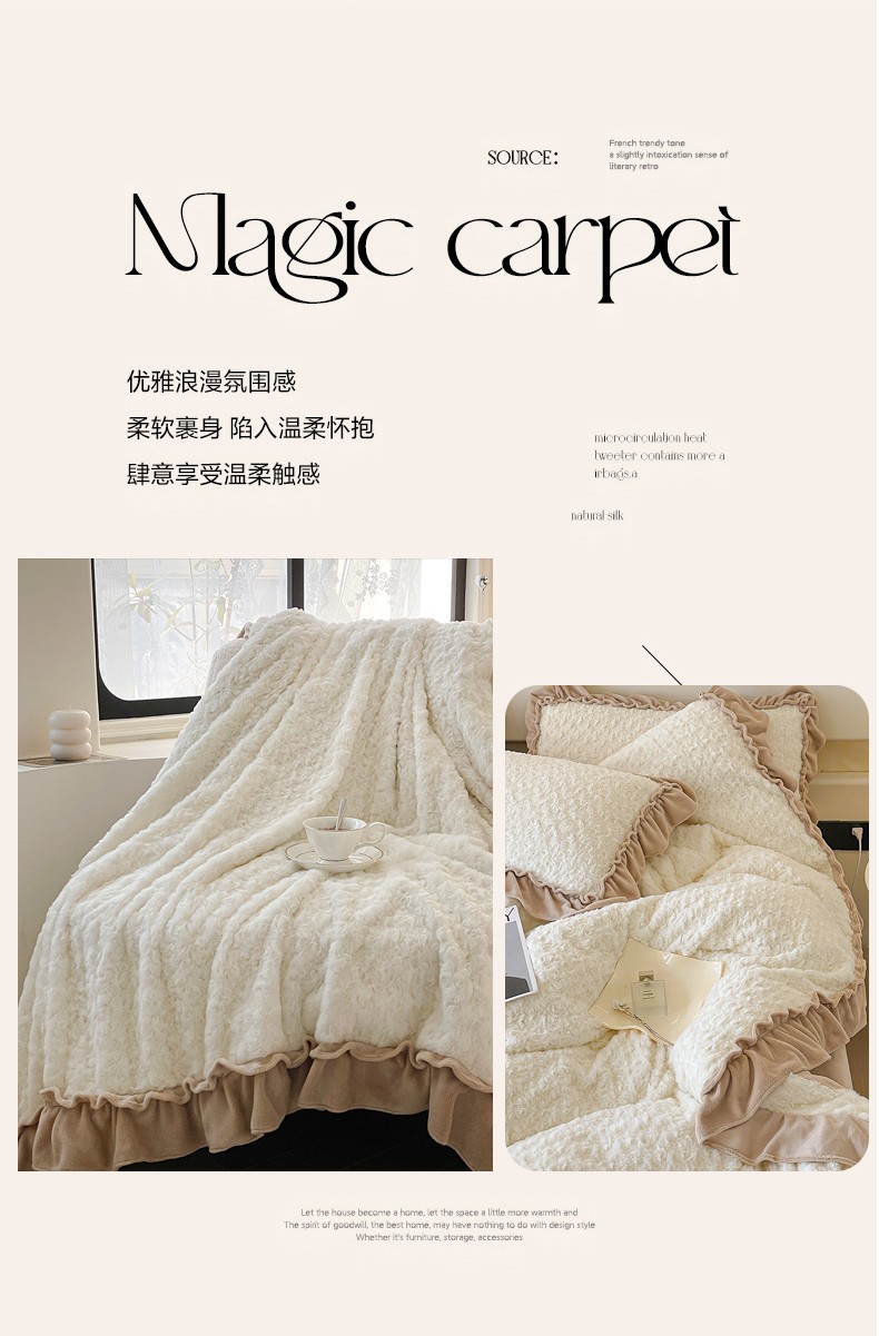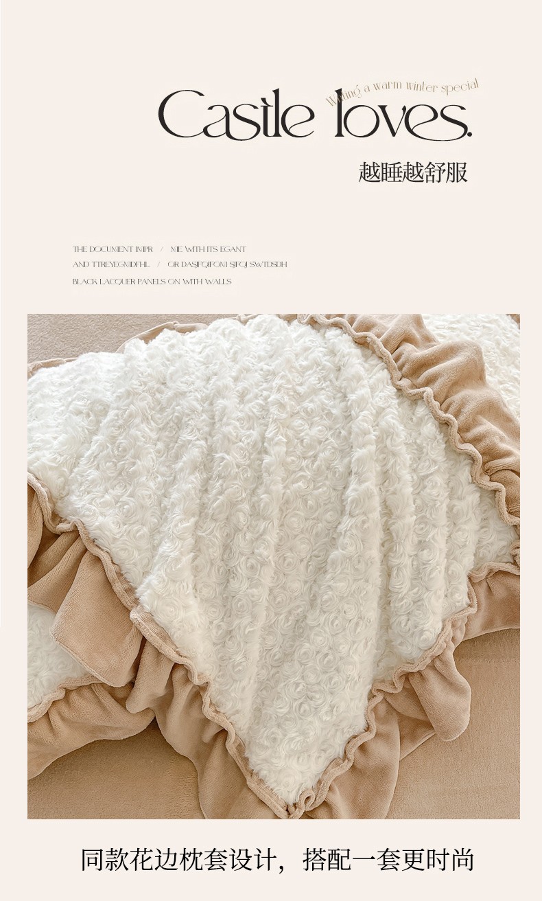 (总)小主驾到 2025新款高克重雕花牛奶绒花边款床单床盖款四件套,洛薇 粉,洛薇 灰紫,洛薇 蓝,洛薇 米白