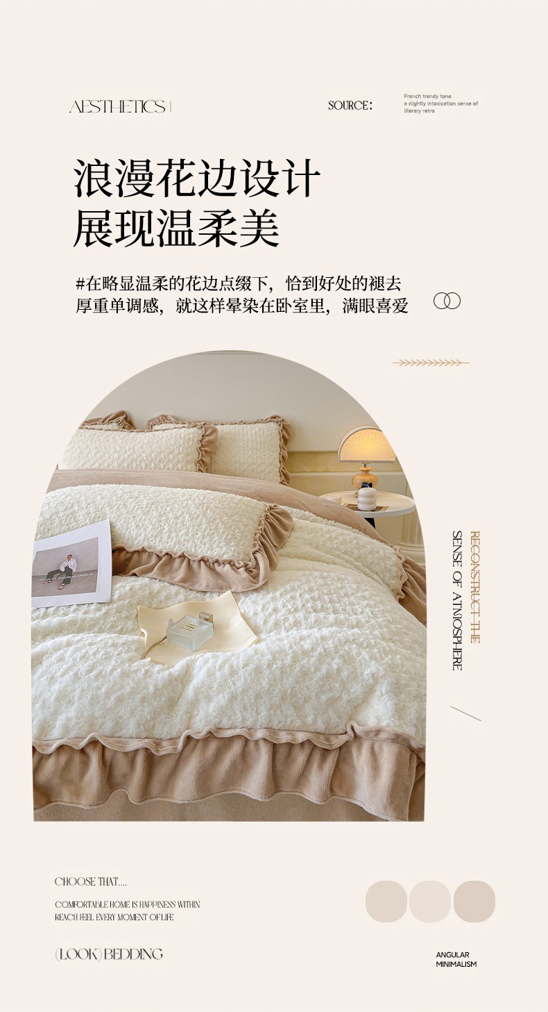 (总)小主驾到 2024新款兔毛绒牛奶绒花边款轻奢法式赫本风四件套,五十度兰,五十度灰,五十度绿
