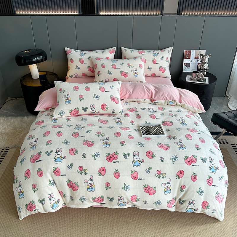 (总)斯卡诺家纺 2025小清新加厚高克重牛奶绒四件套网红直播爆款,樱桃,北欧兔,贝拉,兰心小鸭,萌萌兔,趣味草莓,爱心花朵,爱心灰,爱心熊粉,彩虹,黑白荷花,花边动物,快乐小熊,萝卜,绿野仙踪,魅影,萌萌狗,迷你小熊,牡丹花,泥点子母,气球小象,水果,蝴蝶结,咖爱心,恐龙世界,花妖