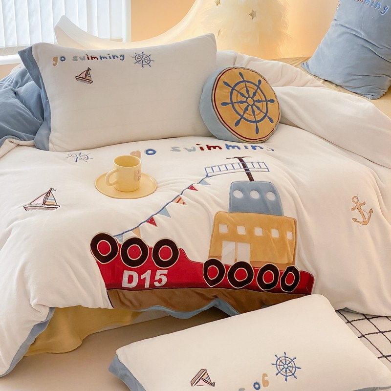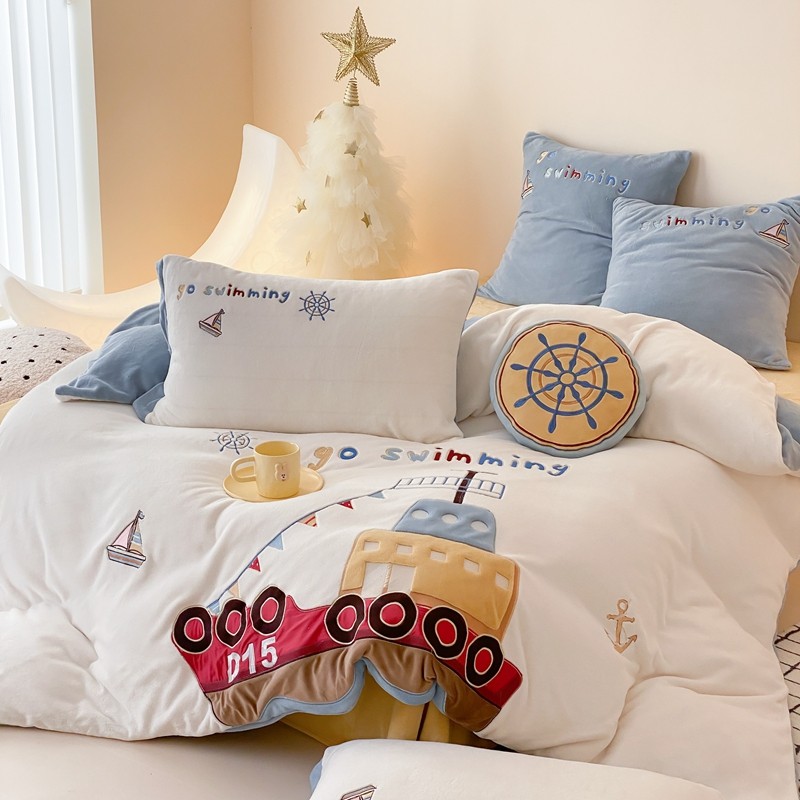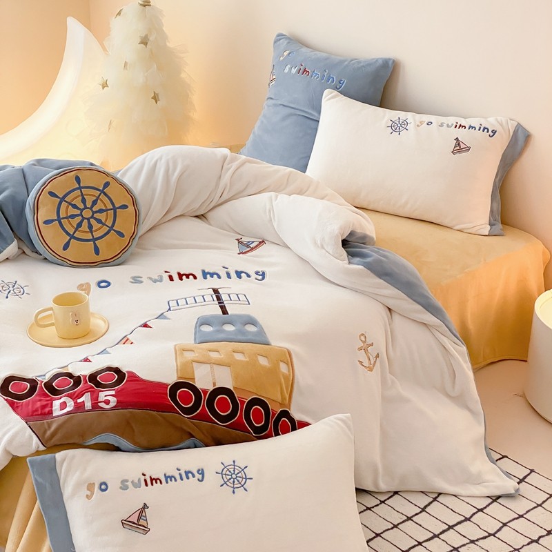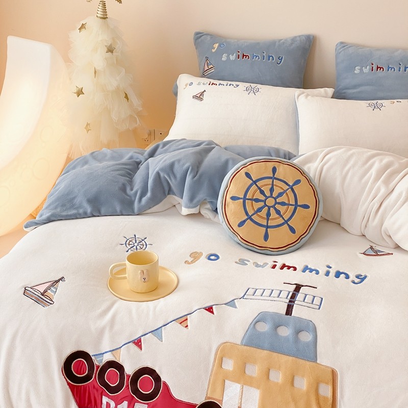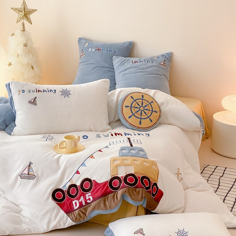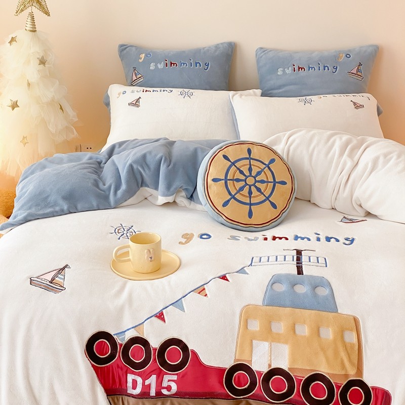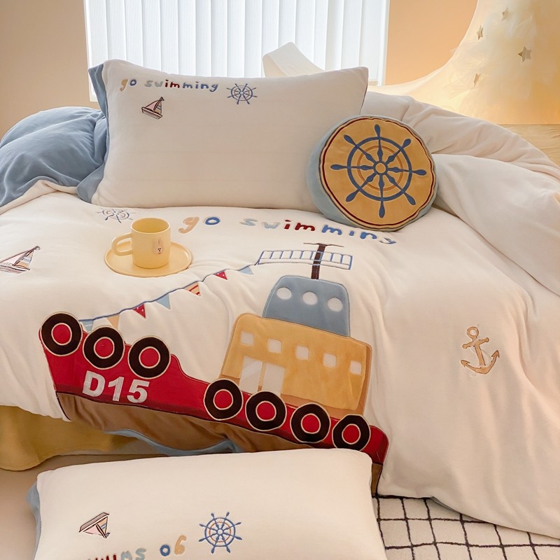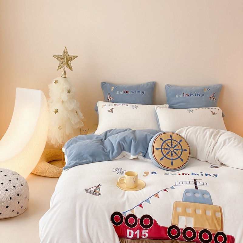 总 星野 2023秋冬新款牛奶绒刺绣贴布绣四件套-梦想启航