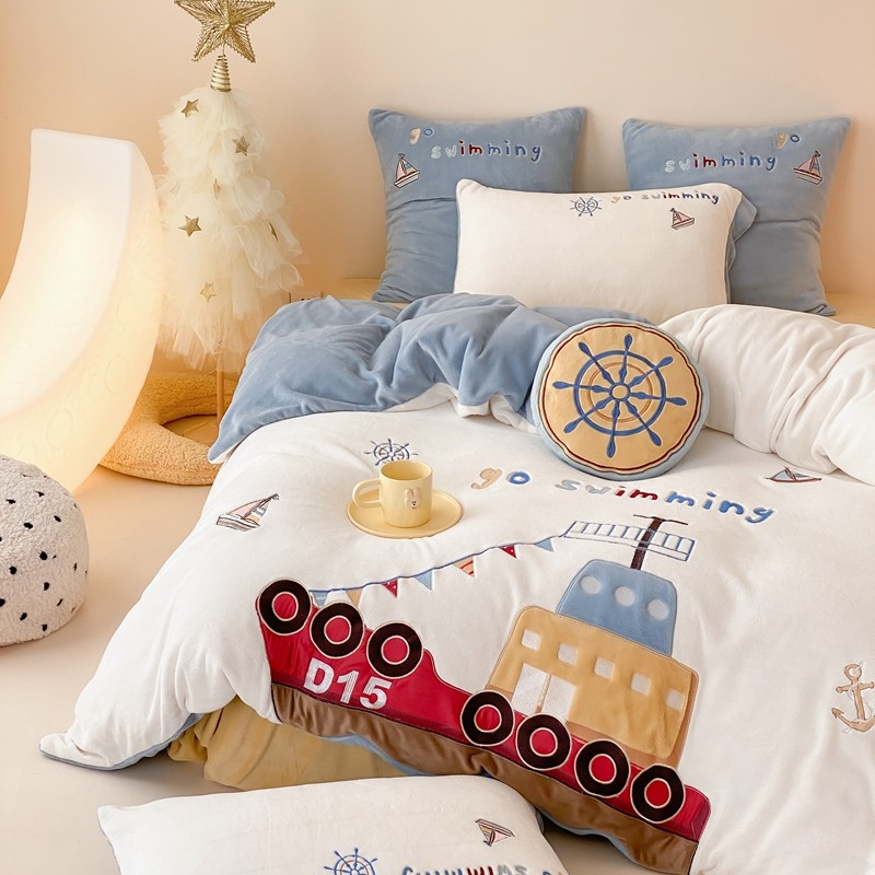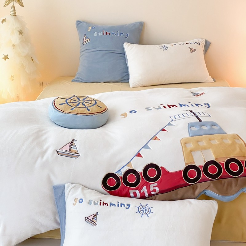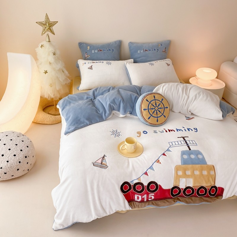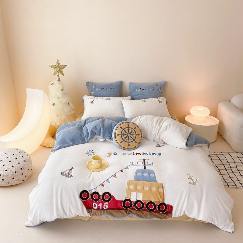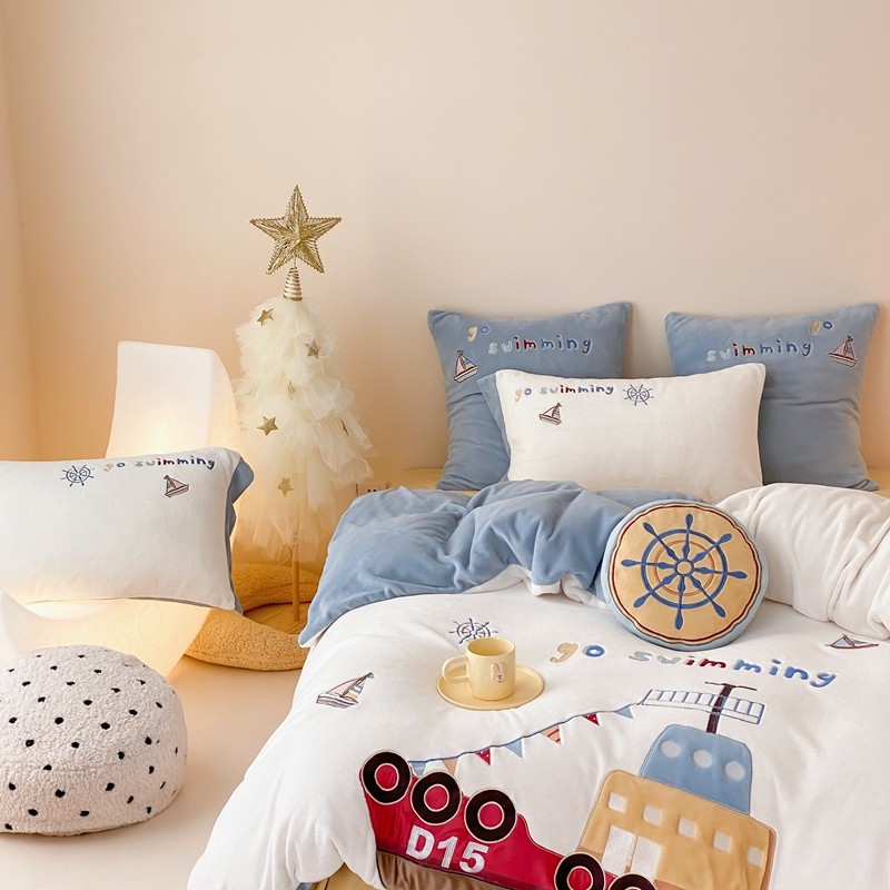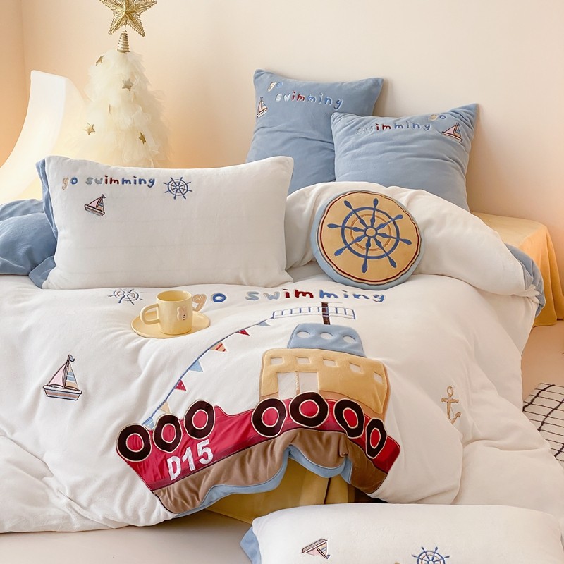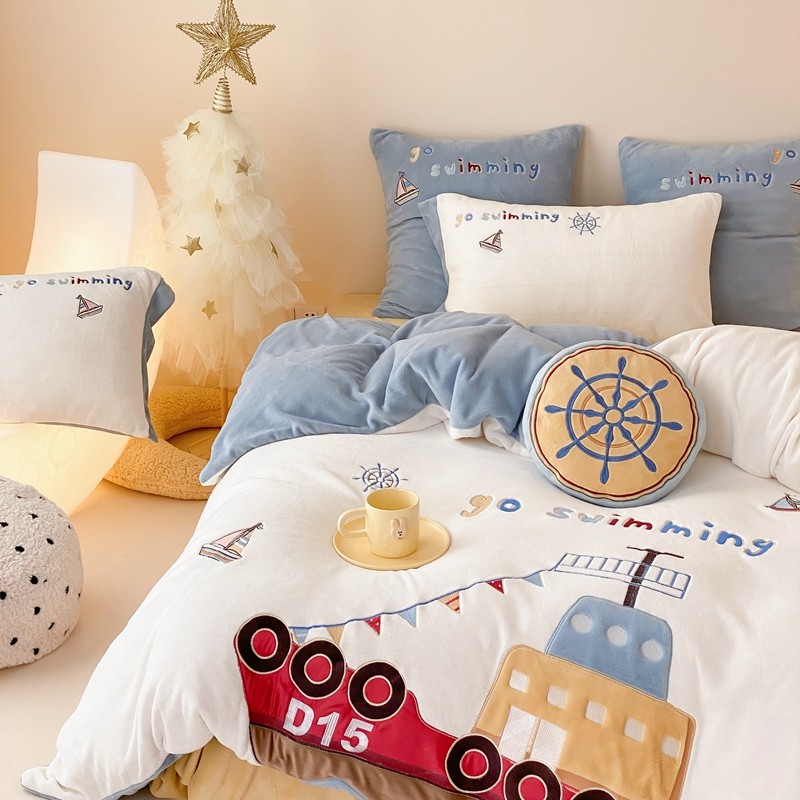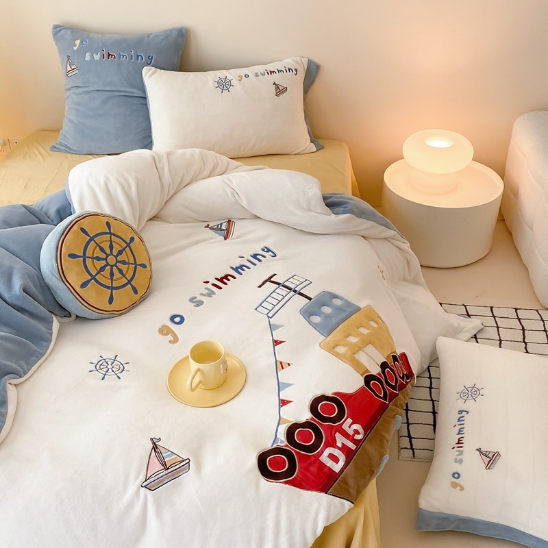 总 星野 2023秋冬新款牛奶绒刺绣贴布绣四件套-梦想启航