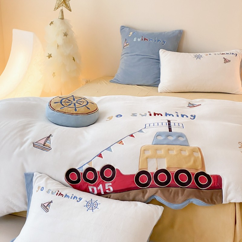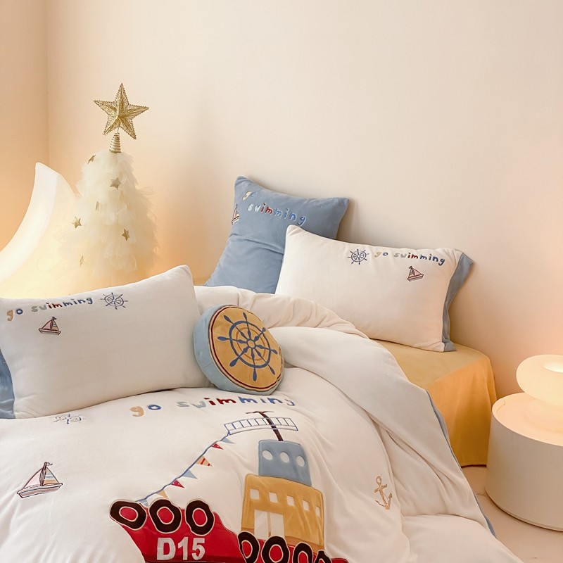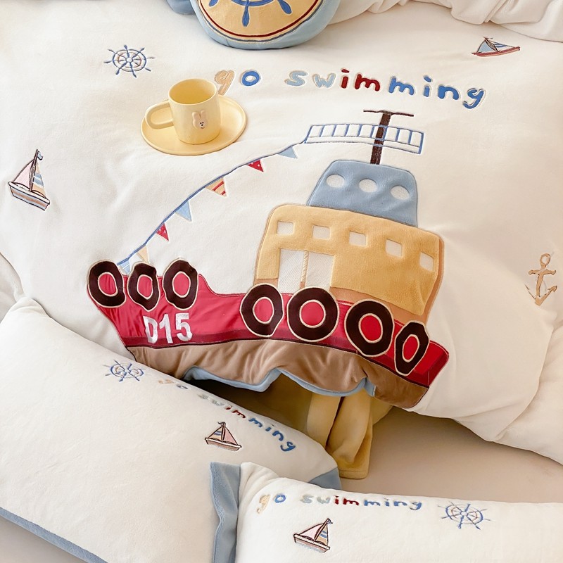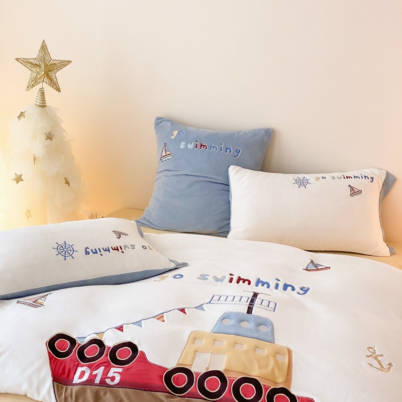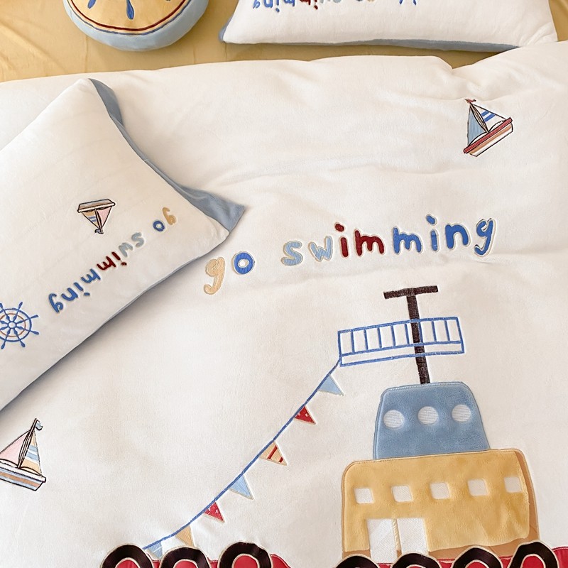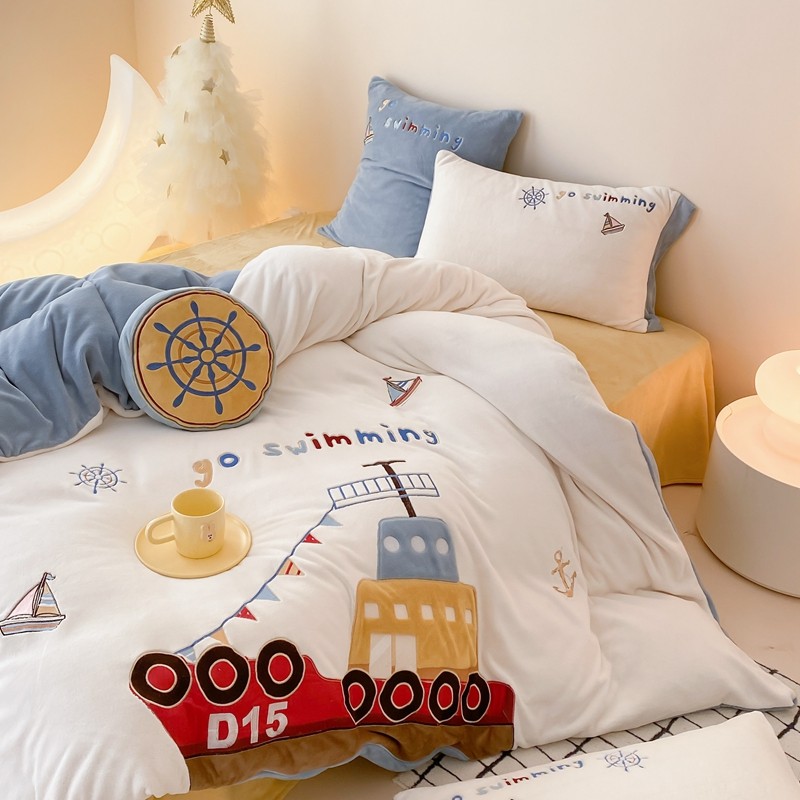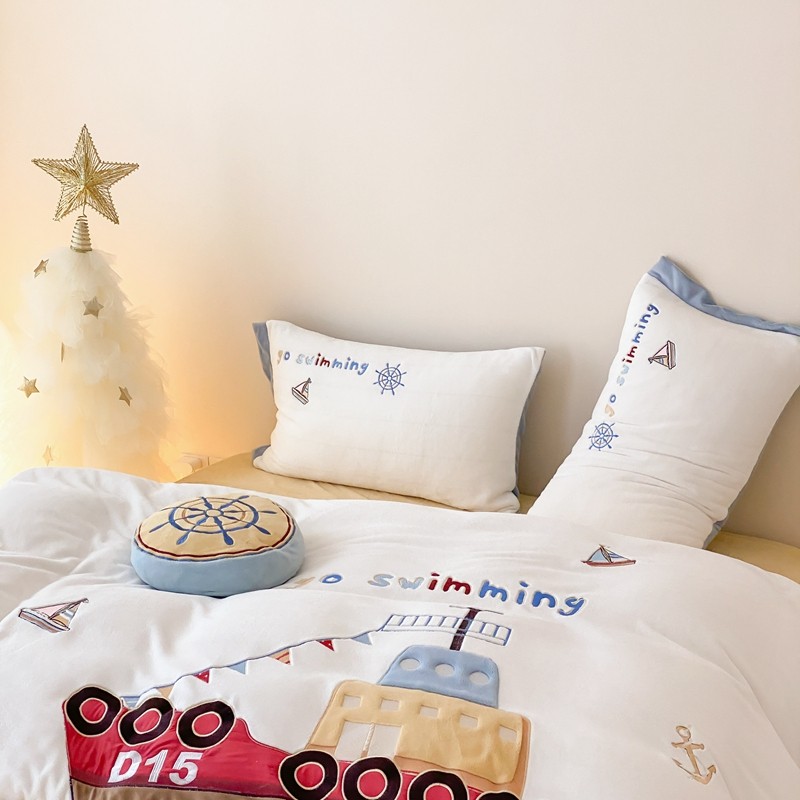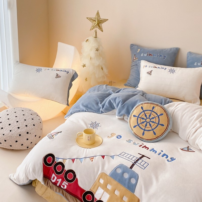 总 星野 2023秋冬新款牛奶绒刺绣贴布绣四件套-梦想启航