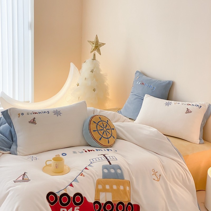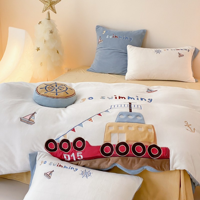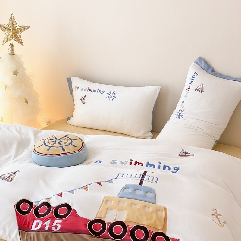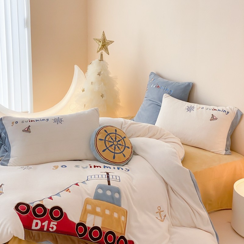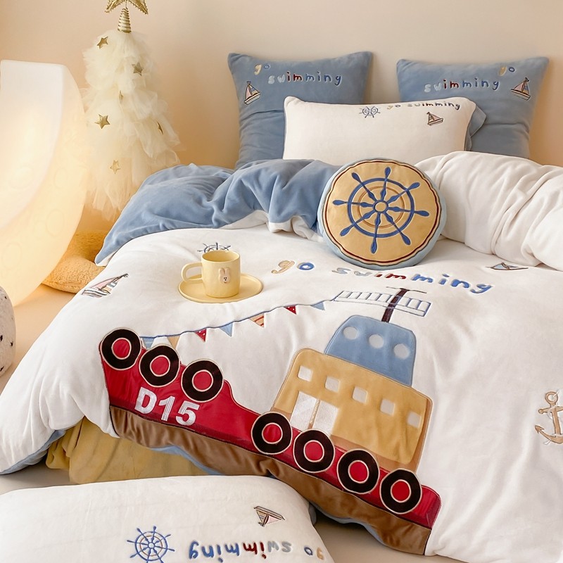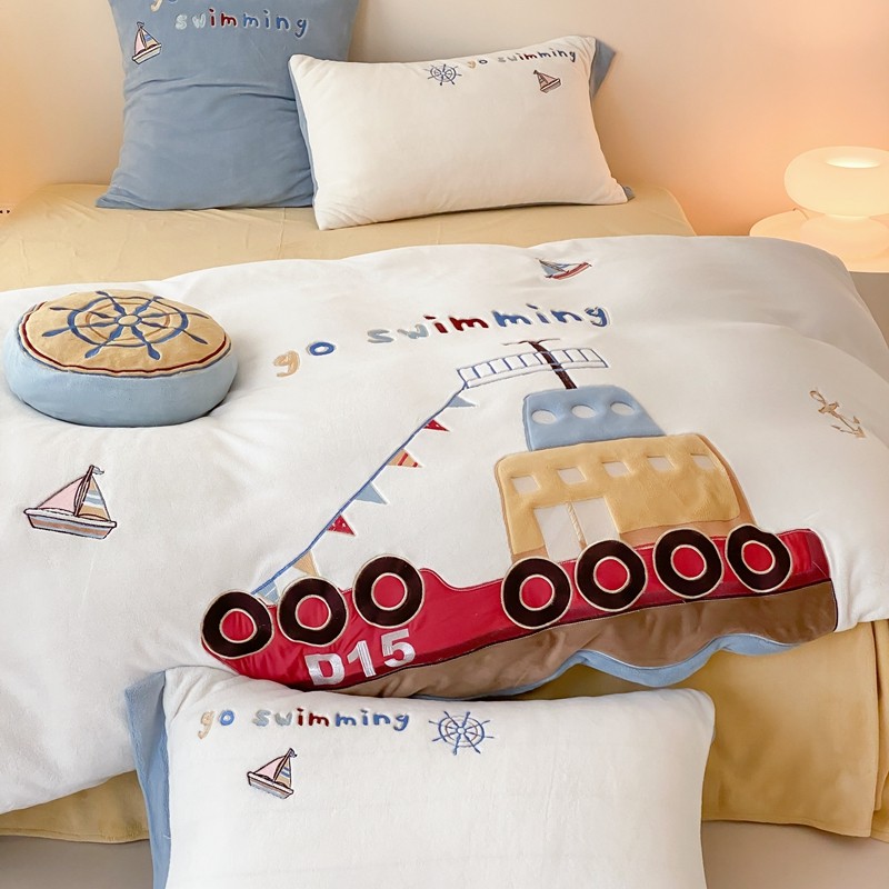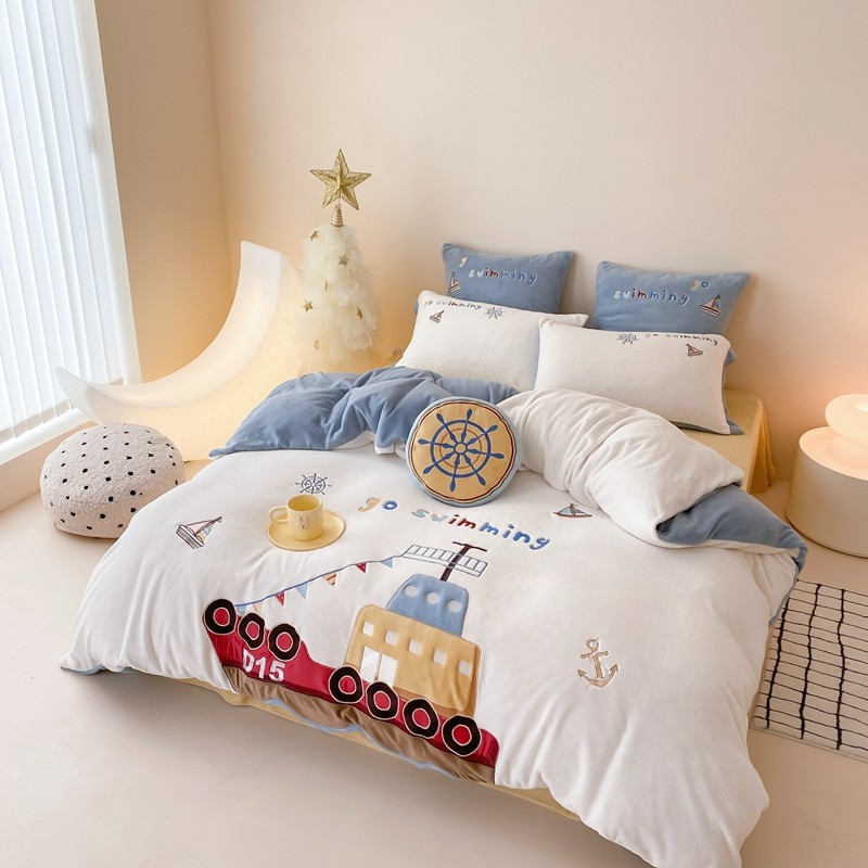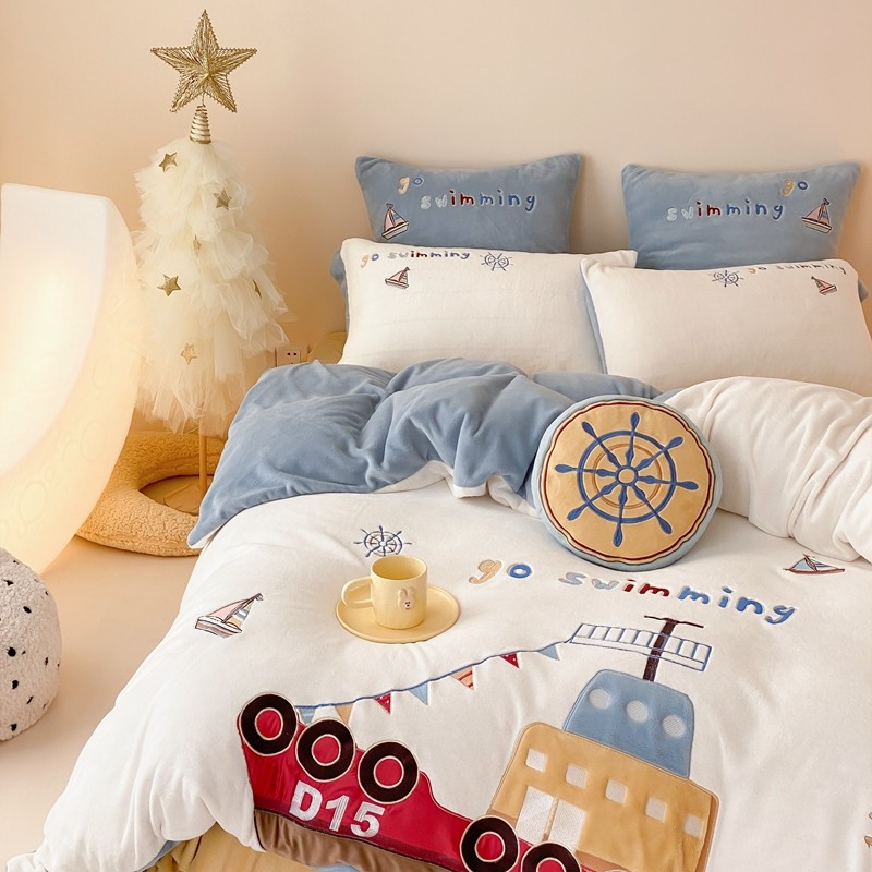 总 星野 2023秋冬新款牛奶绒刺绣贴布绣四件套-梦想启航