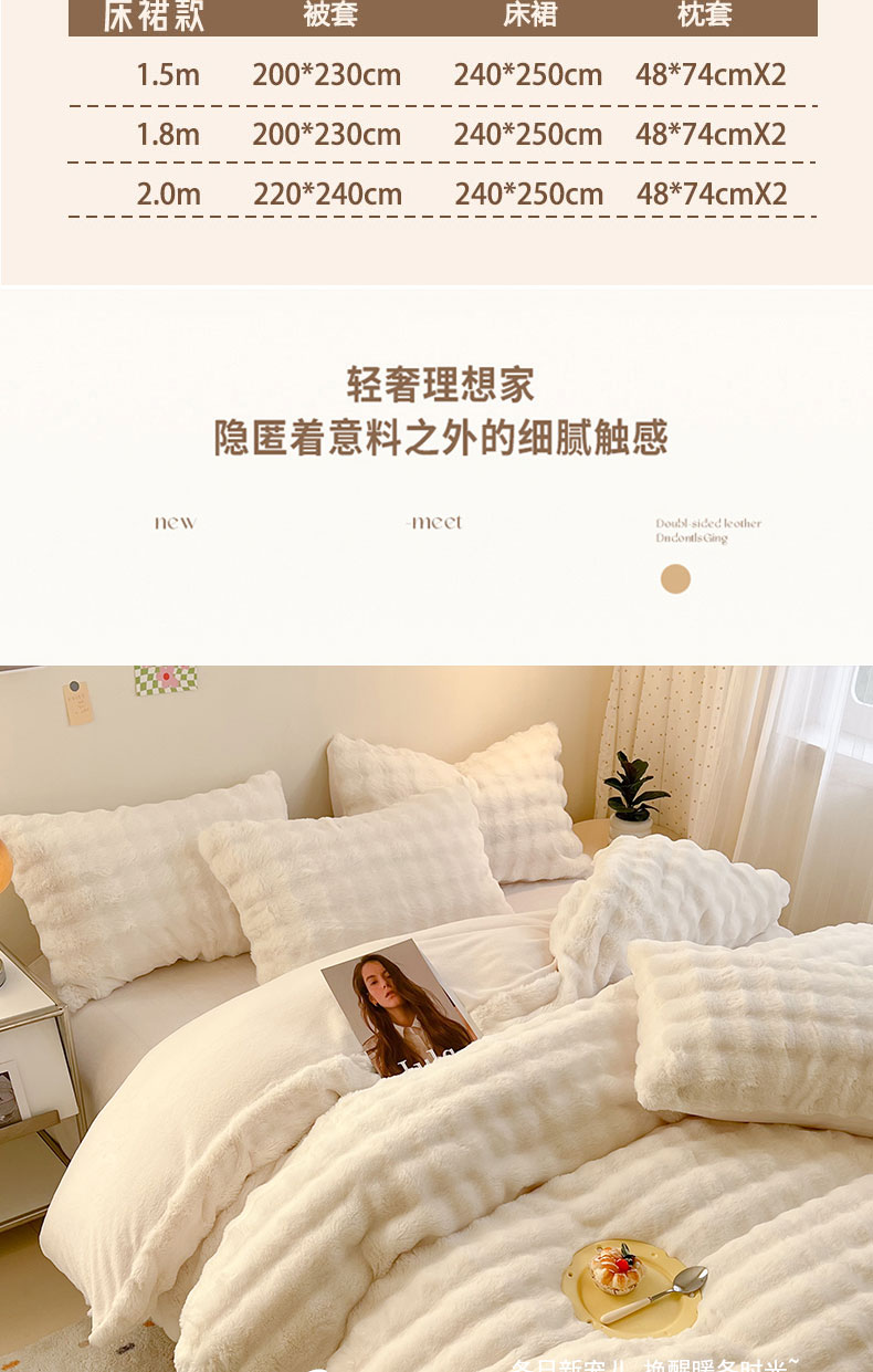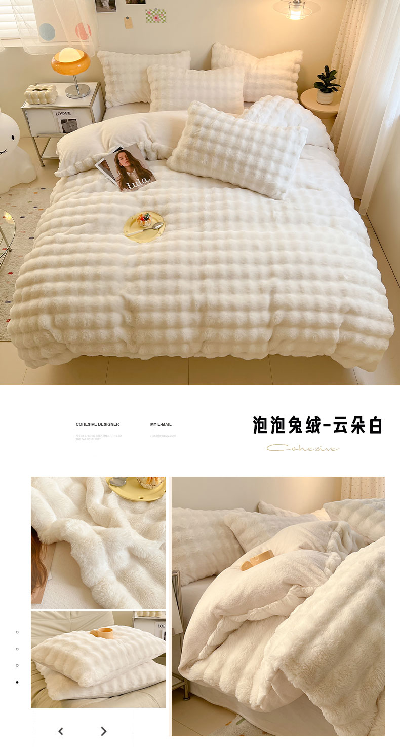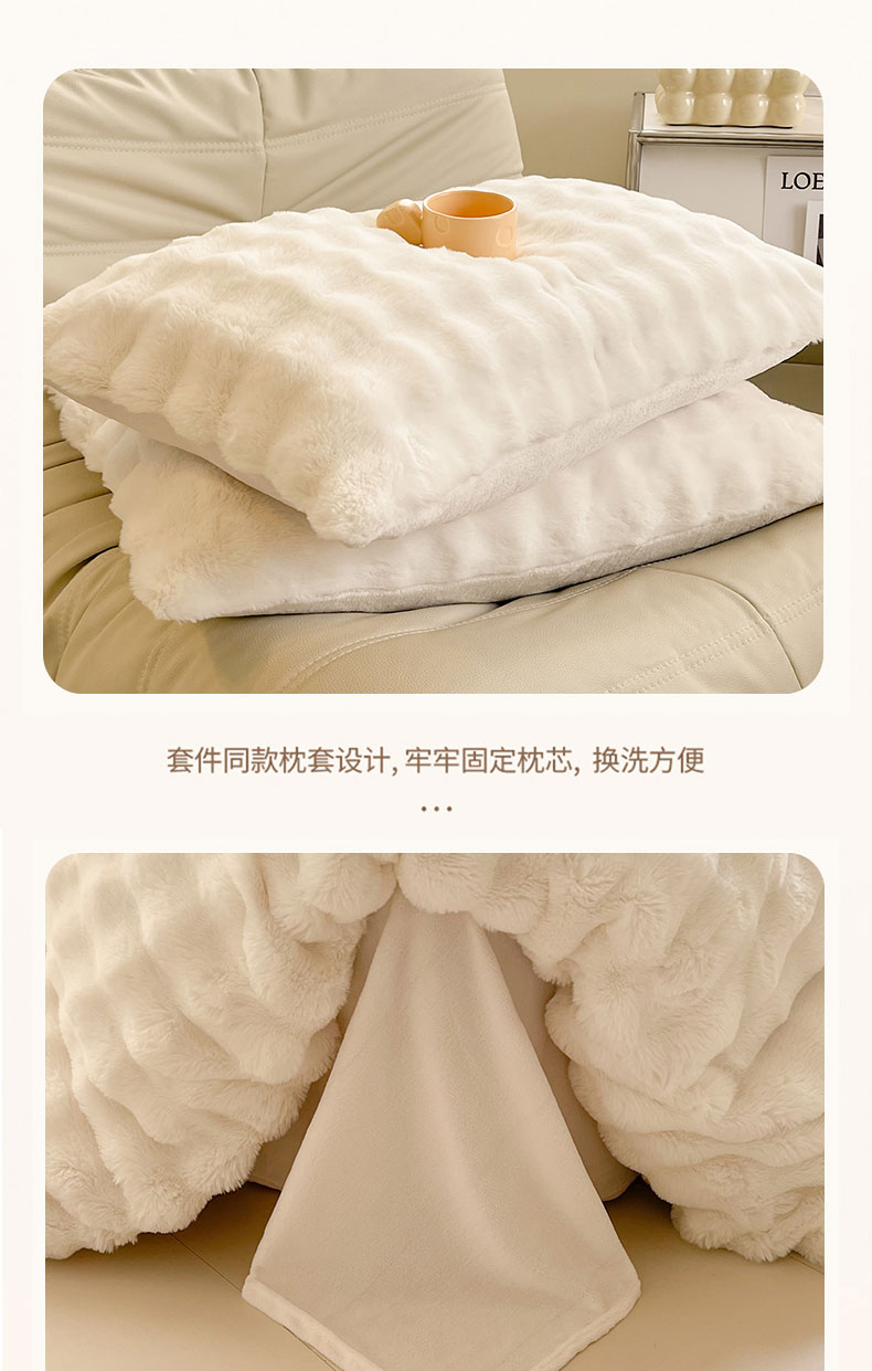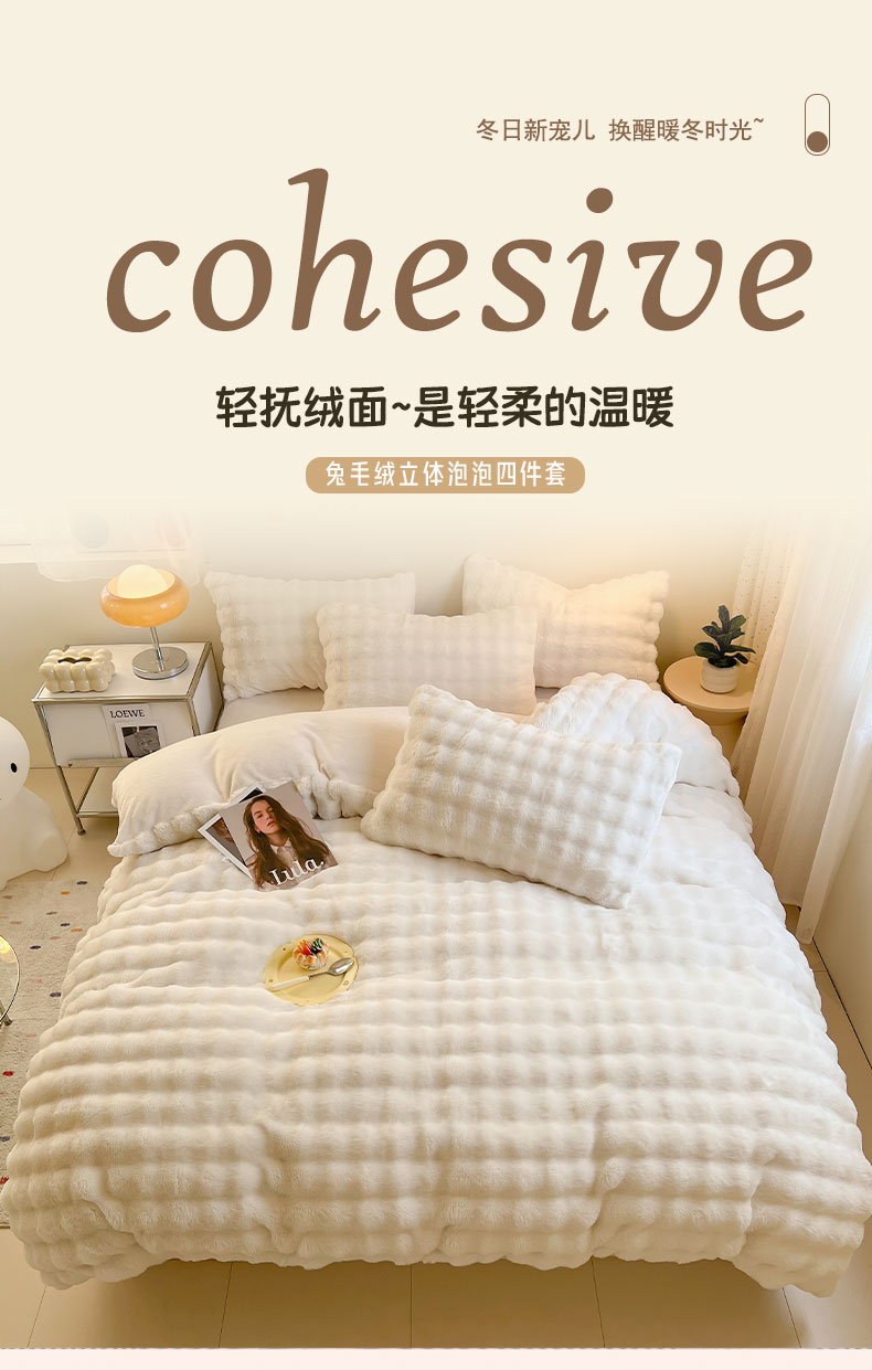 当前位置: 91家纺网 > 商品网购 > 床品套件 > 四件套 > 兔毛绒四件套 > 逸尚阁 2024新款兔毛立体泡泡四件套 云朵白