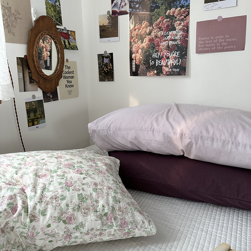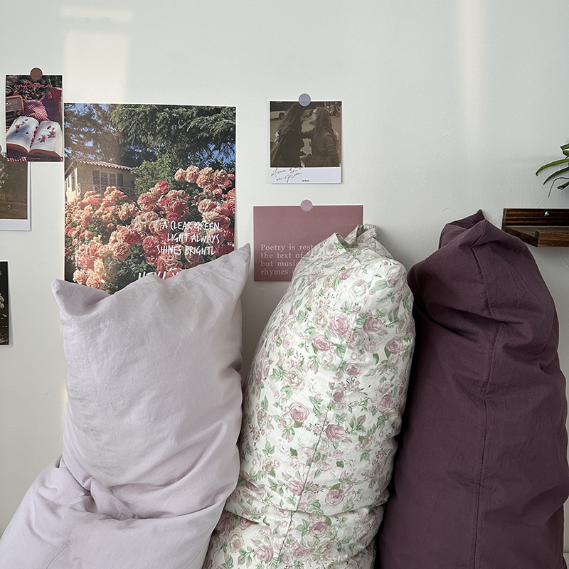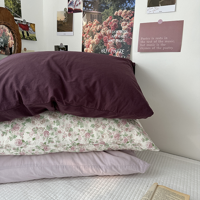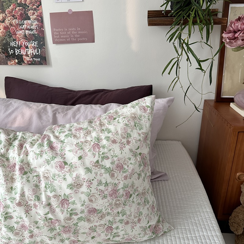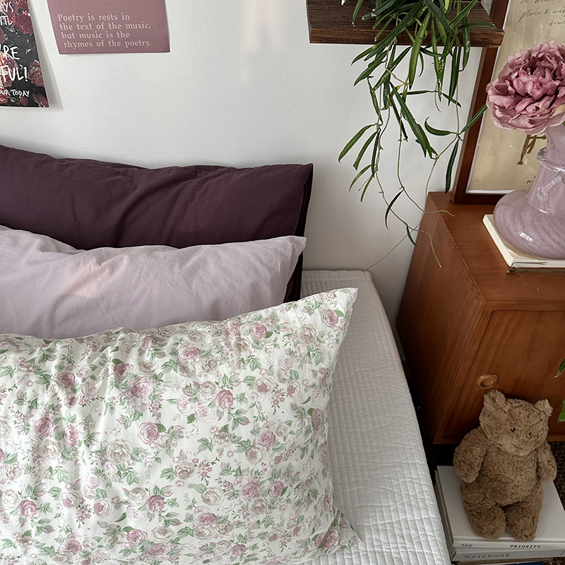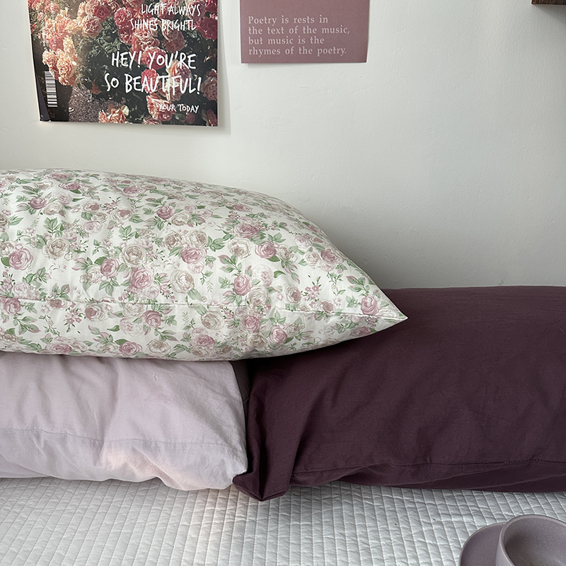 商品名称:恋恋三季 2024新款40支13372轻法式小清新田园全棉印花单枕套-浪漫满屋(风格一) 香芋紫